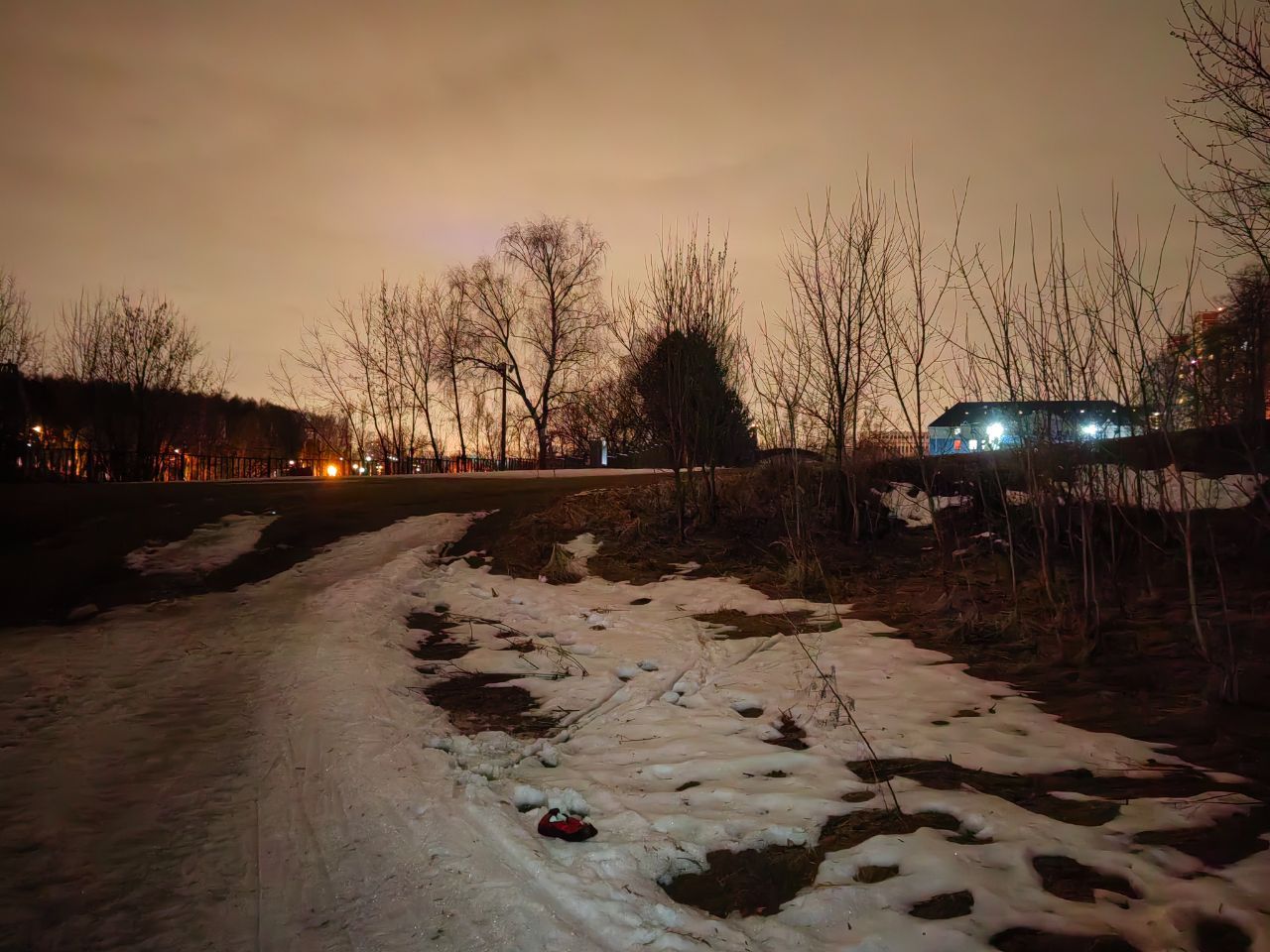 Вечер 2 апреля. Пока кататься можно, полностью растаял только нижний стадион. Проталины внизу спуска у рыбаков, внизу (фото 1) и вверху (фото 2) подъема к верхнему стадиону и внизу большого спуска. Сам подъем к верхнему стадону (фото 3), верхний стадион (фото 4) и петли у долгостроя (фото 5) хороши и еще продержатся какое-то время, все остальное вот-вот кончится.