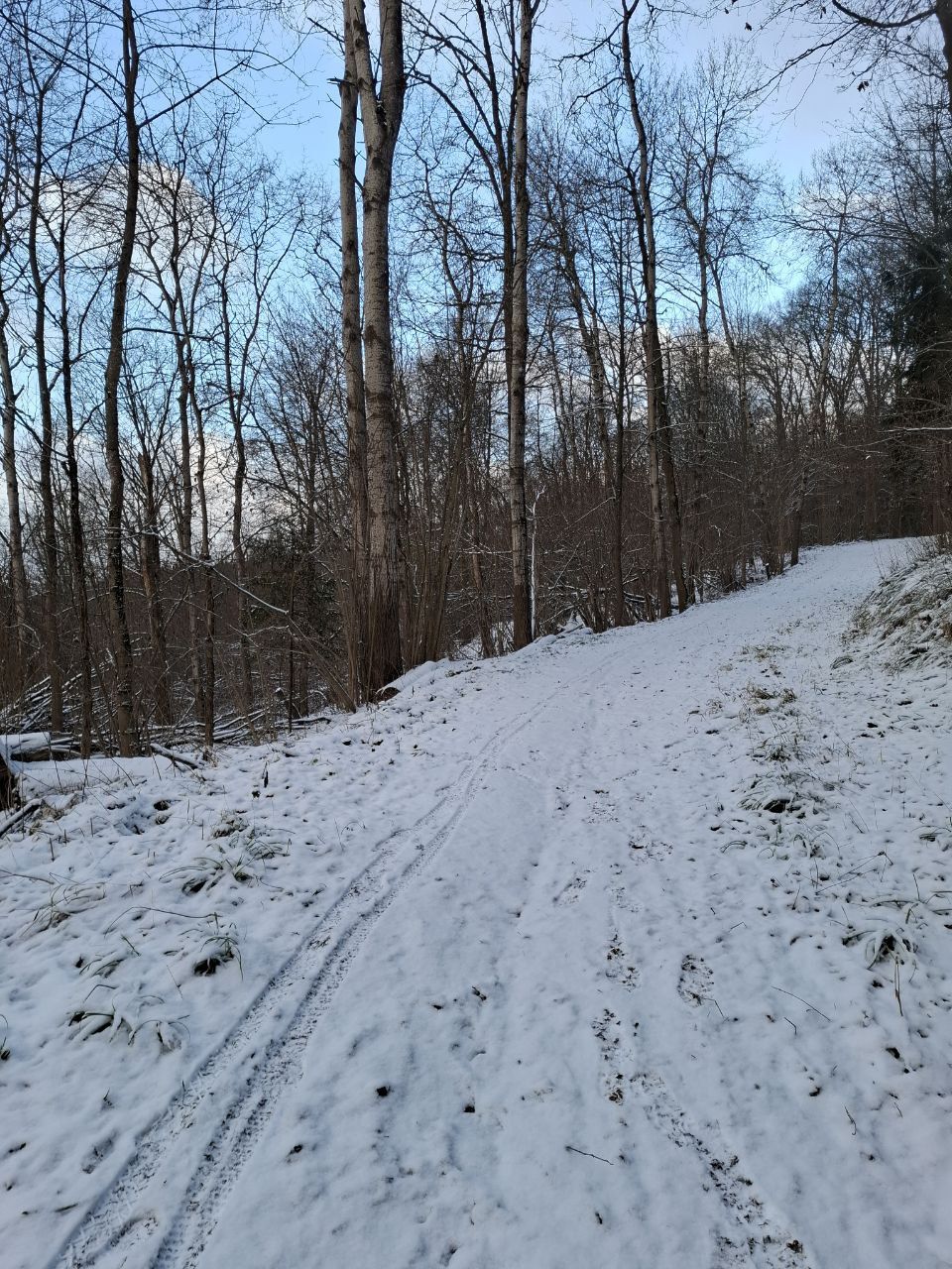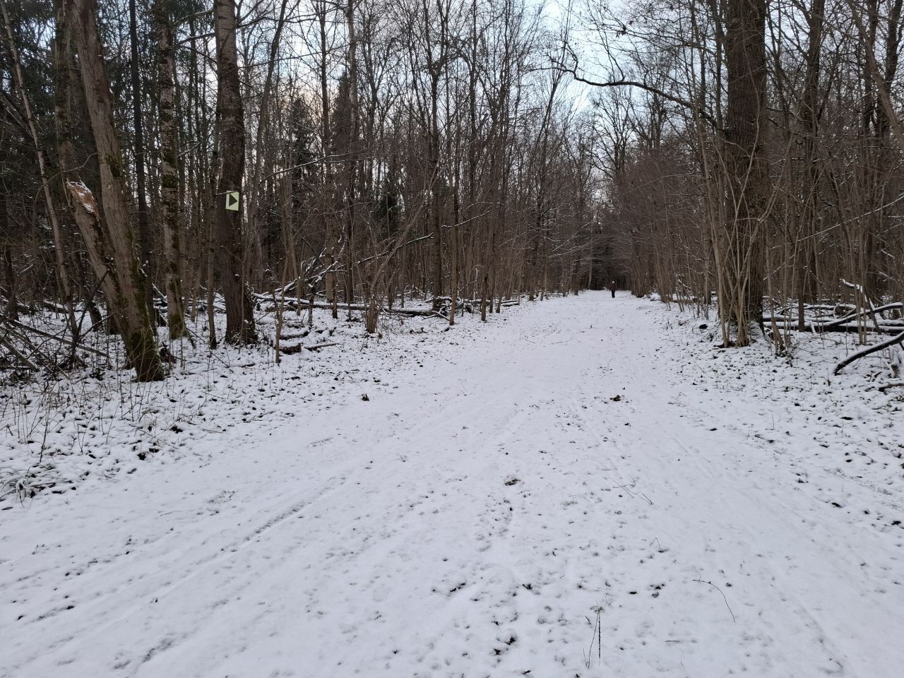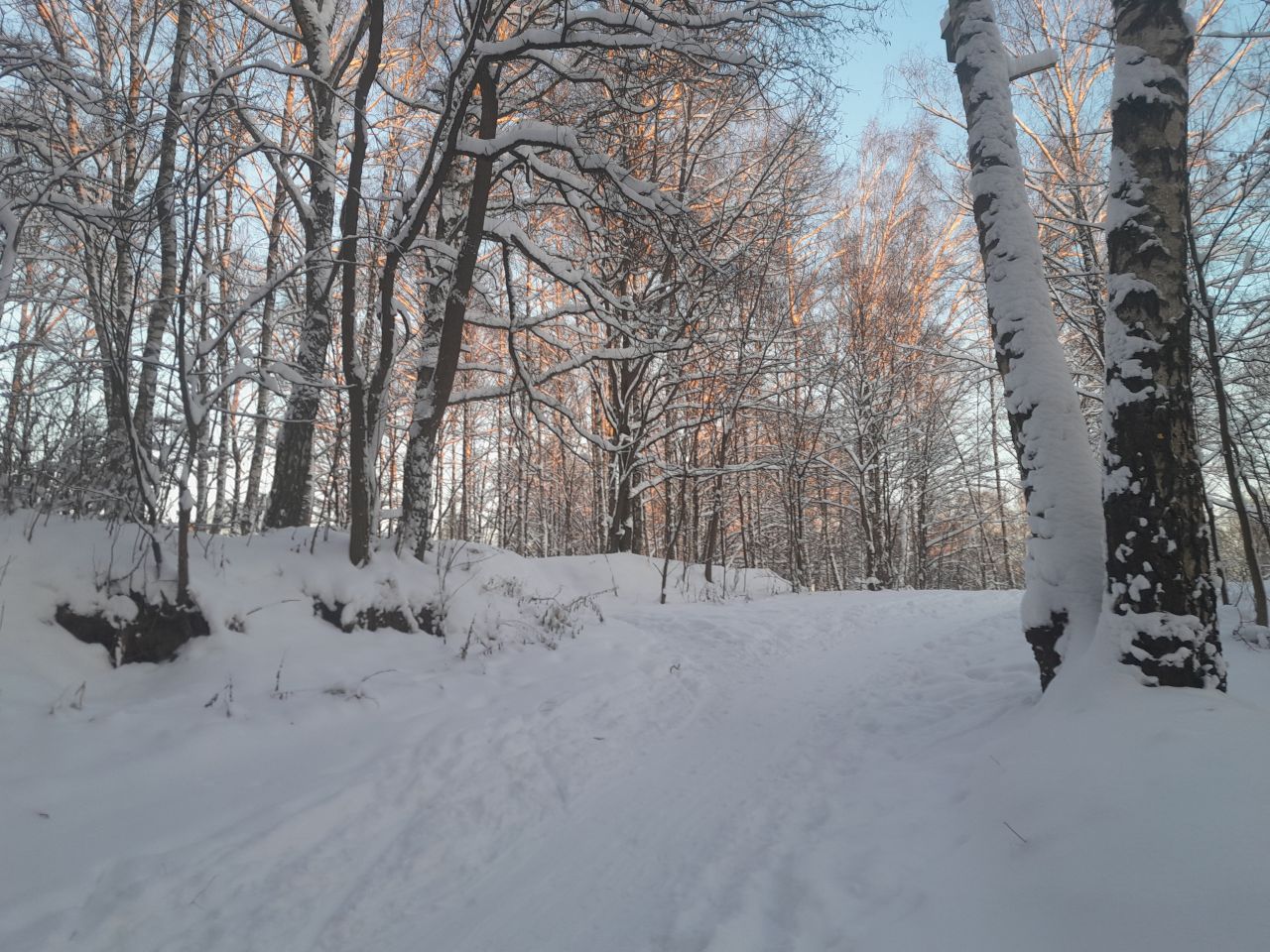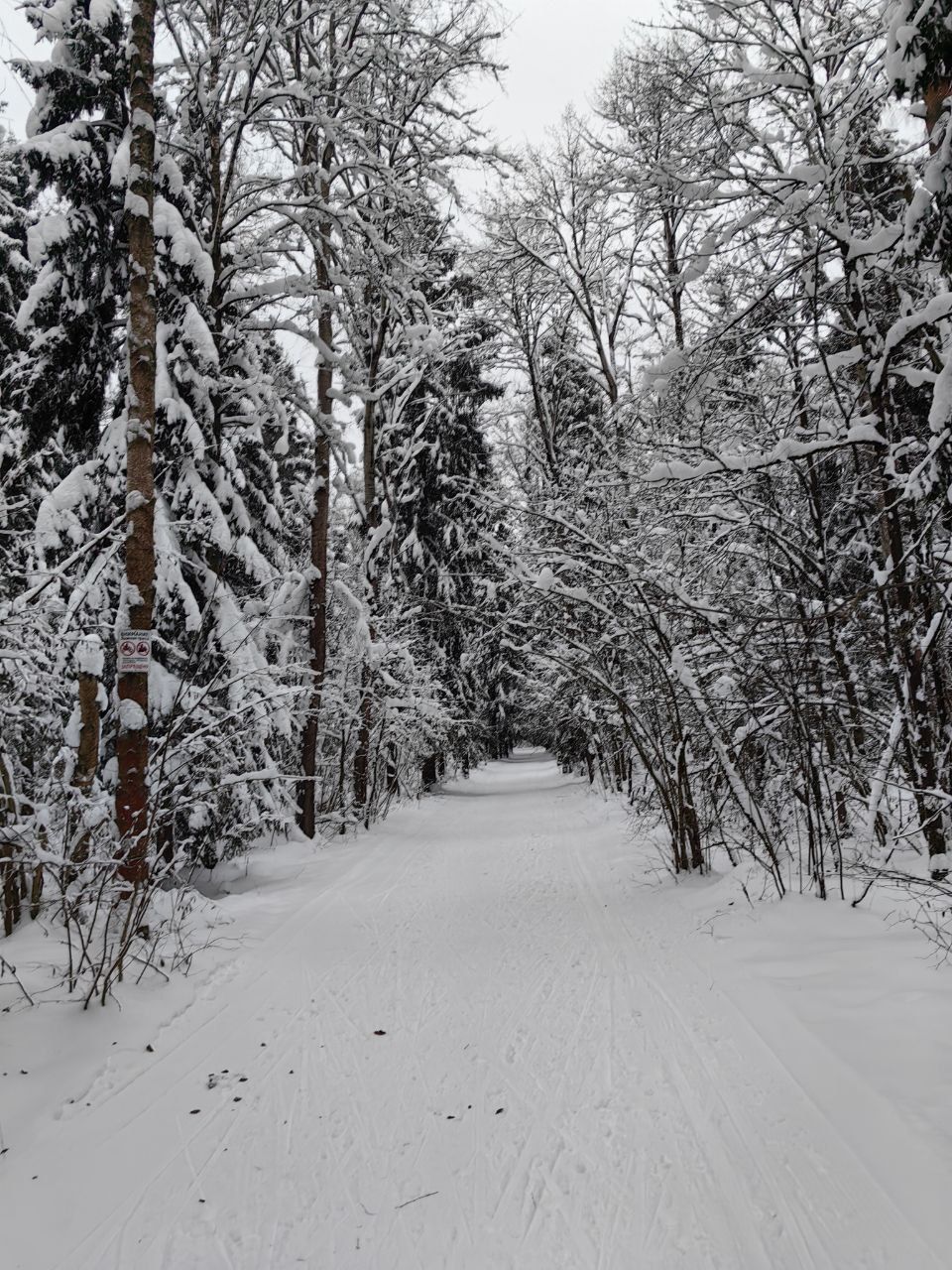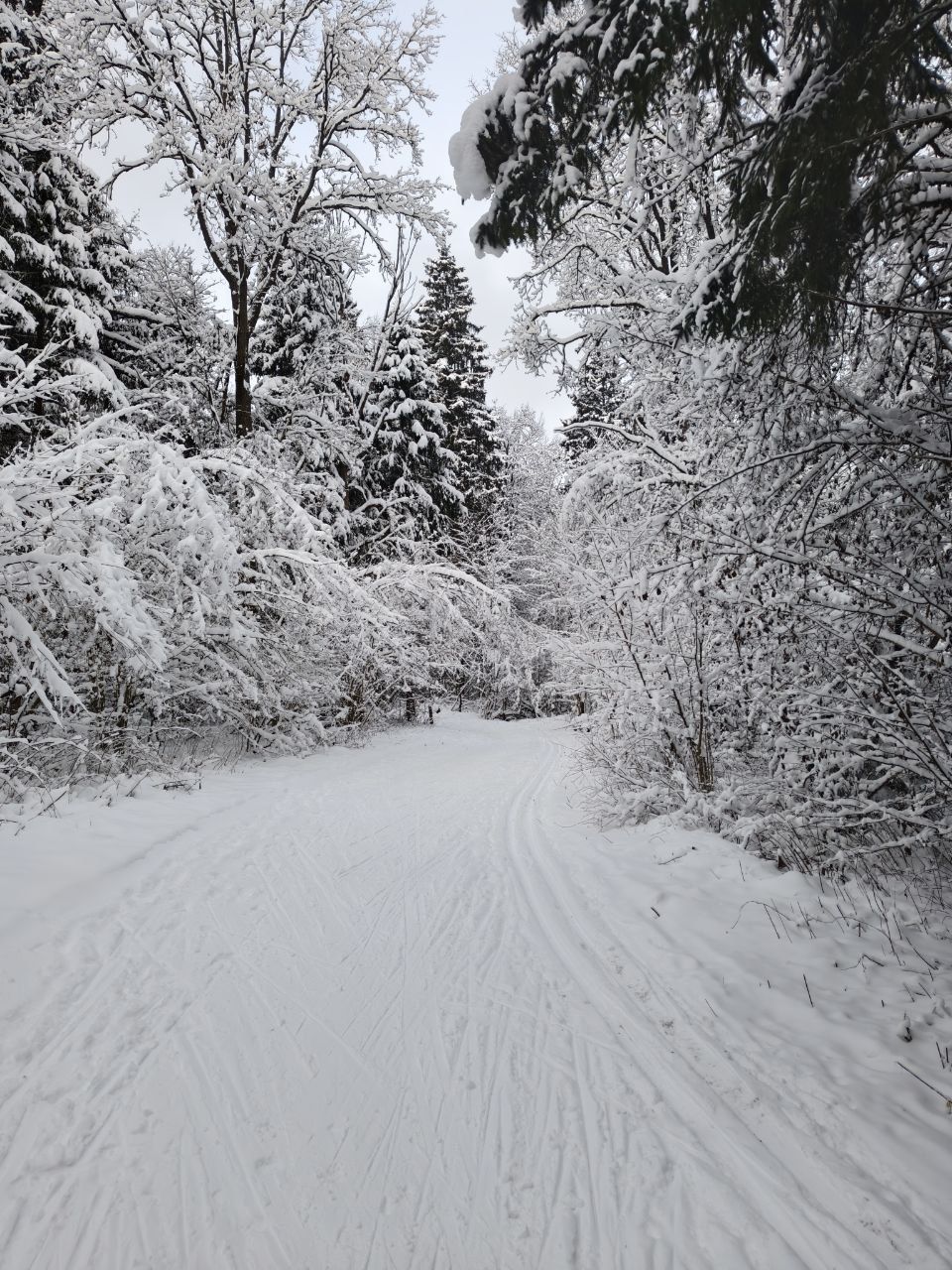 Пришел проехал 100м и ушел на стадион. В лесу к сожалению пока нормально не покатать. Я ещё хорошие лыжи взял, но и на посредственных тоже не стал бы, зная маршрут. Сам предпочитаю кататься в лесу, а не на стадионе, но снега пока маловато, проглядывают кочки, ветки, лужи проваливаются. Видно что прокатали снегоходом, немного уплотнили. Но нужно подождать чтобы ещё подсыпало снежку и будет норм.