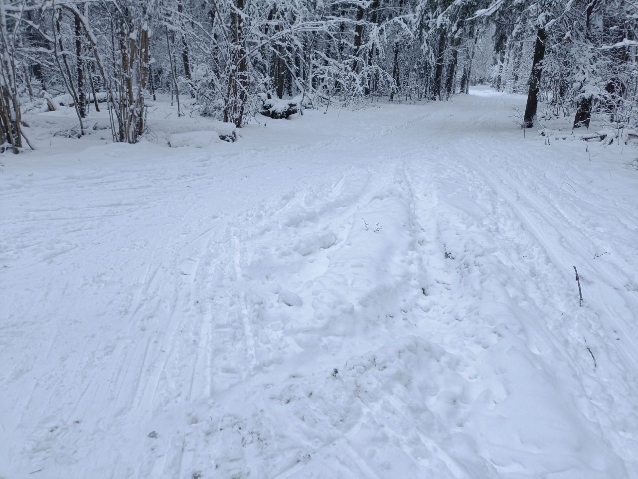 В лесу самотоп. Требуются сильные снегопады, не такие как сейчас, чтобы закрыть колею от колесной техники. Только на асфальтовых можно в лес. Трасса поддерживается ограниченными силами энтузиастов. Если деньгами не помогаешь или не участвуешь в субботниках, то странно жаловаться и ждать новогоднего чуда в лесу.