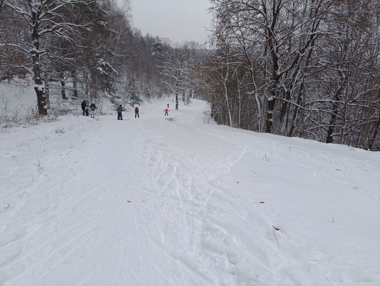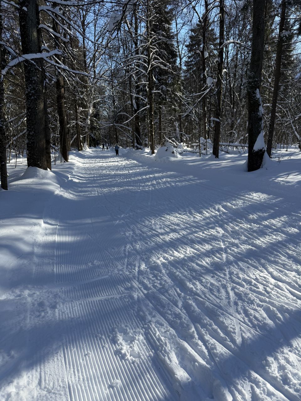 Сегодня было чудесно. Подготовлены все петли, все срезки, есть лыжня для классики. Народу очень мало.