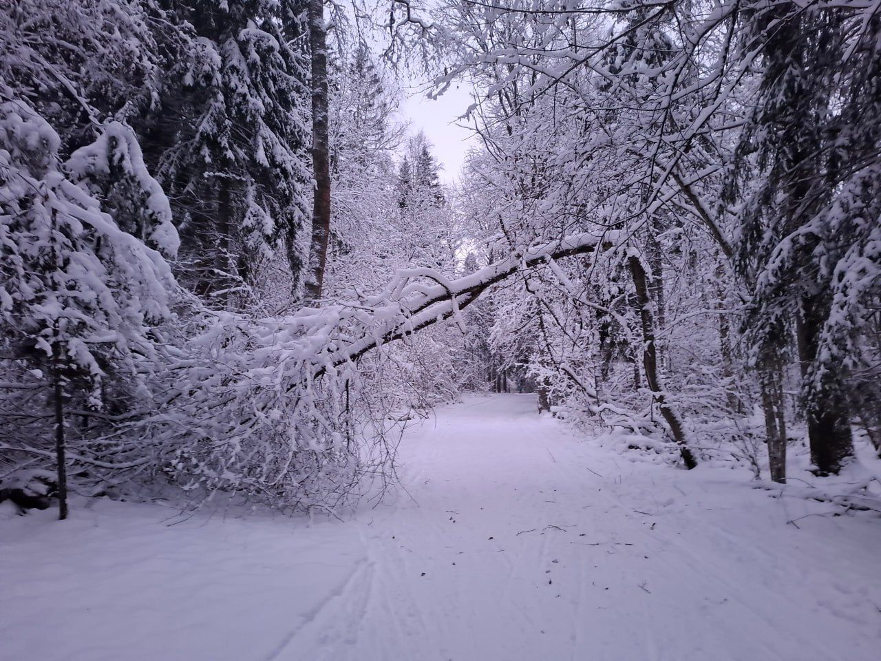 Тяжело , конечно, снег липкий. Но нет грязи и лес прекрасен.