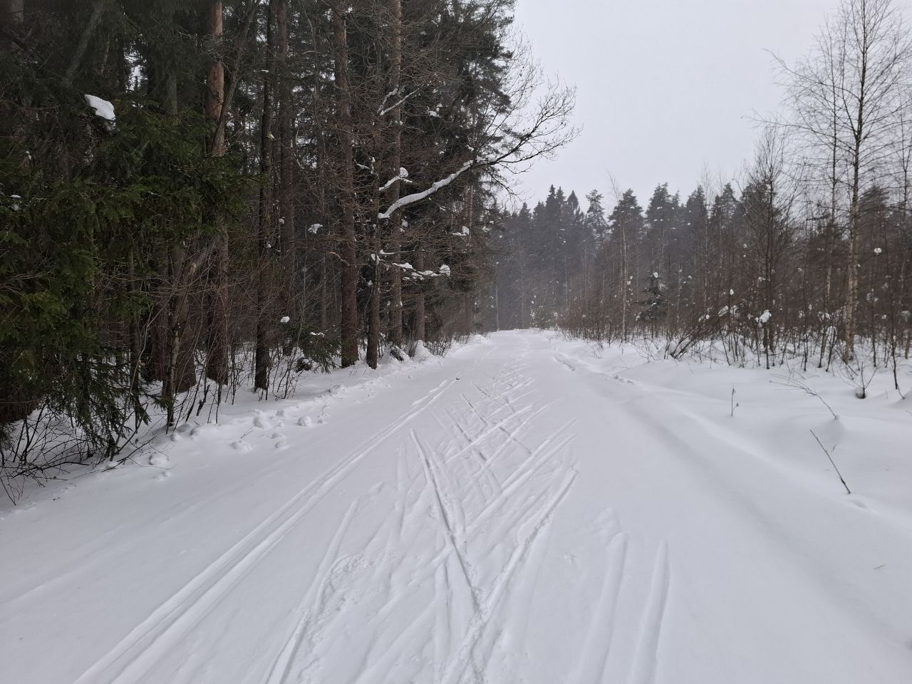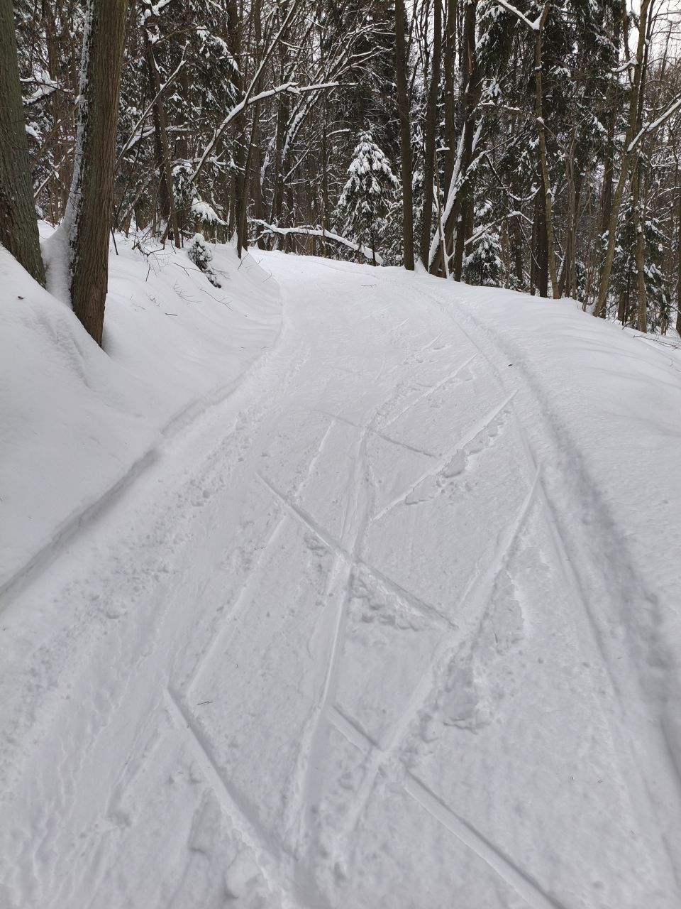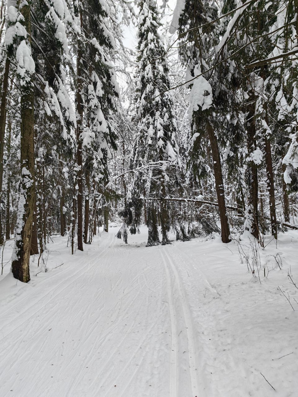 Пока есть окно между снегопадом в лесу вот так. Коньком тяжеловато.