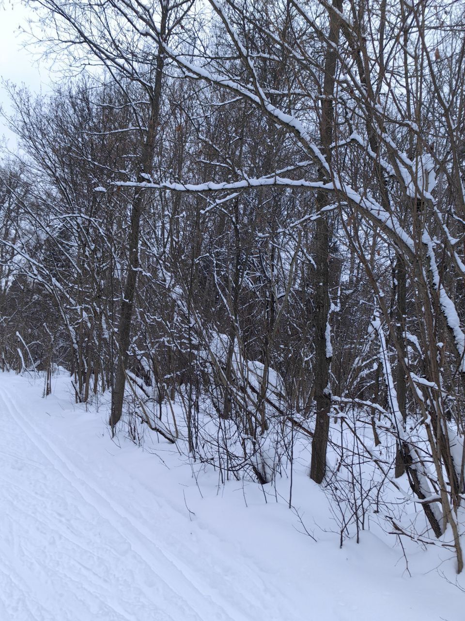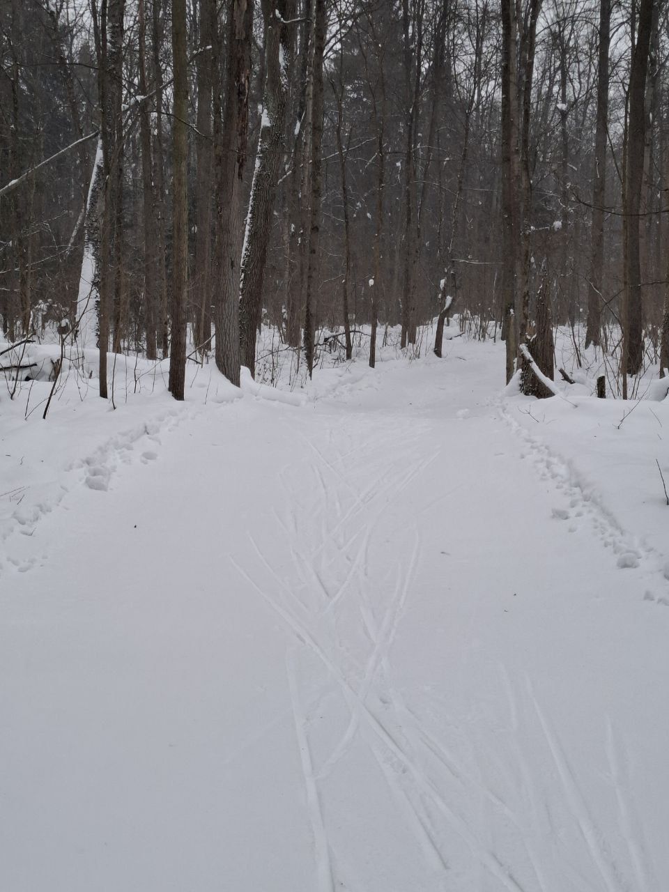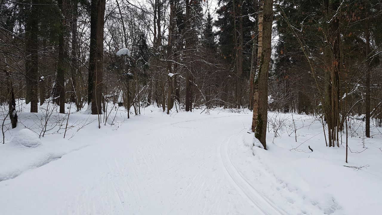 Пока есть окно между снегопадом в лесу вот так. Коньком тяжеловато.