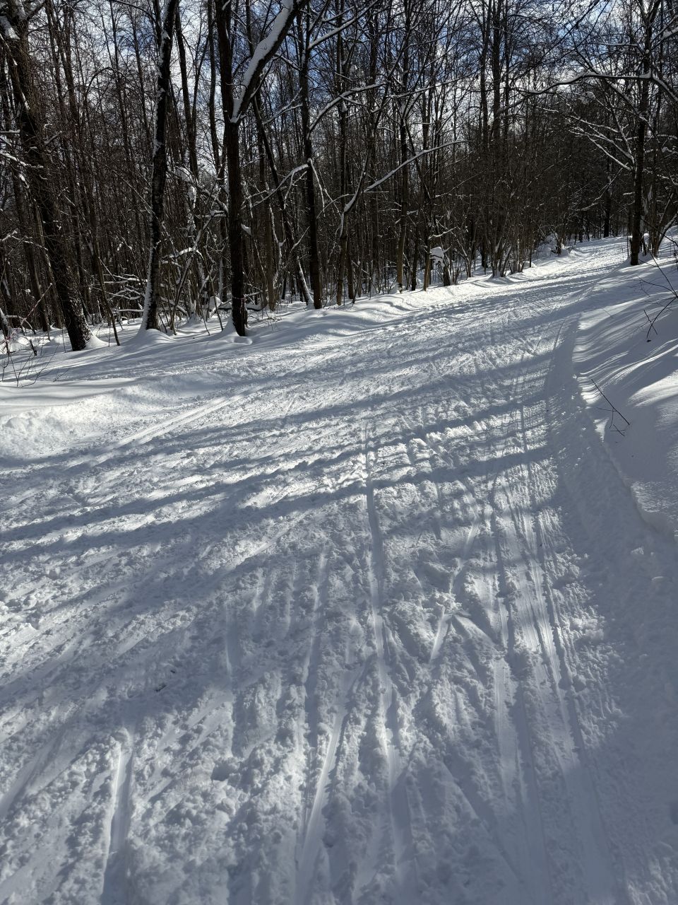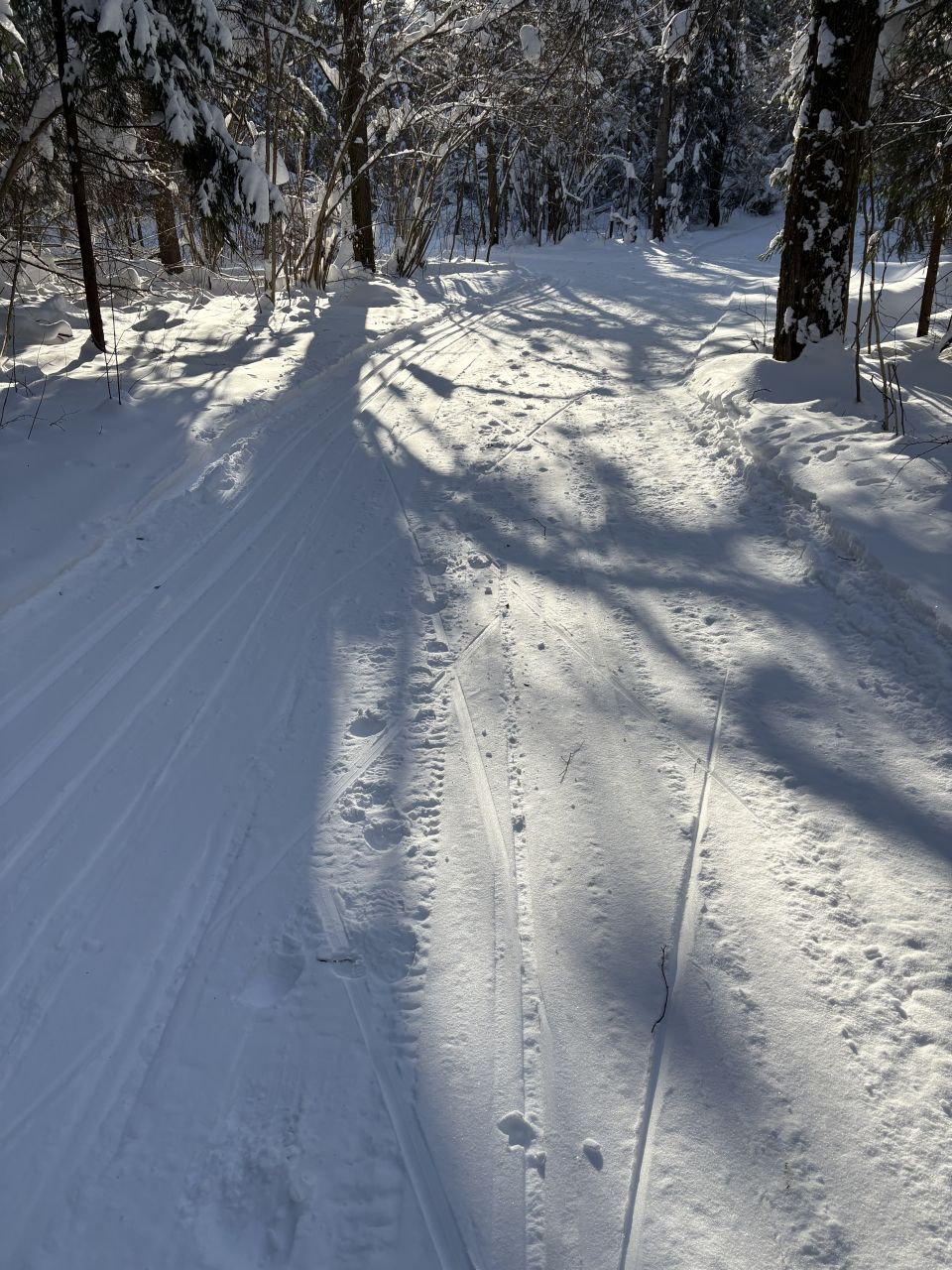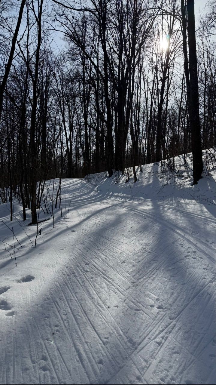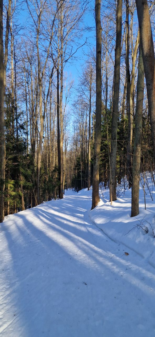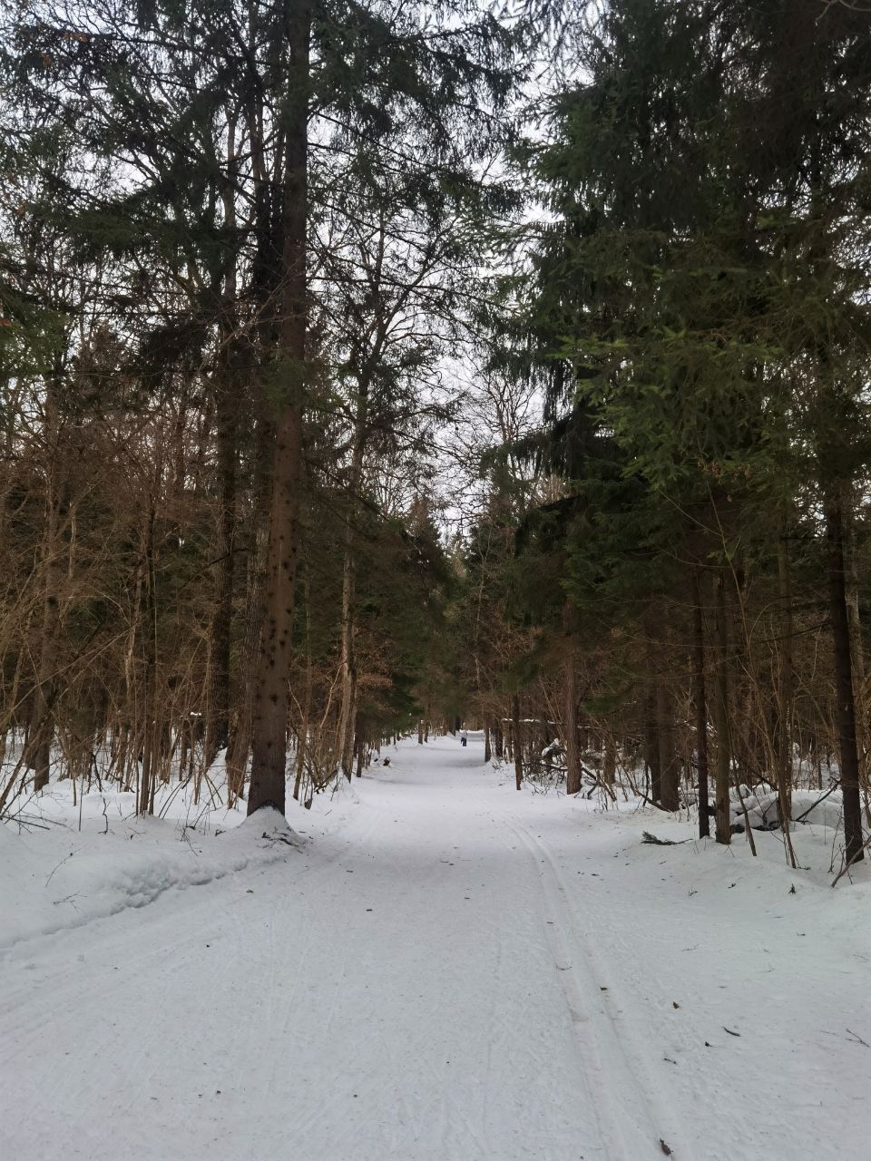 Думала, что будет значительно хуже. Да, местами есть горб, местами грязно и копытинг есть знатный (не стала это все фоткать), но не так пока еще критично. Есть прямо ровные хорошие места, особенно финишная прямая к дачам, как и написали. Кое-где снег подморожен с наледью, особо не расслабиться, но в основном подтаявший снег комфортный, еще днем чуть присыпало местами. Но основное - проваливаются палки, даже в центре, хотя, казалось бы, уж там должна быть плотная подушка. Прямо нормально оттолкнуться иногда не выходит, с мыслями-палку бы не сломать. Уходит см на 15-20 по бокам еще мягче. Видимо, снег в этом году утрамбован маловато. В итоге, конечно, катание требует контроля со всех сторон. Но потом попривыкла и решила радоваться и этому, и даже солнышко показывалось. Закажу побольше лапки, может пригодится. В любом случае, эта зима для лыжников хороша, вспомним и забудем предыдущую как страшный сон. П.с у входа от дач наверху так почистили дорогу, что засыпали горой лыжню-дорожку в лес, кто петлял там без лыж-провалился по колено)