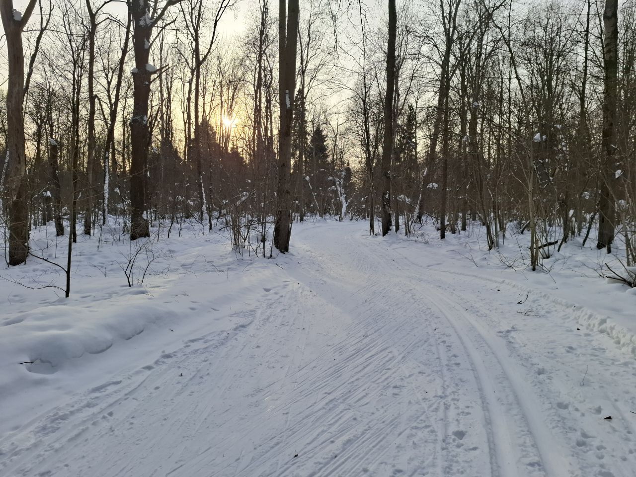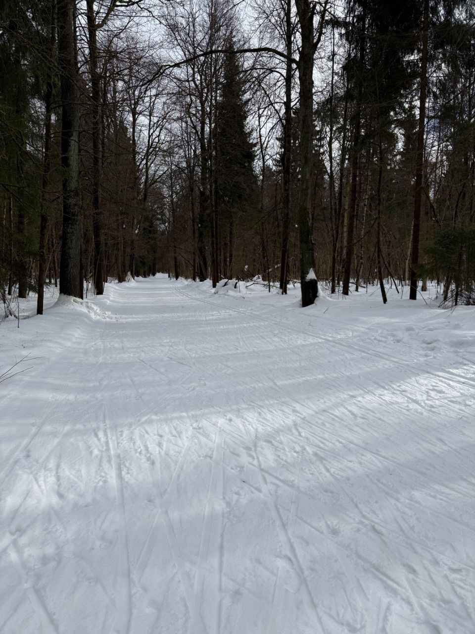 Каталась 23 февраля с 17 часов. Хорошая катучая широкая лыжня, удовольствие. Палки, листья, кусочки коры есть, но объезжаемы. Пока не разбито, снег укатан, плотное покрытие. Если б еще разок прошелся ратрак, было бы отлично