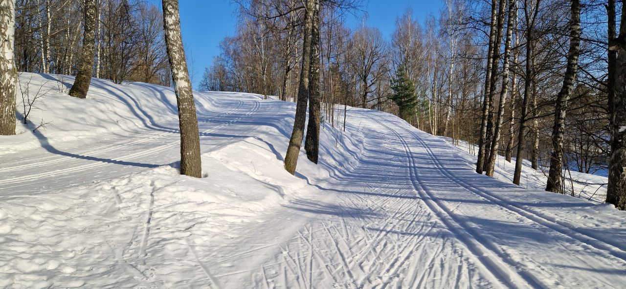 Отличный солнечный мартовский день для неспешных лыжных тренировок в удовольствие! Традиционно похуже дела обстоят на равнинных участках, поэтому сразу был выбран маршрут по всем петлям р.Баньки и р. Синички, где ранее была проведена подготовка к соревнованиям ратраком и нарезана классика (Синичка/Ветеранские) и снегоходом (дальние петли старой 10ки). Везде отлично, ровно, широко, комфортно.
