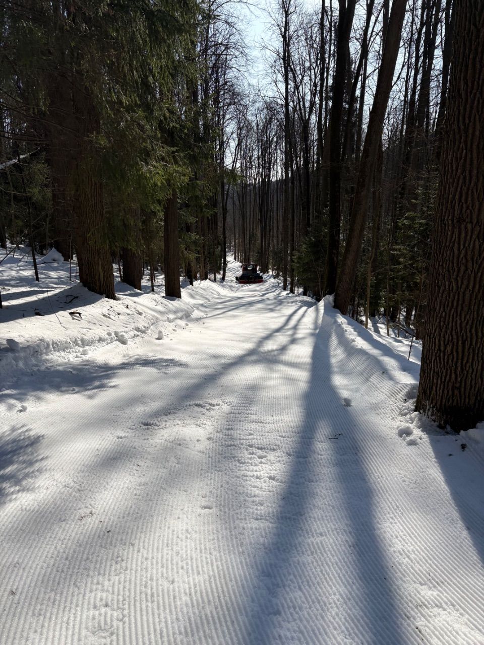 Впервые встретил ратрак в лесу. 🥳 Причём максимально далеко от стадиона. После него мусора минимум. Трасса мягковата, но все равно отличная и широкая.