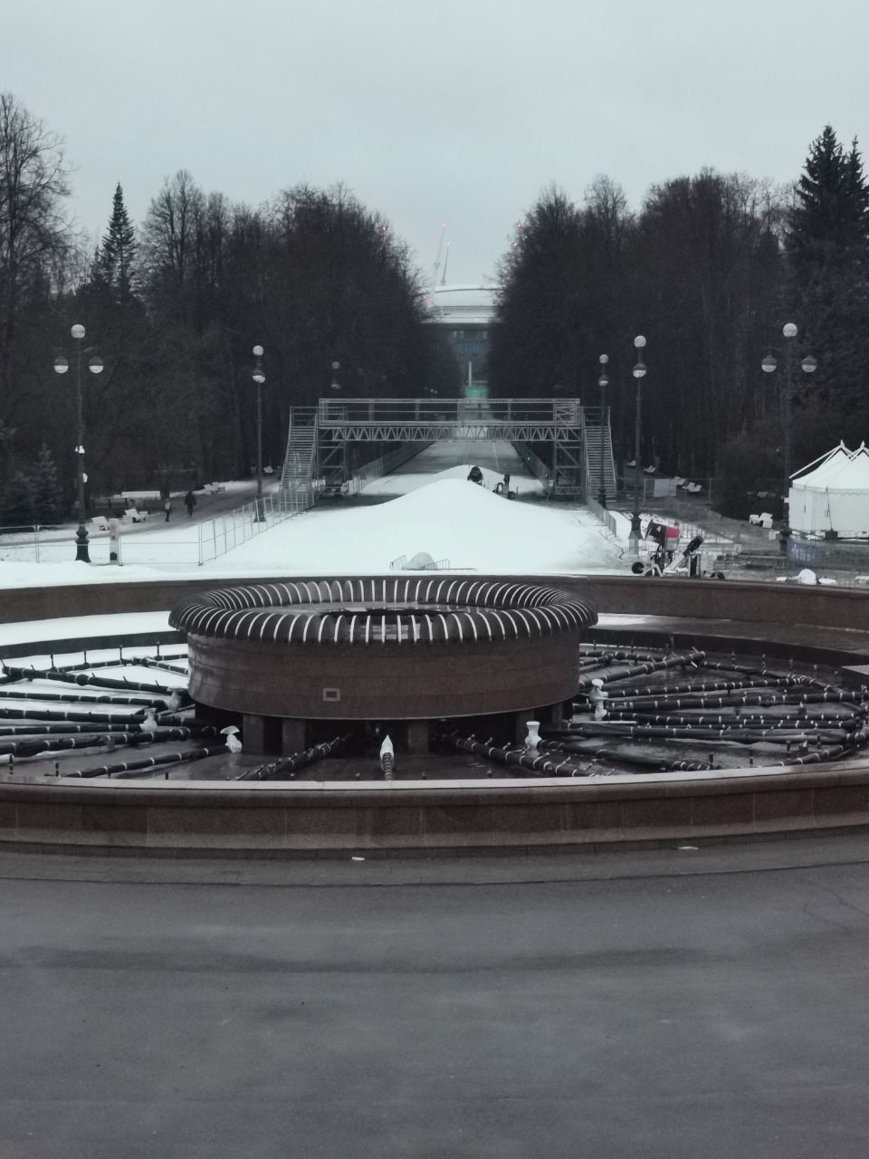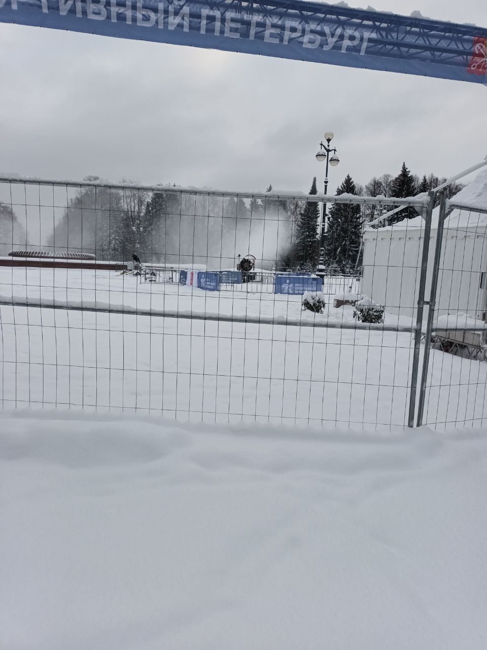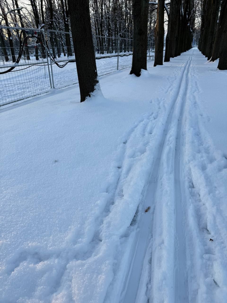 Приморский парк Победы, Санкт-Петербург. Длина трассы 1200 метров, трасса линейная, движение двустороннее. На пересечении с пешеходными дорожками есть лыжные мостики, как в Финляндии. Палатки для переодевания с тепловыми пушками, можно вещи оставить. Трасса явно готовится, но только не тогда, когда это особенно необходимо. Очень жёстко, практически камень. Есть классика. Кататься в принципе можно, но скучно и неинтересно. На мостики не заезжал - неизвестно, насколько комфортно с них сейчас съезжать. Рядом ужасный грохот - в парке ведутся какие-то работы. Проехал всего 1280 метров, зря съездил, потерял рабочее время.