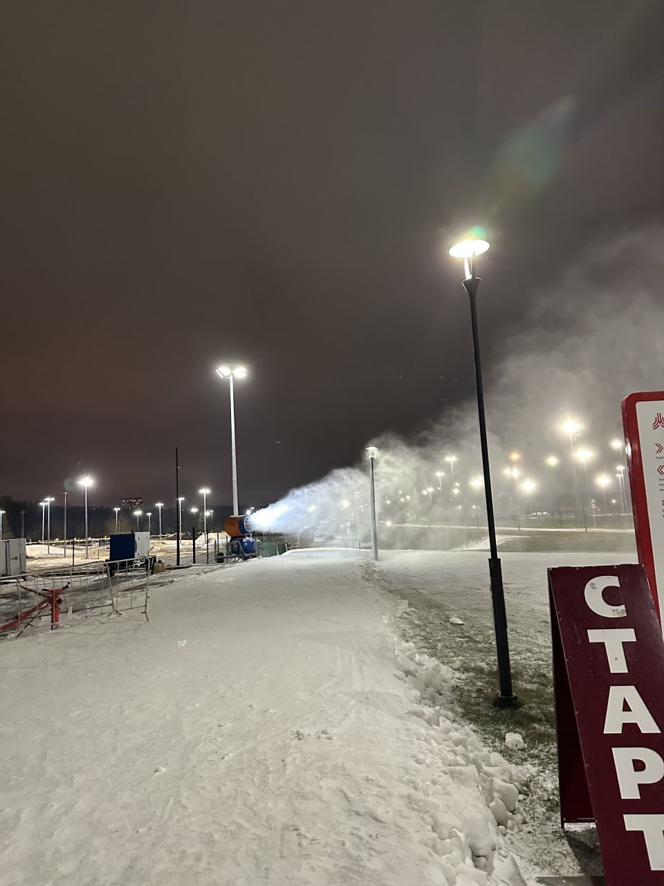 Эх, не прочитал во время предыдущего оратора. Идёт снегогенерация непосредственно на трассу, завтра будут ровнять, видимо. Плену в Марьино