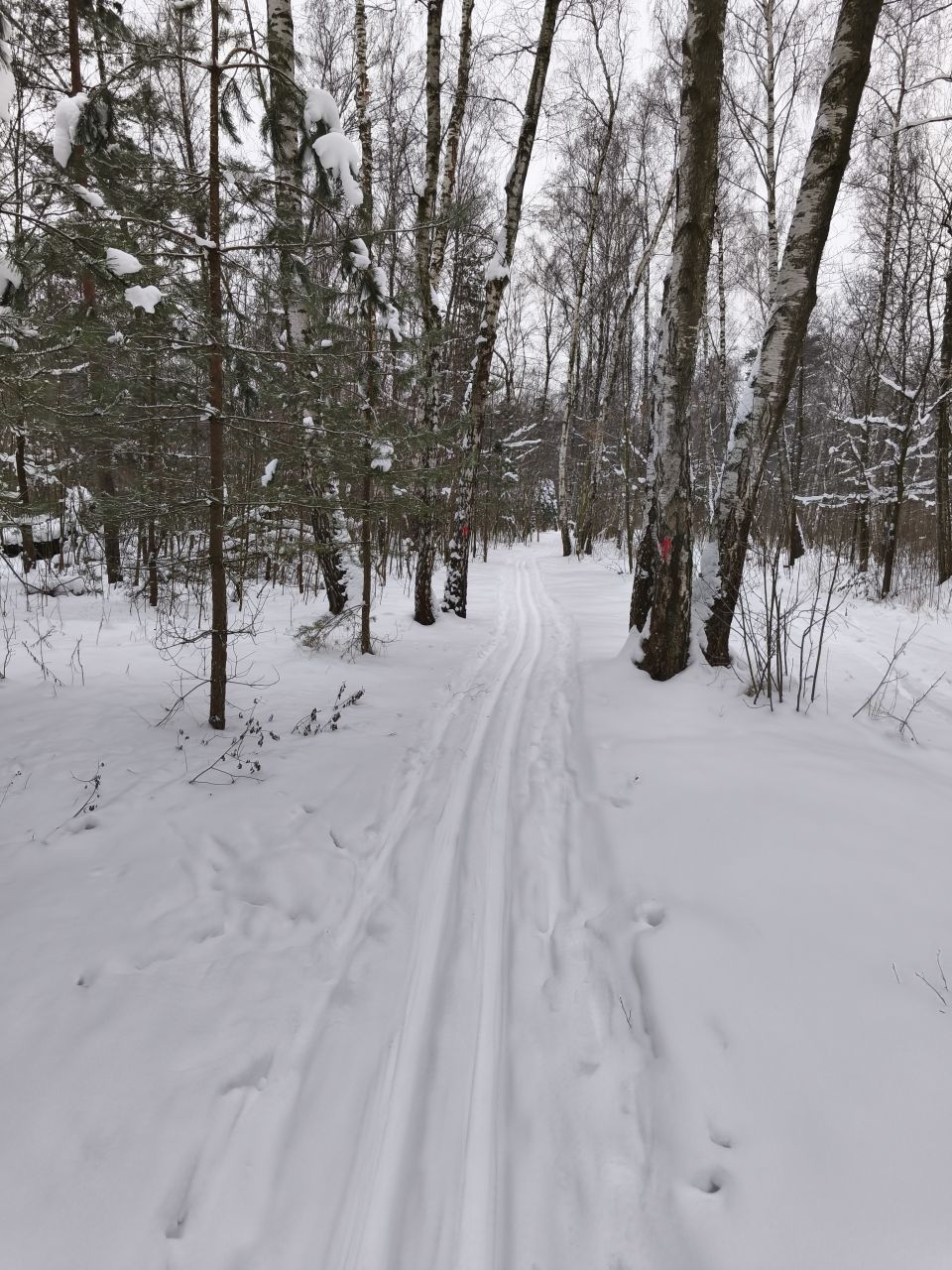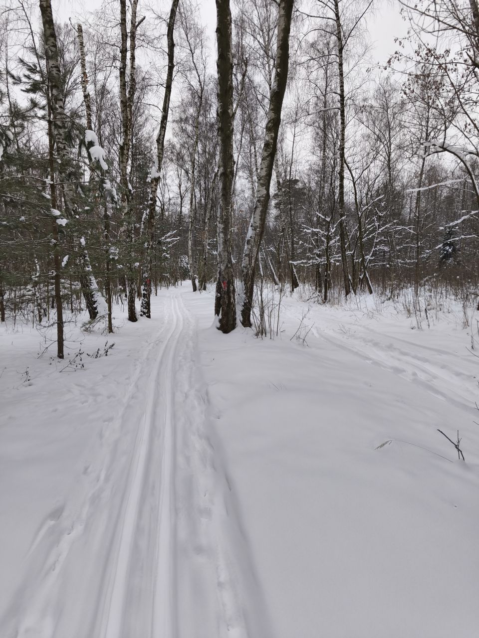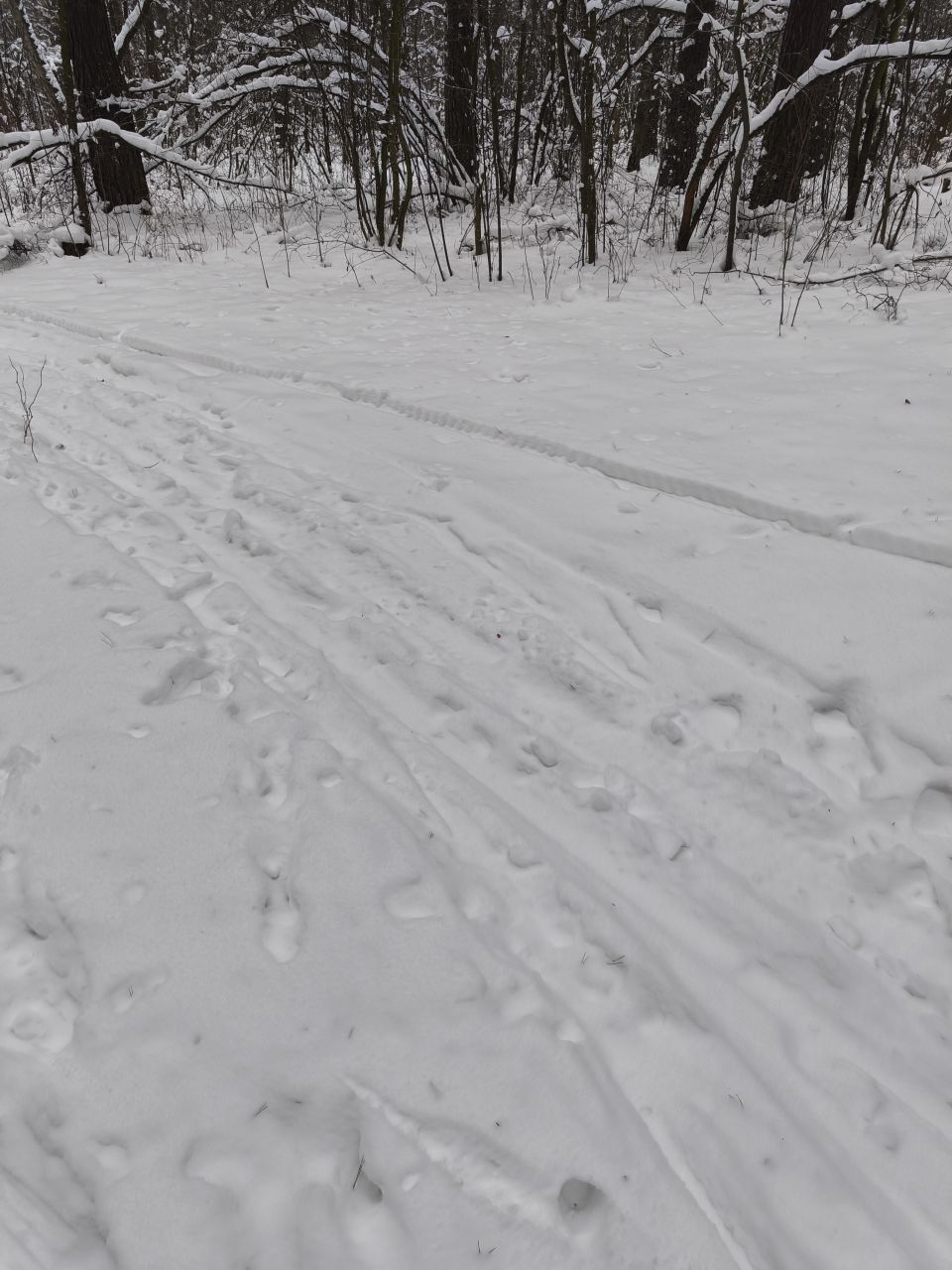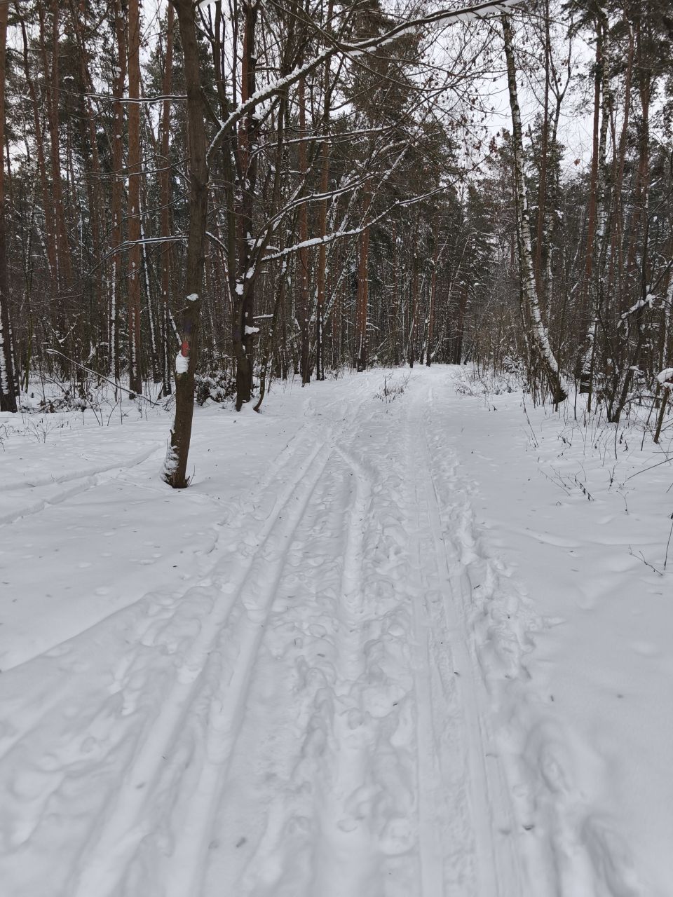 Падал свежий снег, может к завтрашнему дню подзасыпать, но лыжня все равно будет легко угадываться. Местами есть небольшие бугры и ямки.