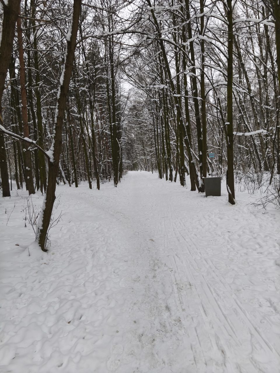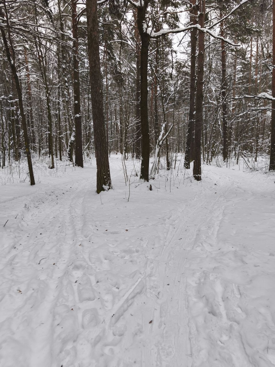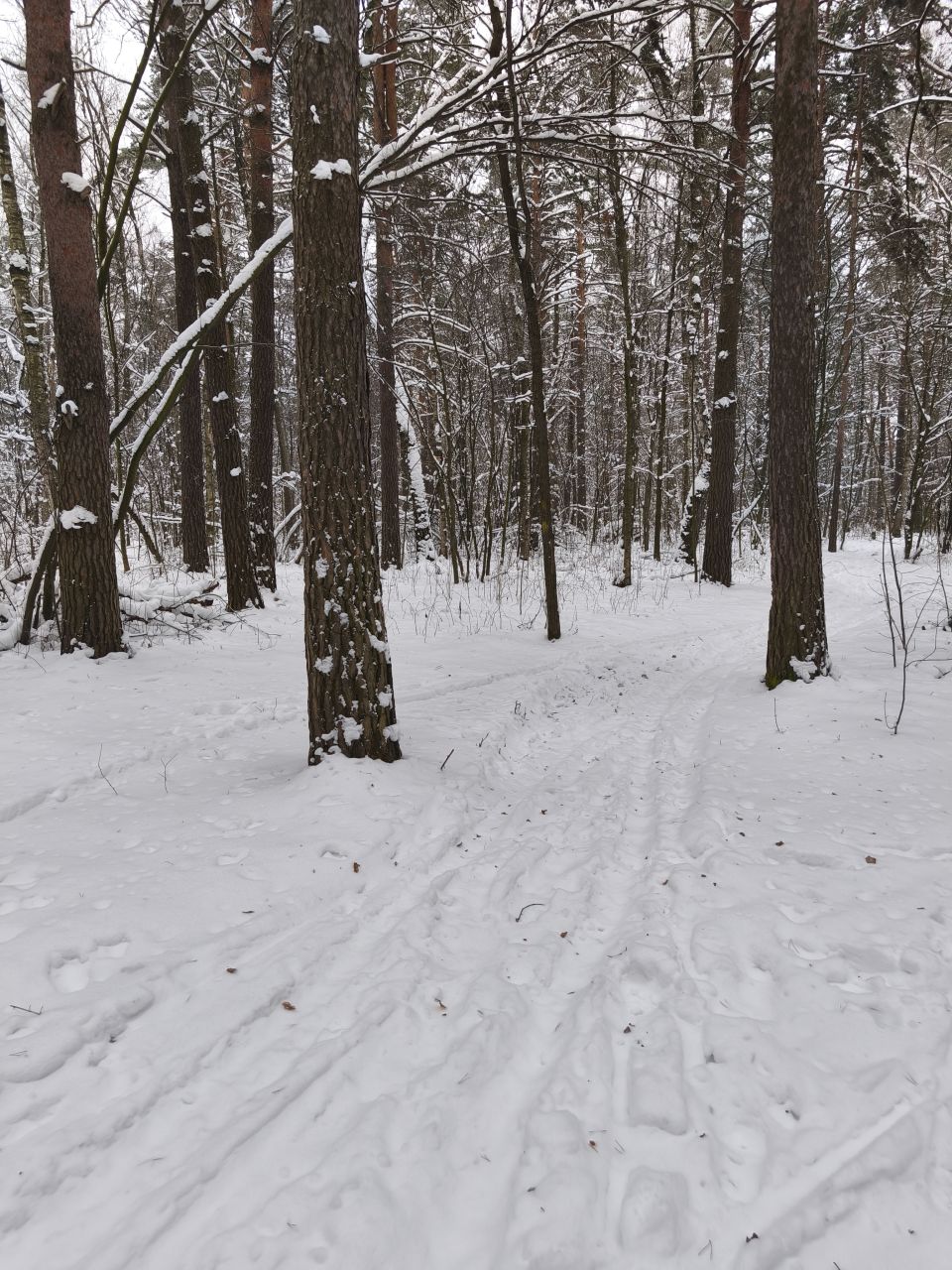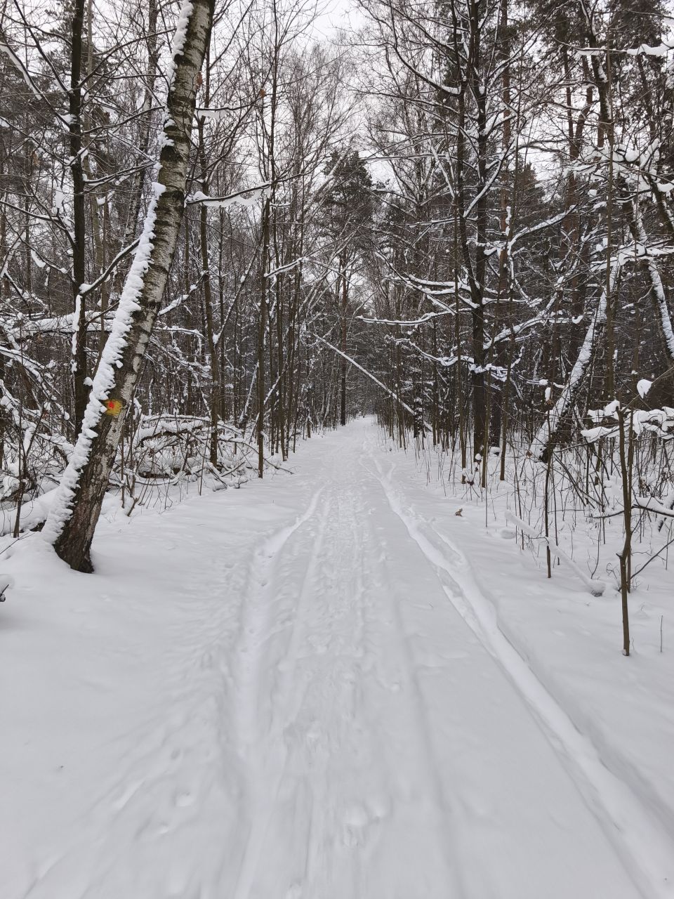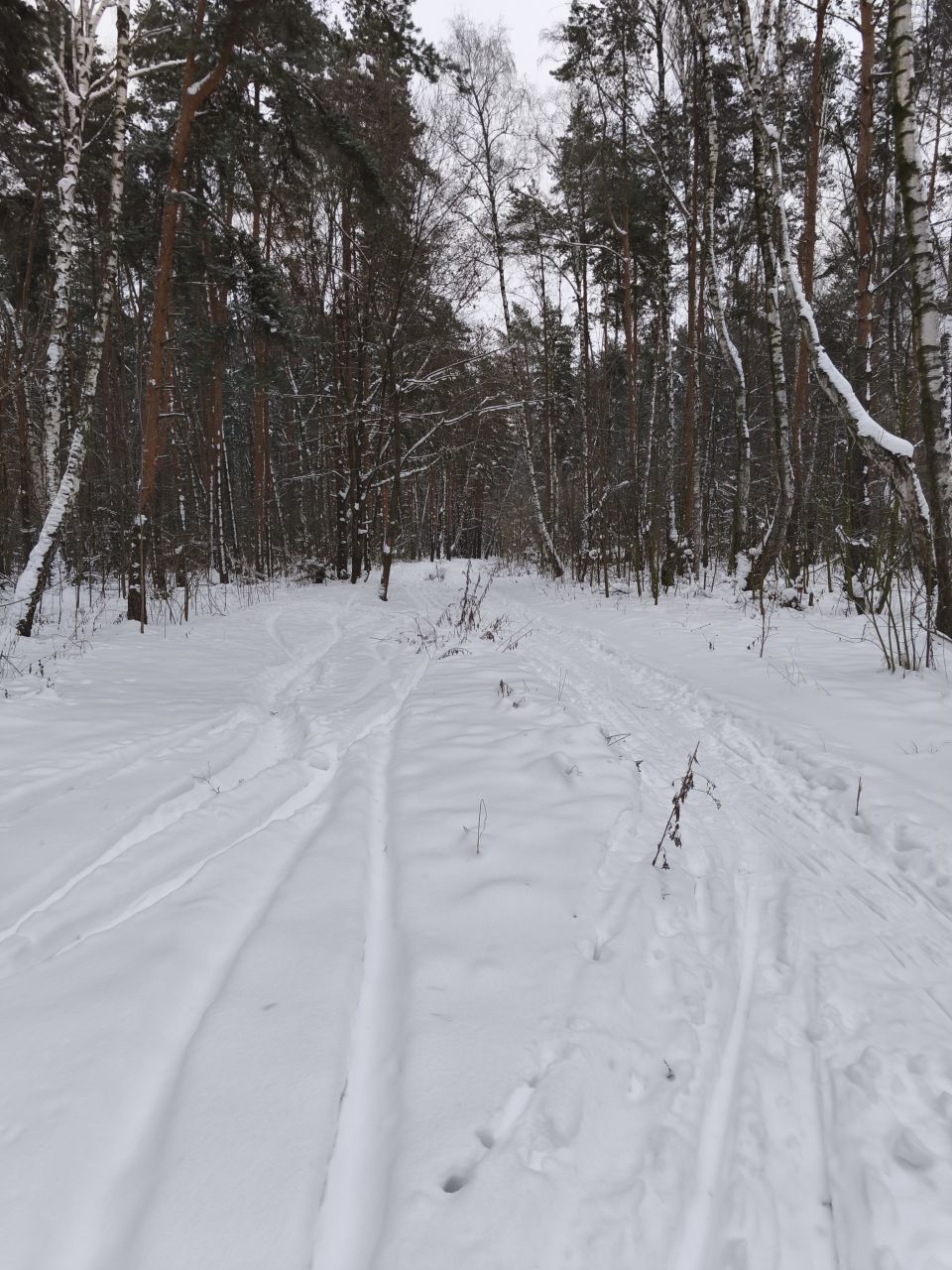 Падал свежий снег, может к завтрашнему дню подзасыпать, но лыжня все равно будет легко угадываться. Местами есть небольшие бугры и ямки.