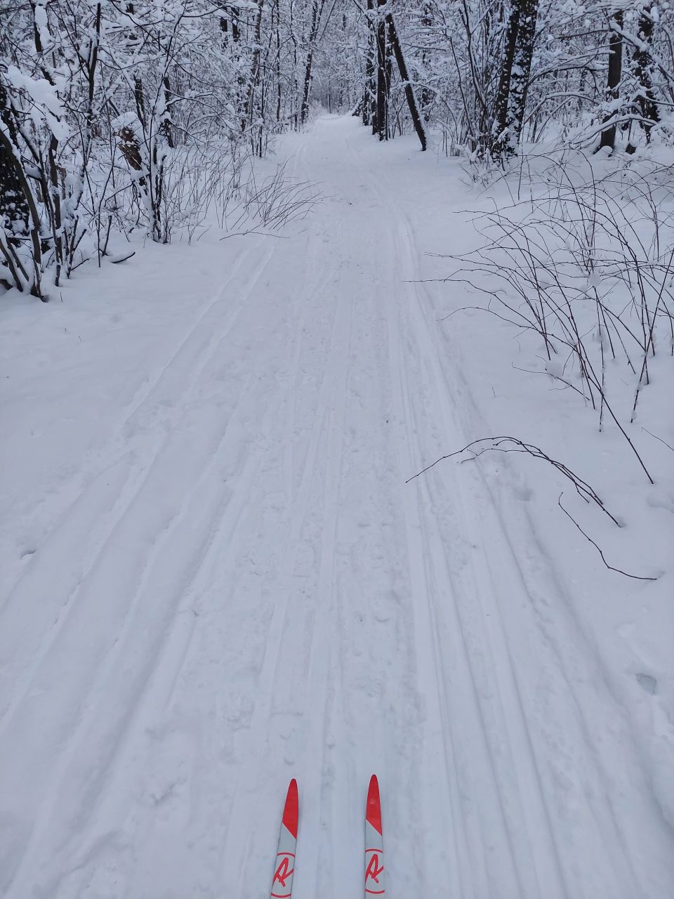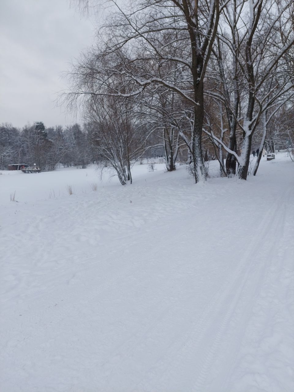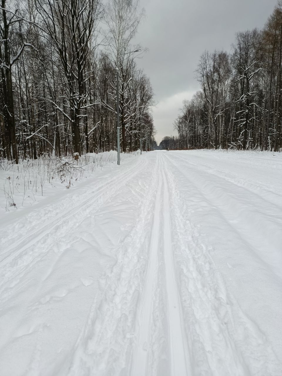 Лыжня только более менее приемлимый самотоп, зато почти по всем просекам и тропам. Вариативность маршрутов зашкаливает. Снег чистый, катальцев немного. Под конек проблематично. Лыжный пункт на Белокаменной закрыт.