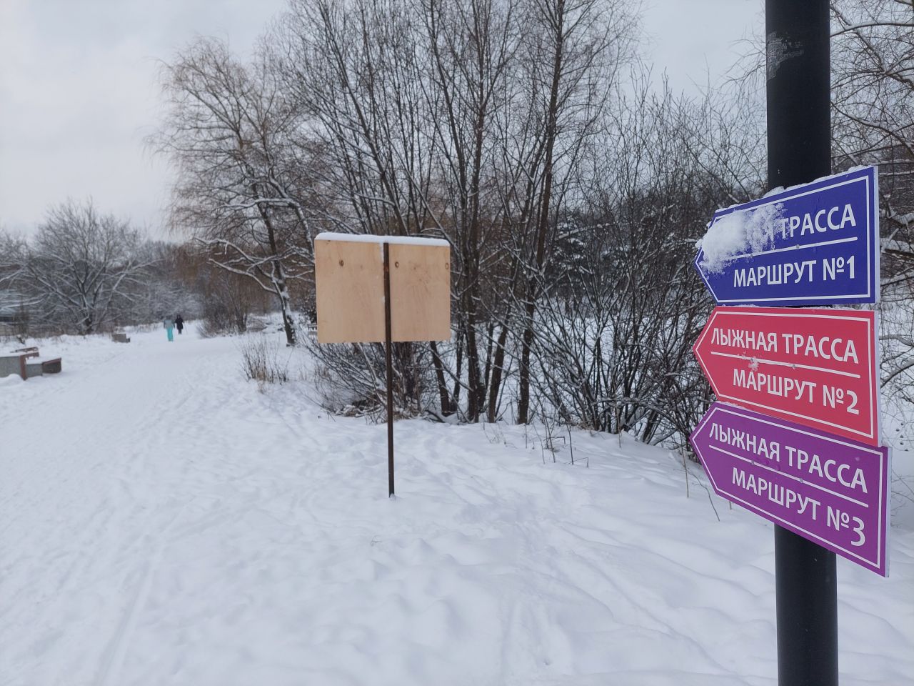 В паре мест проступает вода, имеет смысл снимать лыжи. Скажем, через речку Лось переход нормальный, а вот через Ичку уже хуже.