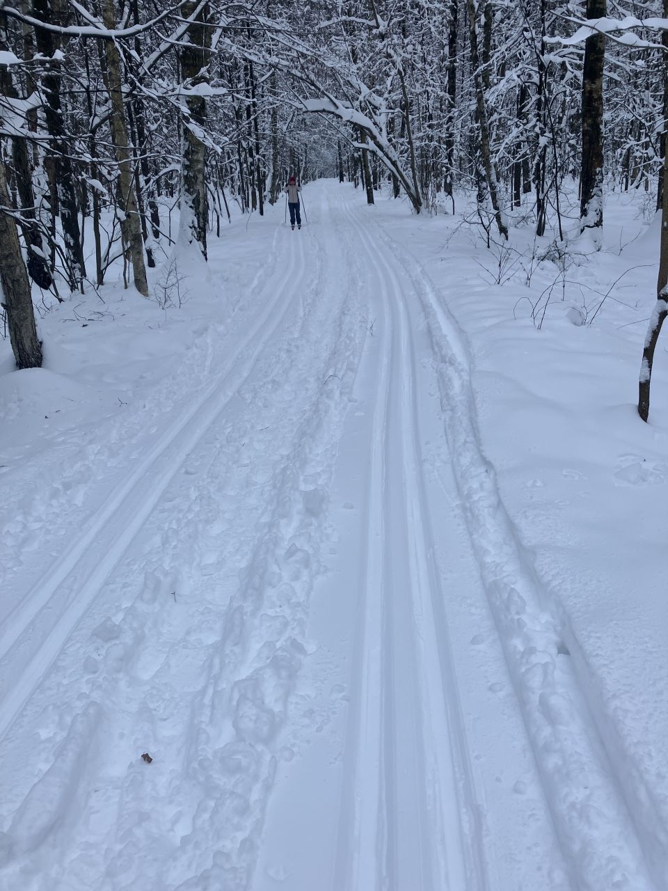 Классикой достаточно хорошо. Немного от ветра на лыжню веток натрусило