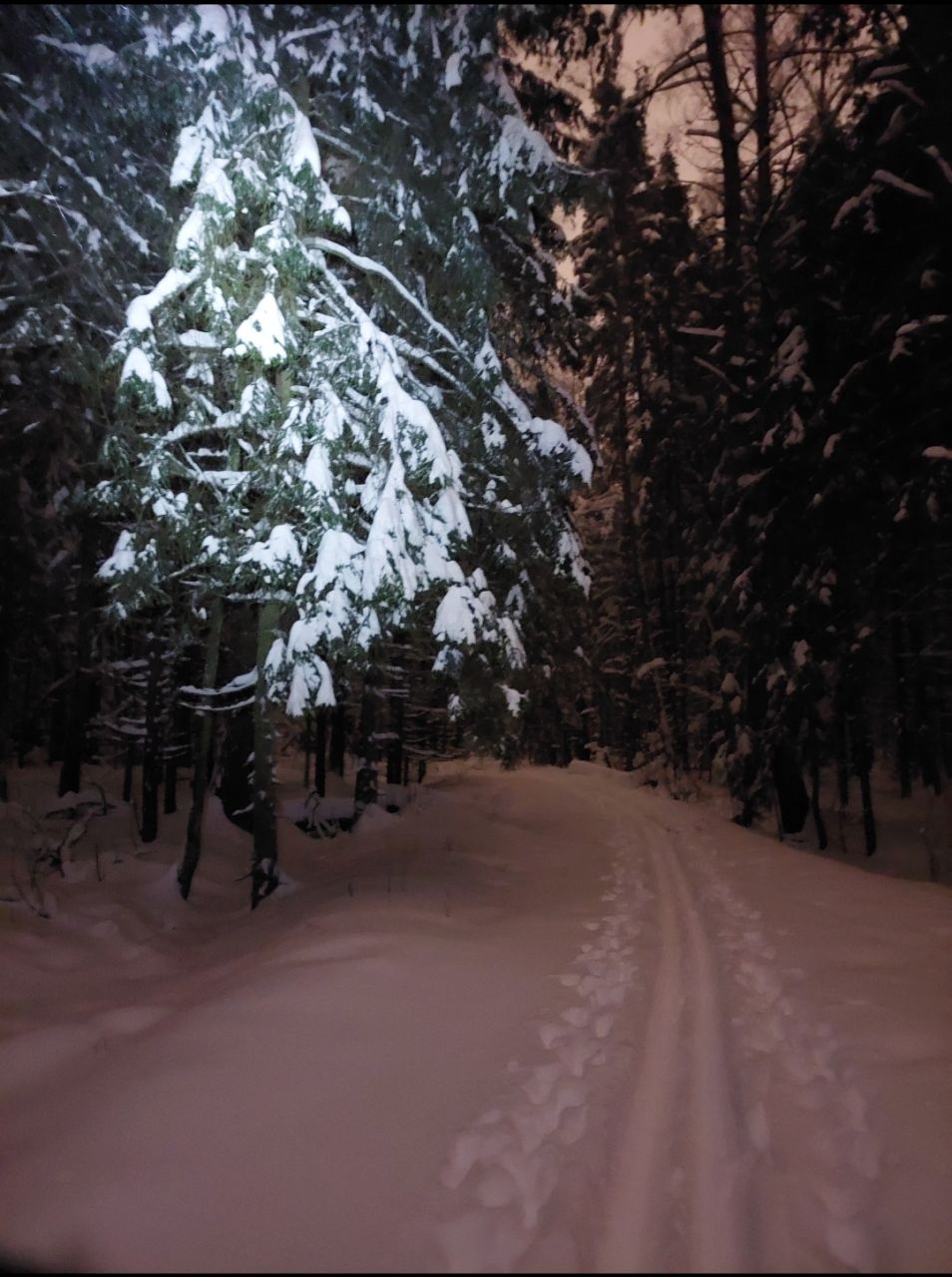 Из минусов: расчищено слишком хорошо: под палочками чувствуется асфальт. Ну не под лыжами, и ладно. Сейчас ночью присыпет, и завтра с утра будет вообще класс.