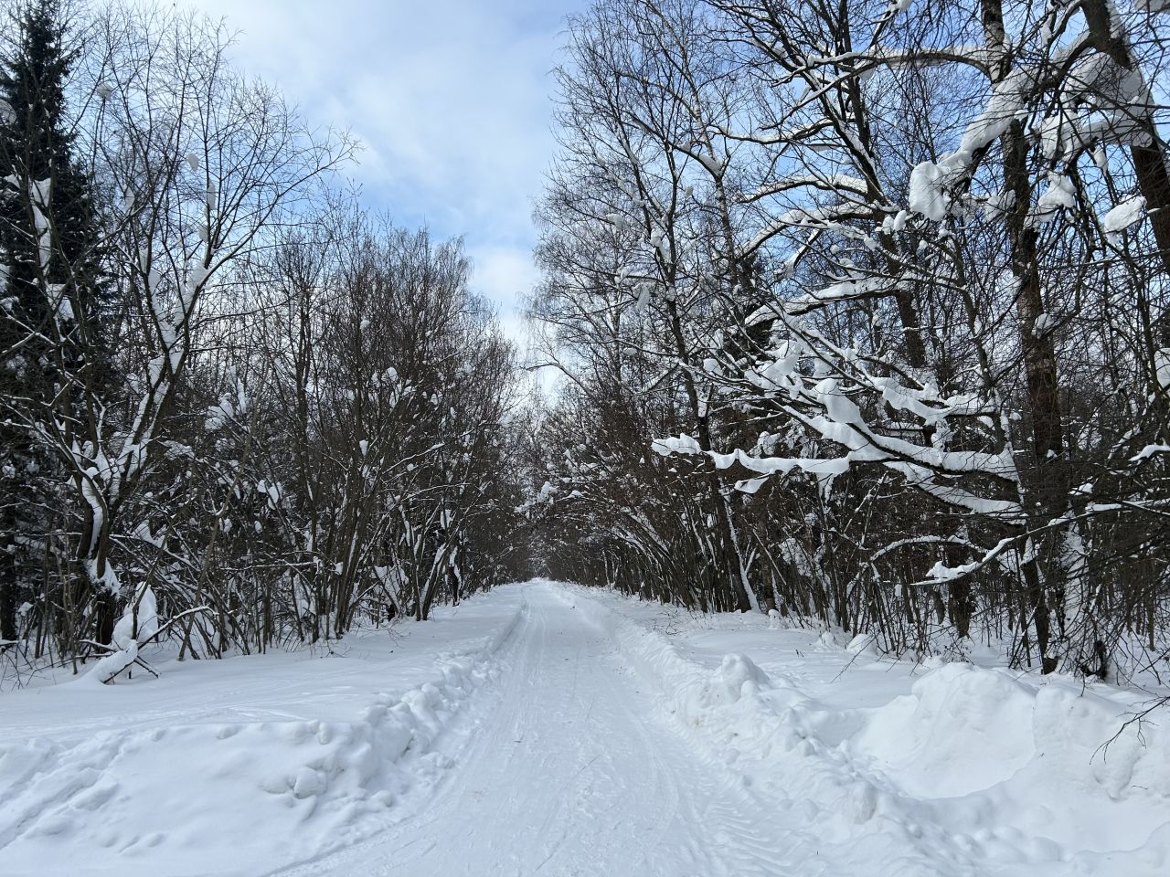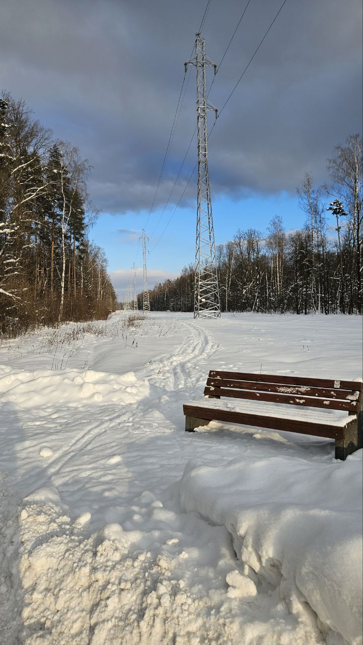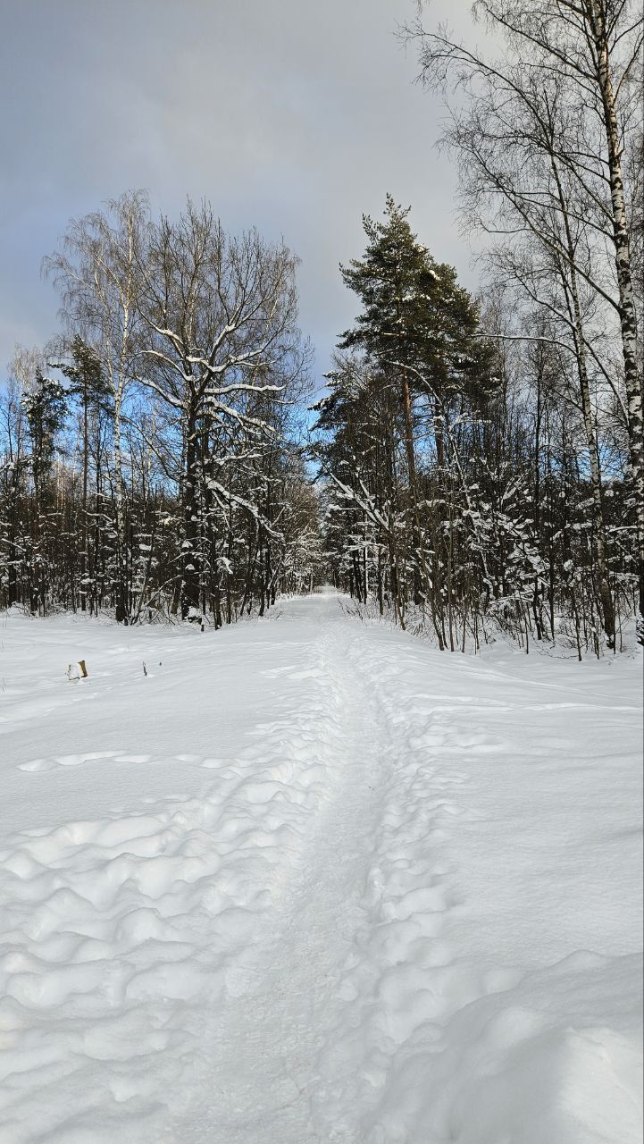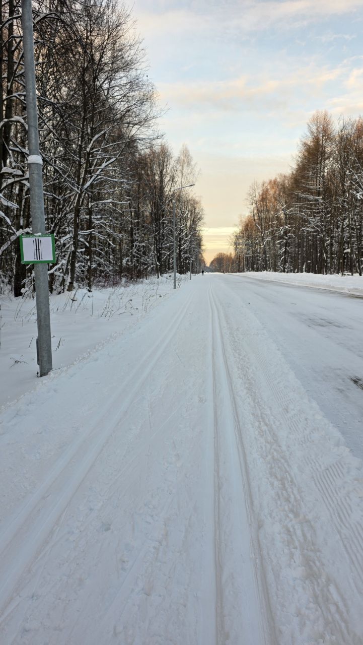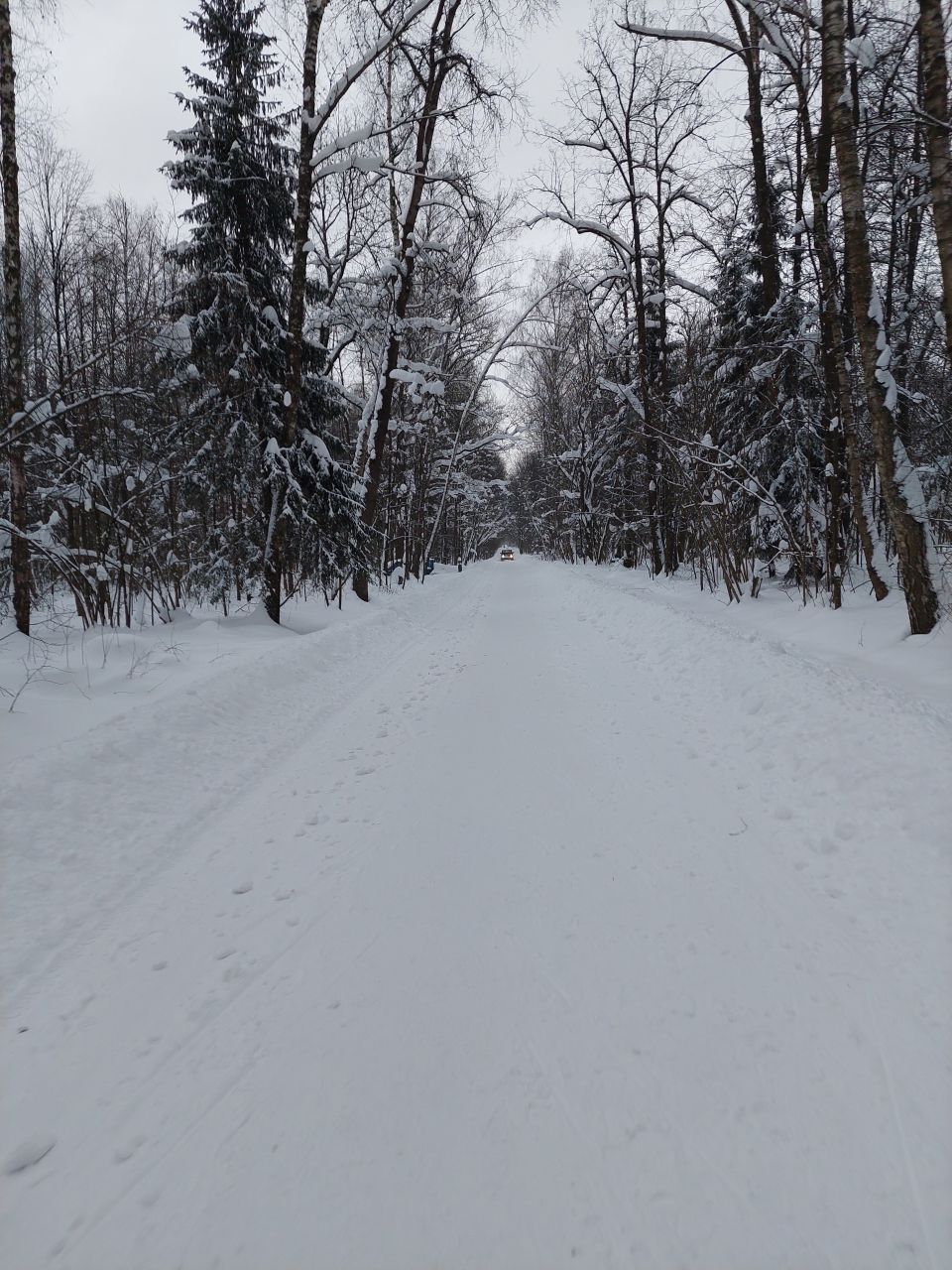 23.01.2026 В надежде найти накатанную дорогу (но не утоптанную до состояния пластика) для конька поехал к началу Бумажной. Думал, что для прогулок не самый популярный вход, и его не будут вычищать до асфальта. Но нет! Вдоль больничного забора подмели лес до асфальта — последнее фото со шлагбаумом (во дворах так не убираются). Прошёл пешком. Абрамцевская в сторону белокаменной сперва показалась нормальной, но, если приглядеться, то половина полотна сереет асфальтом из-под снега. Прямо по Бумажной тоже были видны серые области и в целом снег желтоватый, видна колея автомобиля. По Абрамцевской в сторону МКАД только тропинка. Вдоль ЛЭП — лыжня самотоп. Не стал тратить время, поехал в Метрогородок к трамвайному кругу. Там по прямой от наземного паркинга прокатился до Бабаевских прудов. Первое фото спиной к прудам. Посередине утоптанный снег, по бокам лыжня. Моих умений не хватает по такому плотному снегу ехать коньком. Местами лыжи разъезжаются вбок. Но в общем впечатления положительные. В отличие от прогулки 19.01.