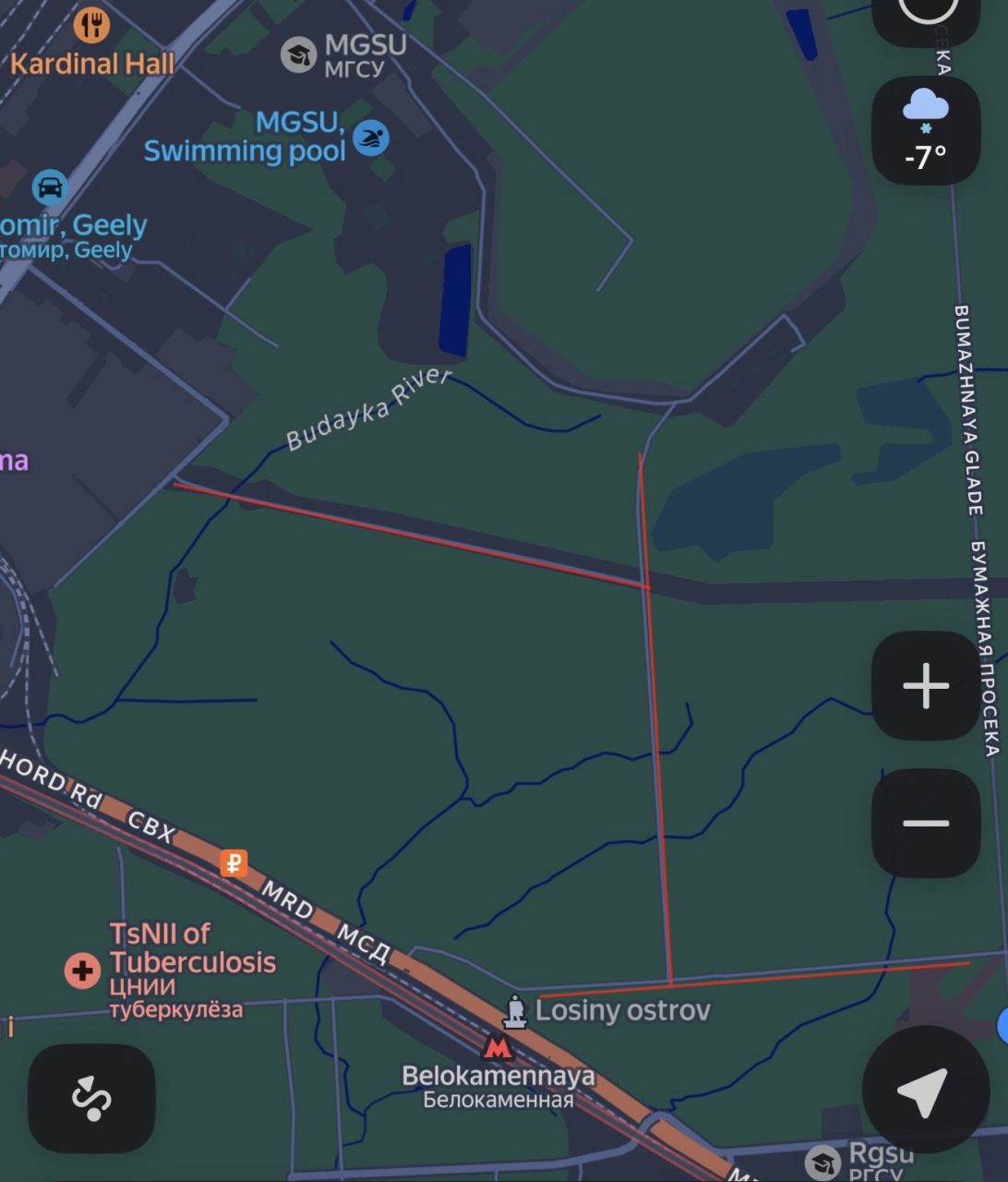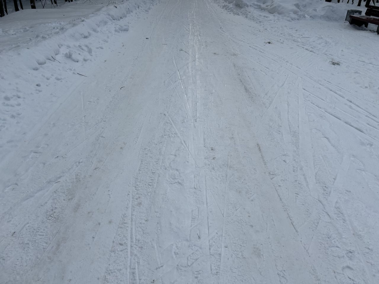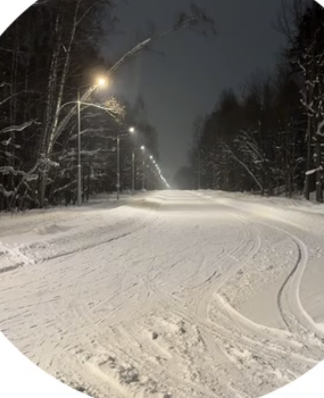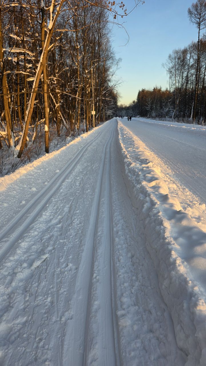 23.01.2026 В надежде найти накатанную дорогу (но не утоптанную до состояния пластика) для конька поехал к началу Бумажной. Думал, что для прогулок не самый популярный вход, и его не будут вычищать до асфальта. Но нет! Вдоль больничного забора подмели лес до асфальта — последнее фото со шлагбаумом (во дворах так не убираются). Прошёл пешком. Абрамцевская в сторону белокаменной сперва показалась нормальной, но, если приглядеться, то половина полотна сереет асфальтом из-под снега. Прямо по Бумажной тоже были видны серые области и в целом снег желтоватый, видна колея автомобиля. По Абрамцевской в сторону МКАД только тропинка. Вдоль ЛЭП — лыжня самотоп. Не стал тратить время, поехал в Метрогородок к трамвайному кругу. Там по прямой от наземного паркинга прокатился до Бабаевских прудов. Первое фото спиной к прудам. Посередине утоптанный снег, по бокам лыжня. Моих умений не хватает по такому плотному снегу ехать коньком. Местами лыжи разъезжаются вбок. Но в общем впечатления положительные. В отличие от прогулки 19.01.