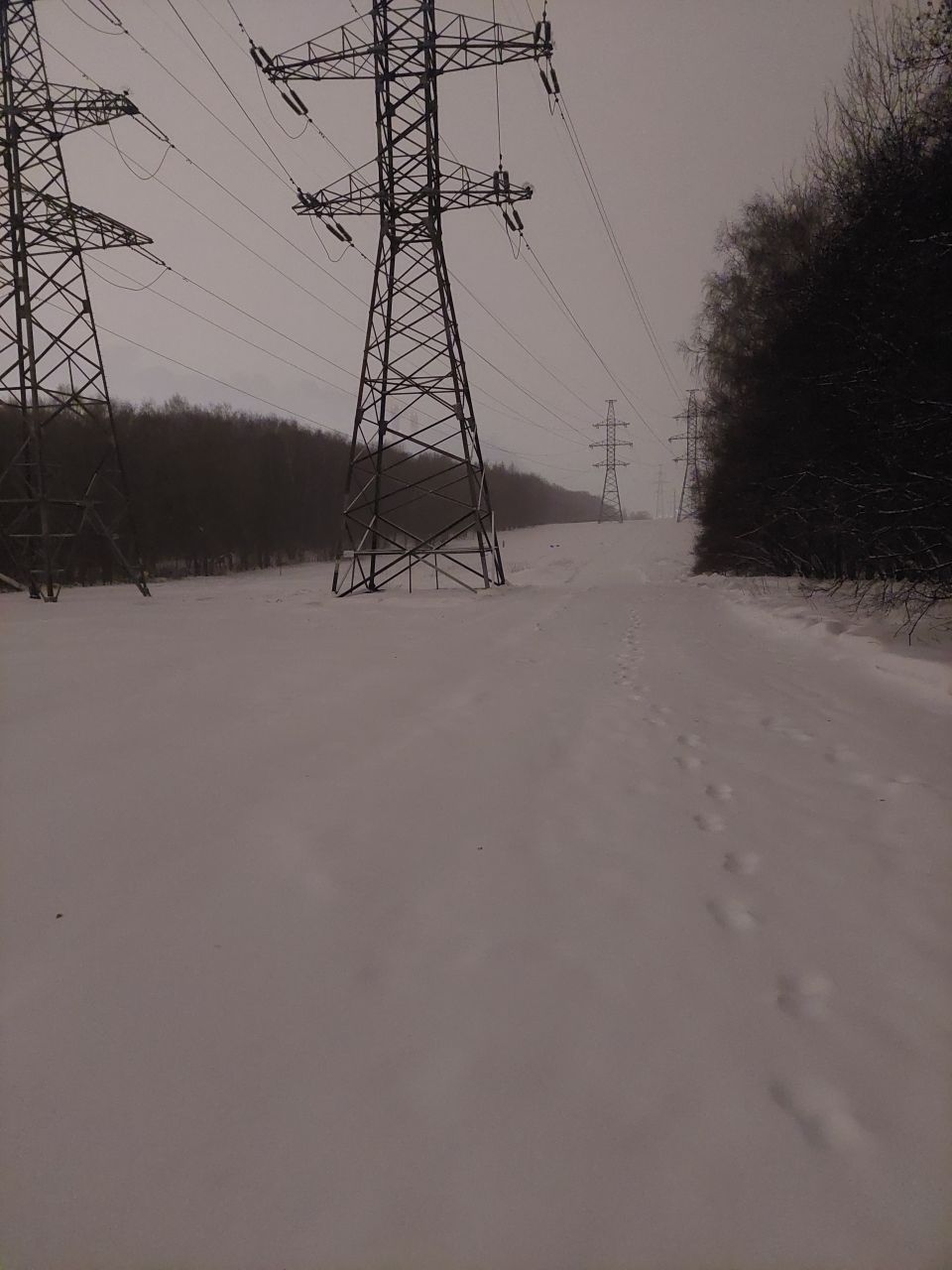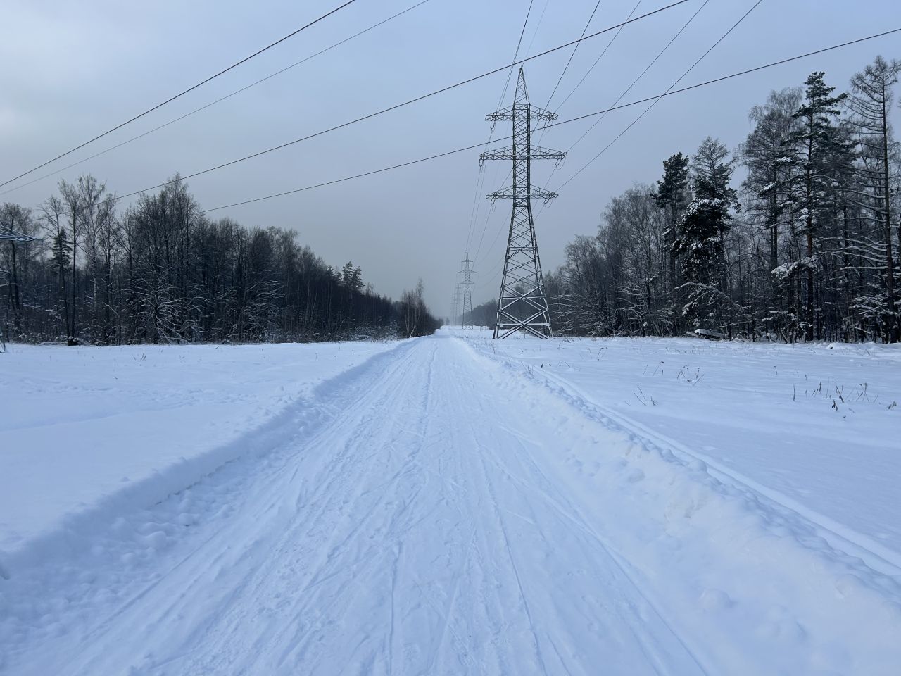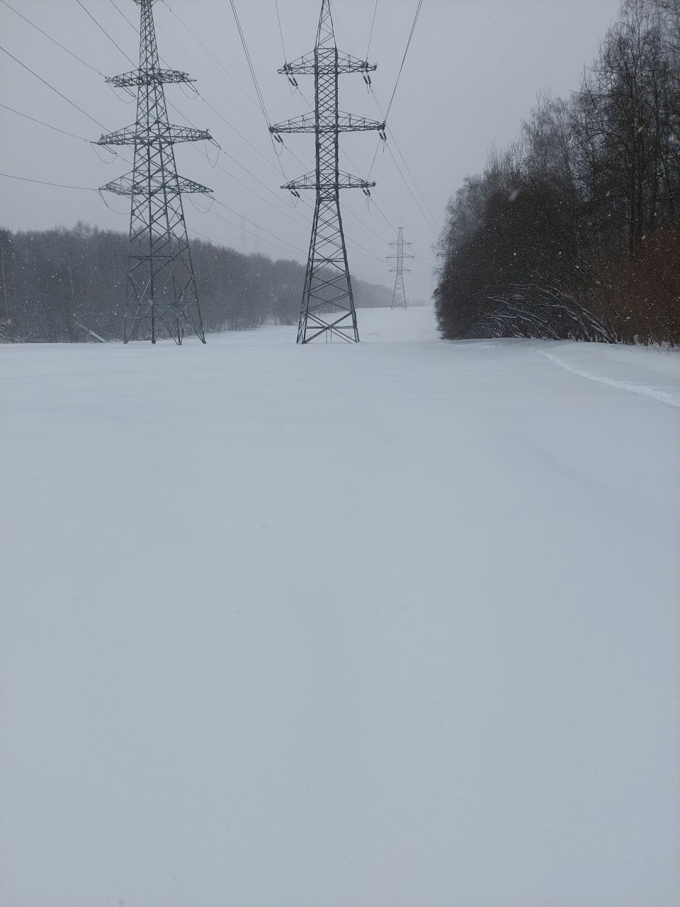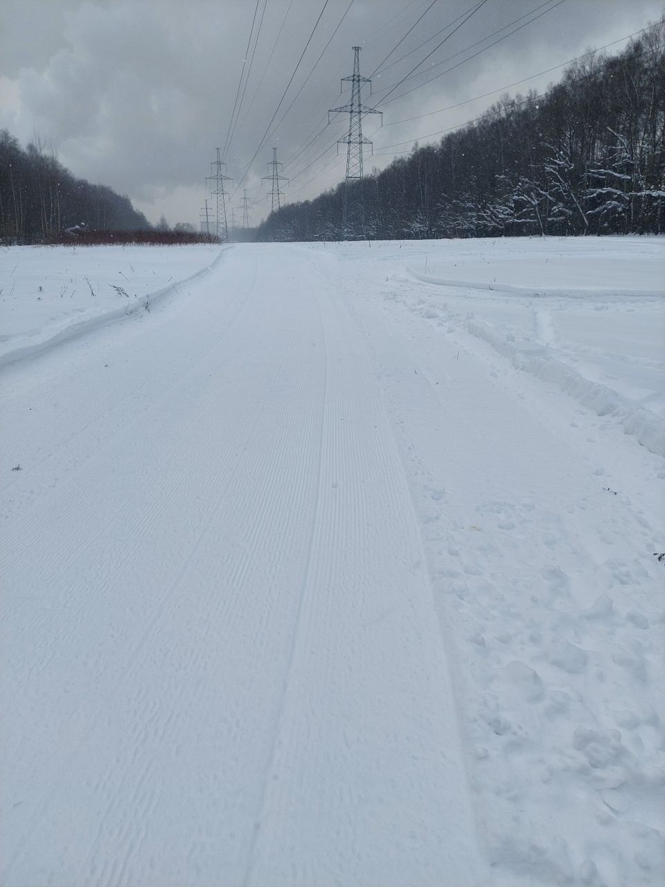 19.01.2026 ходил от трамвайного круга Метрогородка вдоль ЛЭП. На пересечении с Абрамцевской трактор сгрёб сугроб и наворотил дальше вдоль ЛЭП колею. Посередине — мягкий снег примерно метр-полтора шириной. Саму Абрамцевскую уходили ногами и укатали трактором, местами выскоблили до асфальта. Снег очень плотный и гладкий, посередине горб.