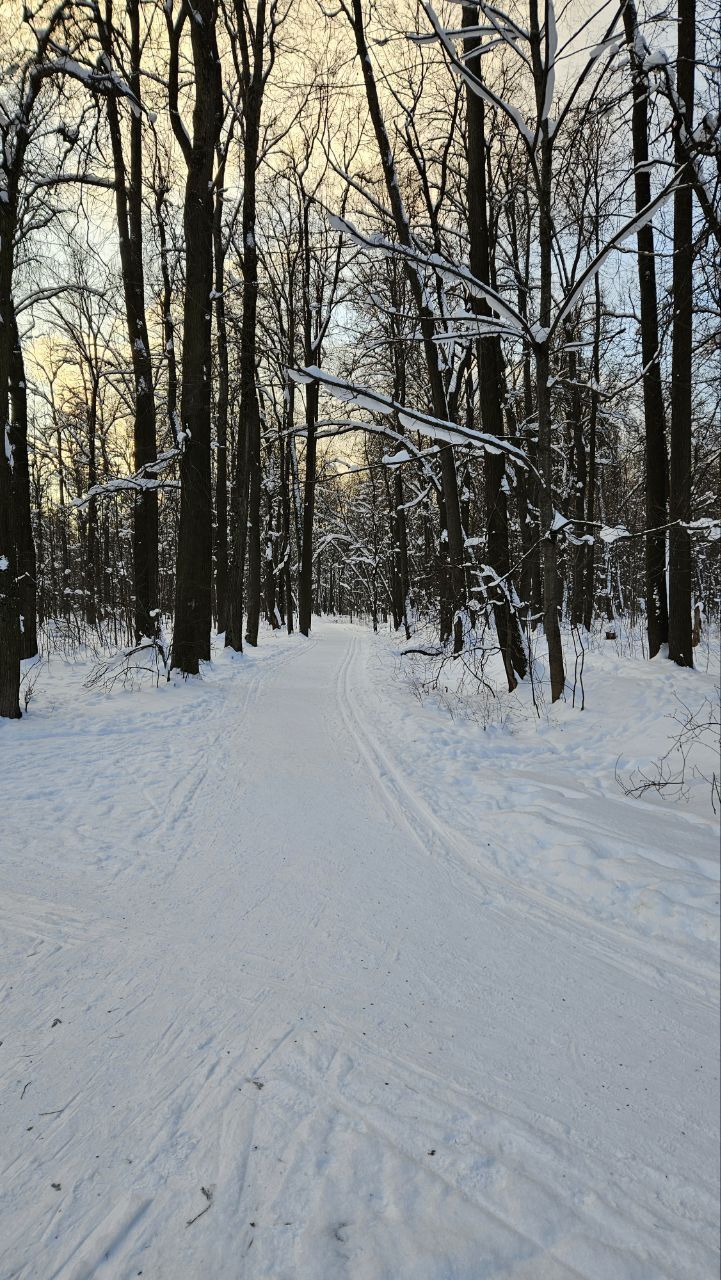 Лыжни в основном глубокие и мягкие, но потихоньку раскатывают. В юго-восточной части парка уже есть плотные, раскатанные лыжни и даже свежая нарезка под классику! Большие просеки раскатаны трактором в бетон. Лыжней на них нет, но коньком - самое то!