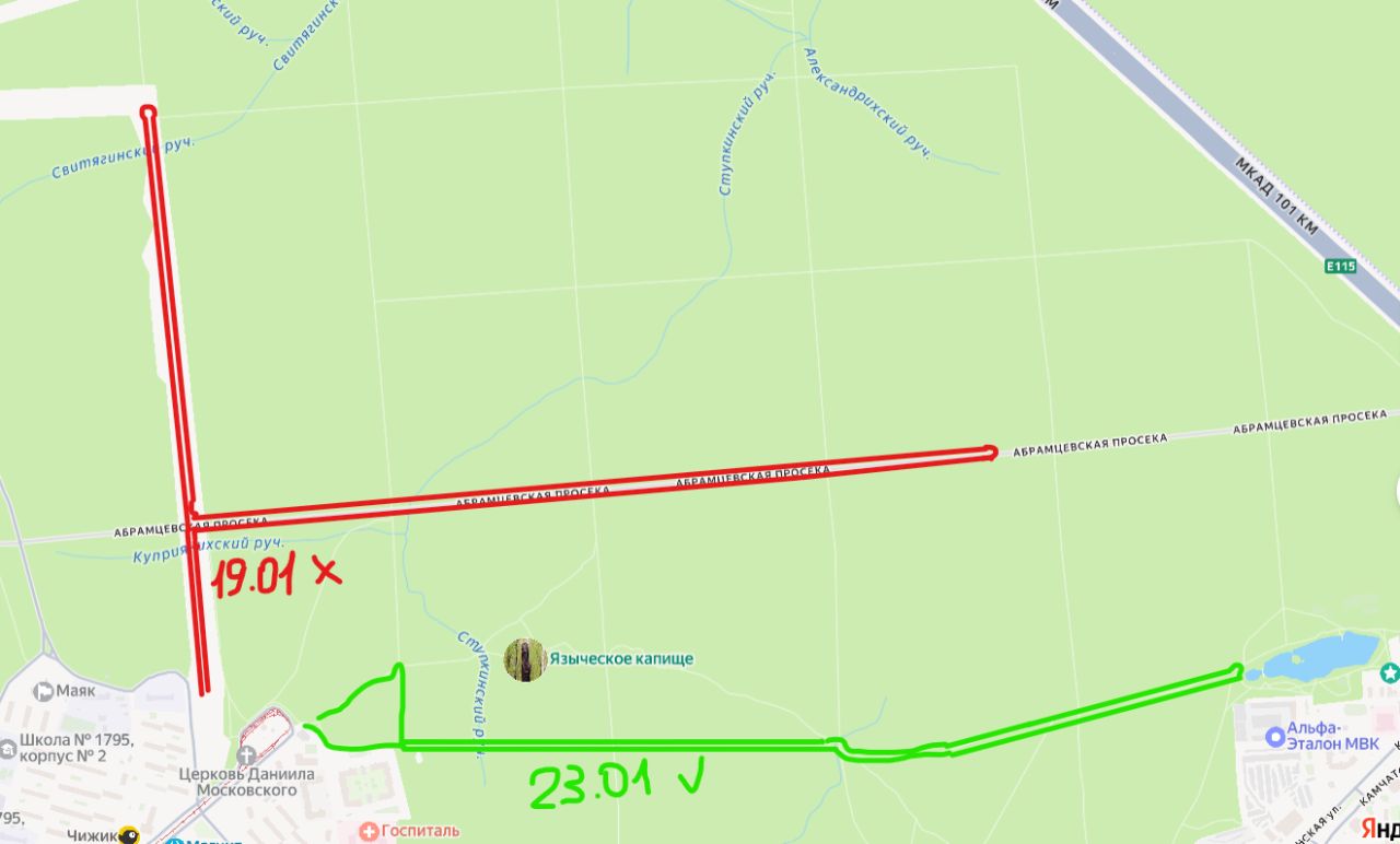 Для спортивного катания коньковым ЛО в нынешнем виде почти непригоден (лучше треугольник в будни для этого), зато у него другой весомый плюс — огромная территория с изобилием самотопа. Особенно рекомендую воспользоваться случаем и выбраться во внешнюю часть парка, за МКАД. Благодарю анонимного автора, который 6 января разместил удобную схему маршрута, как именно это можно сделать. Проверил 23 января — маршрут рабочий. Во внешней части абсолютная тишина и наслаждение. Обновил участки маршрута, где дня 3 явно никого не было. Рекомендую! Прикладываю свой вариант на 30 км от Проходчиков.