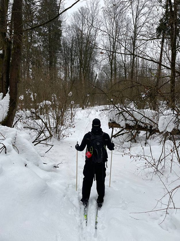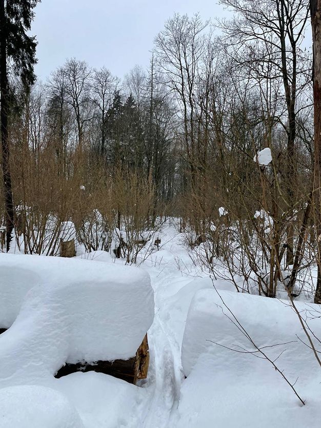 А вот за ним интереснее. На просеке, которая идёт от подземного перехода -лыжни нет. На просеке, которая идёт к пешеходному мосту в Гольяново лыжня есть. Но тут есть один нюанс. Если не умеете мазаться на держание- то будут одни муки. Палками отталкиваться не получается. Слой снега по ощущениям 80-120см. Как лоси в этом лесу пасутся- я хз.