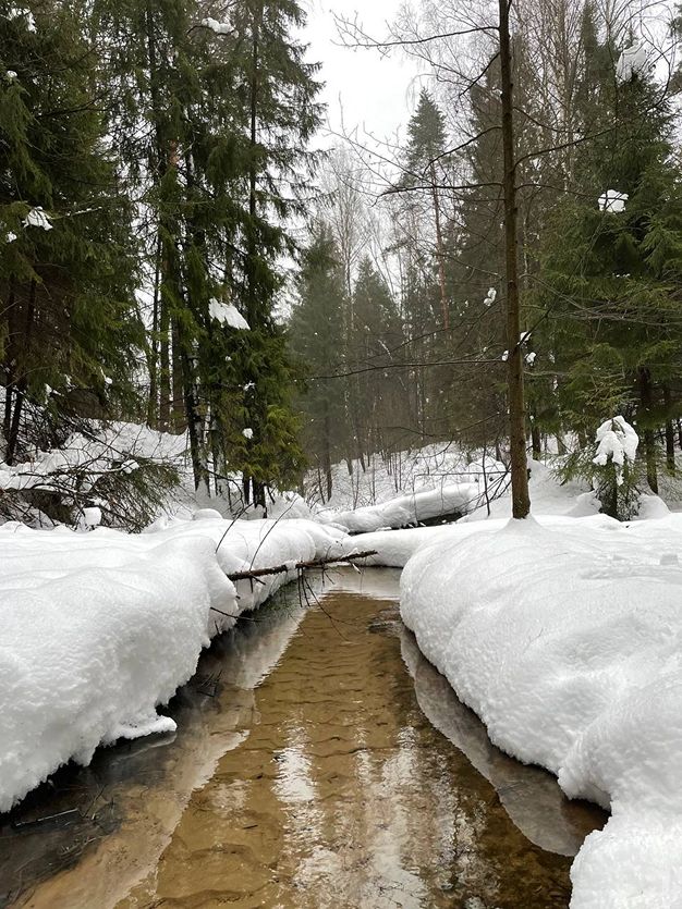 В паре мест проступает вода, имеет смысл снимать лыжи. Скажем, через речку Лось переход нормальный, а вот через Ичку уже хуже.