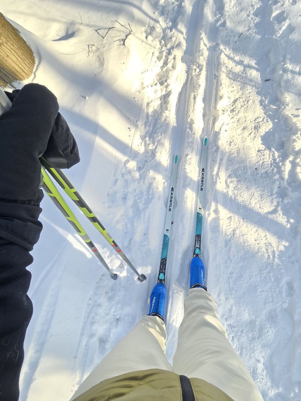 Лыжня только более менее приемлимый самотоп, зато почти по всем просекам и тропам. Вариативность маршрутов зашкаливает. Снег чистый, катальцев немного. Под конек проблематично. Лыжный пункт на Белокаменной закрыт.