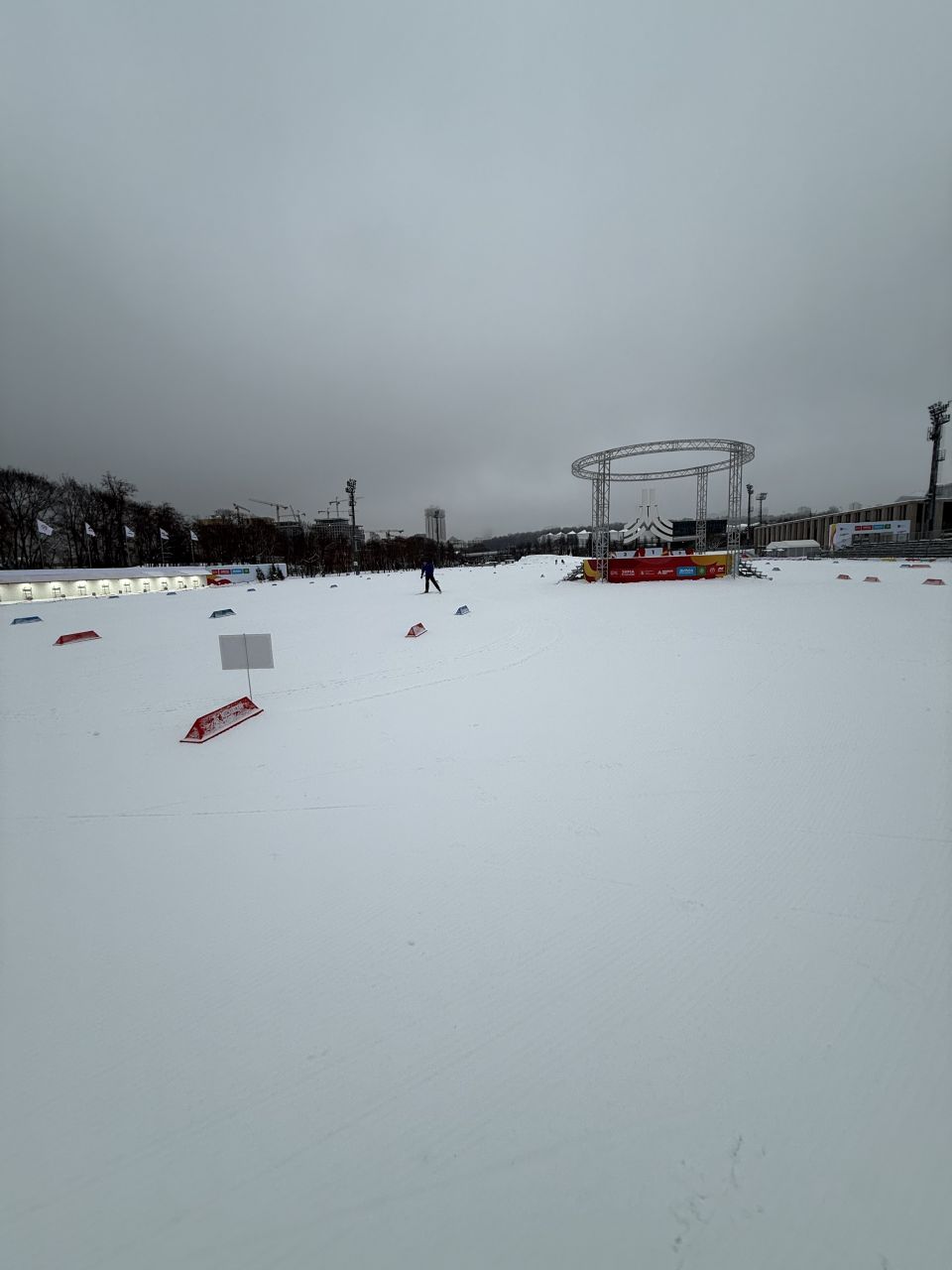 Трасса хорошая, снег продолжают пылить в сторону, видимо на всякий случай. Раздевалок в этом году по две на каждый пол, ребята, которые выдают майки и ключи очень приятные.
