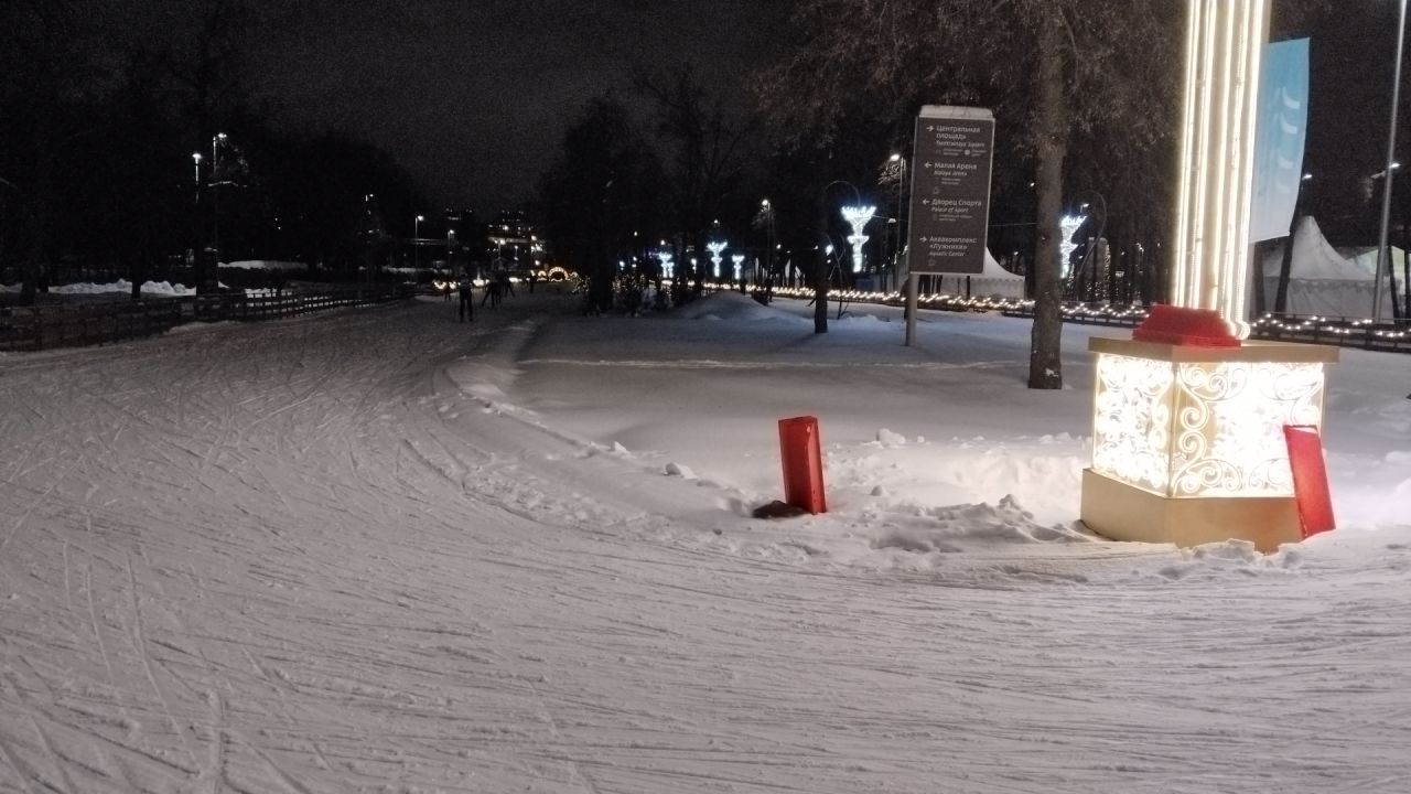 катался с 11 часов. На стадионе лыжи проваливаются, кроме финишной прямой. А вот петля на площади Ленина с мостом катит отлично.