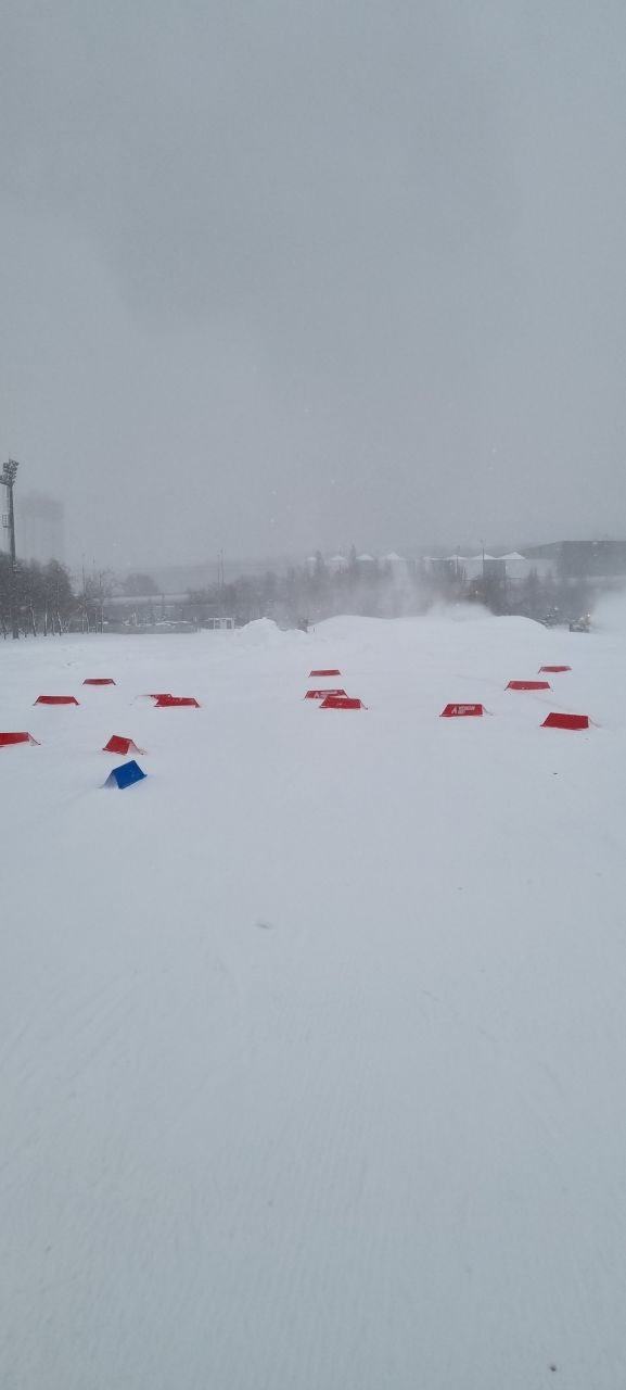 Трасса хорошая, снег продолжают пылить в сторону, видимо на всякий случай. Раздевалок в этом году по две на каждый пол, ребята, которые выдают майки и ключи очень приятные.
