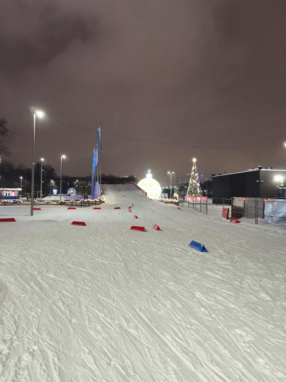 На трассе неплохо, а вот идти от МЦК теперь такое себе. Нужно войти через правый вход, дойти через детский городок и сквозь горку с тюбингами до стадиона Лужники и повернуть налево, огибая трассу. И там уже идти до старого бокового входа на трассу. Иногда бывает открыта калитка около туалетов, но обычно закрыта. Надеюсь, сделают еще какой-нибудь вариант прохода все-таки.