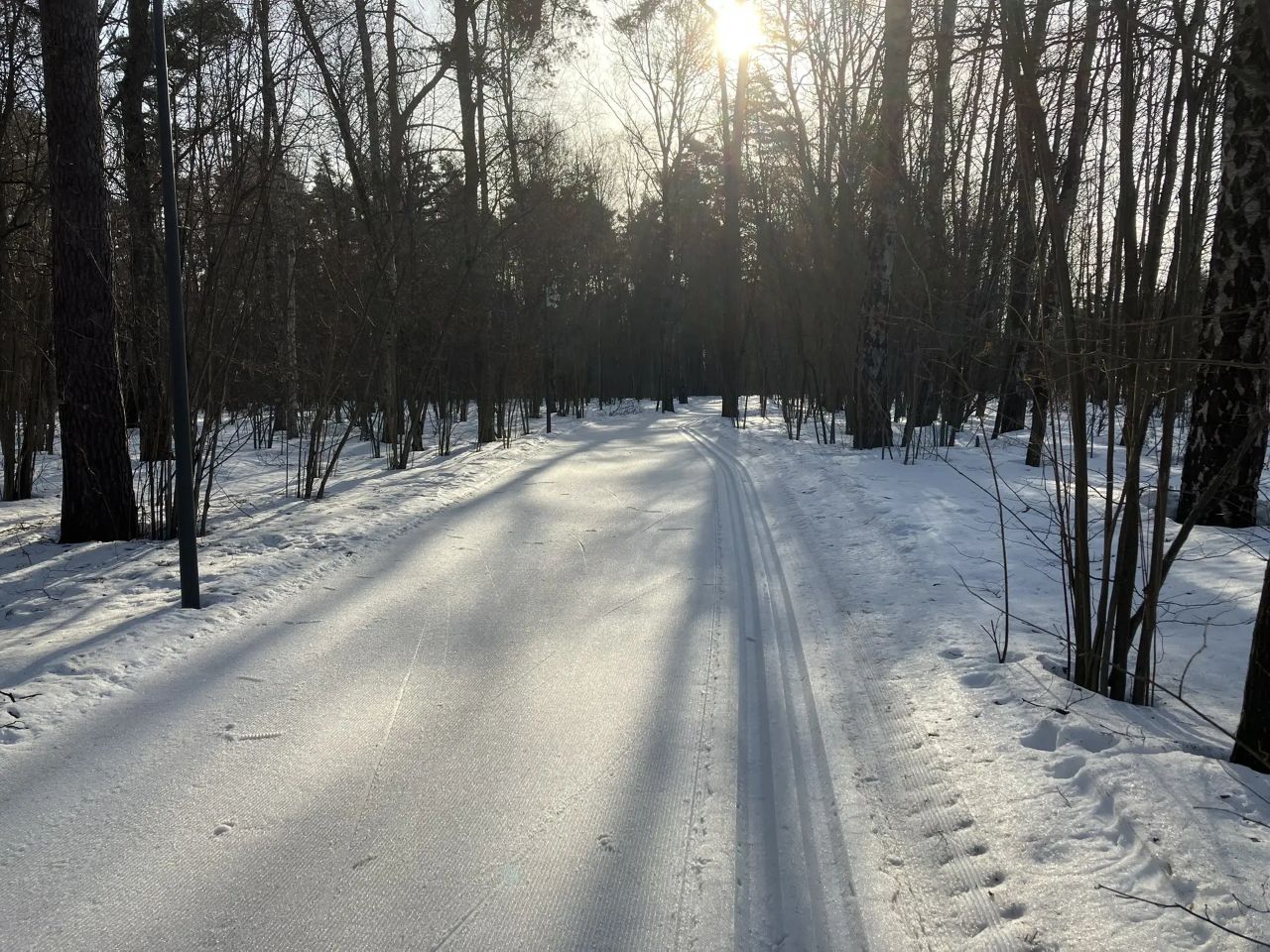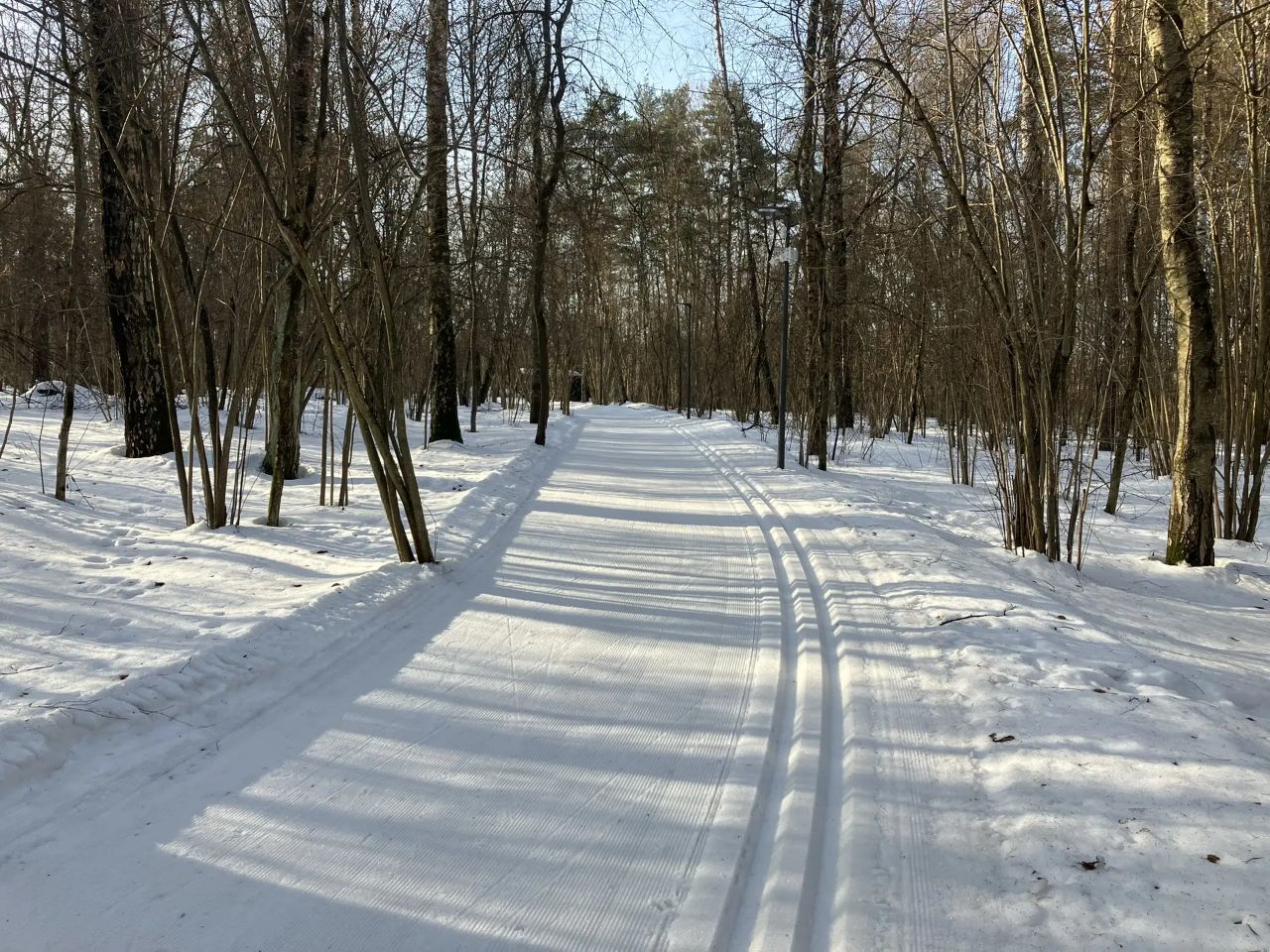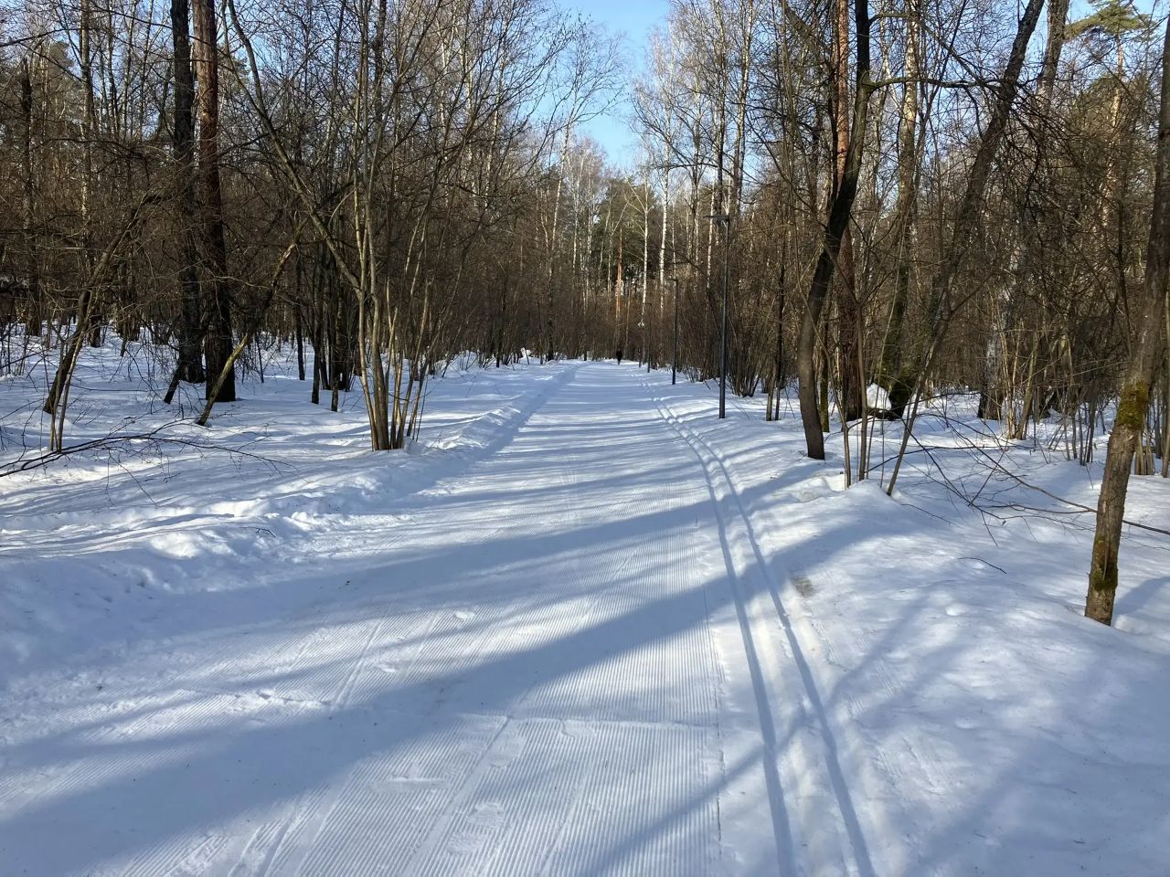 С 9 до 10 утра отлично. Ещё никто не катался, трасса сделана с ночи, плотная, чистая. По коньковому полотну ходят пешеходы. К 10 на трассу потянулись лыжники и собачники.