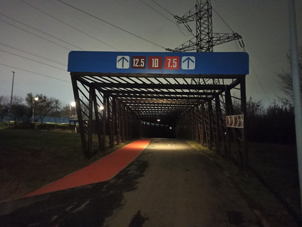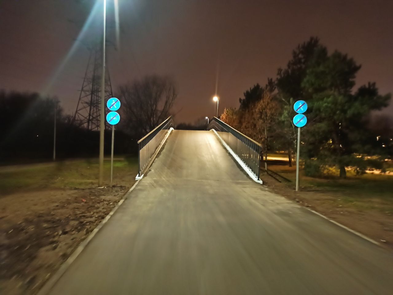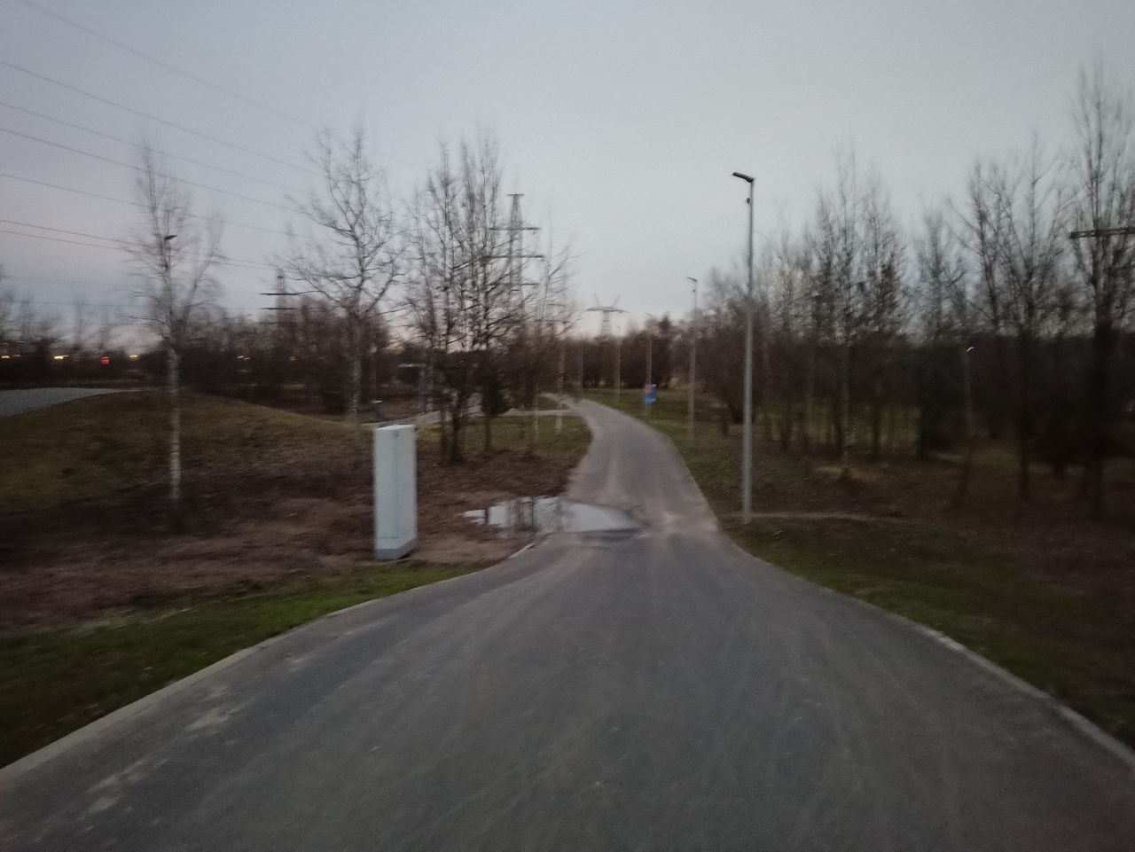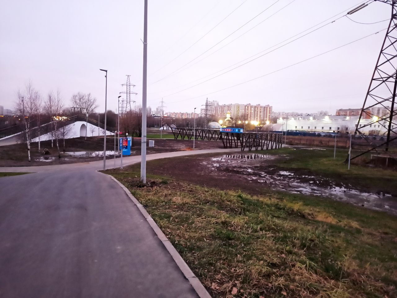 Нет освещения, местами грязь, т.к. разбираются со светом. В остальном все отлично. Движение против часовой стрелки. Максимальный круг 12,5 км идем до самого МКАДа, вдоль Москва-реки, затем разворот и возвращение к роллерке.