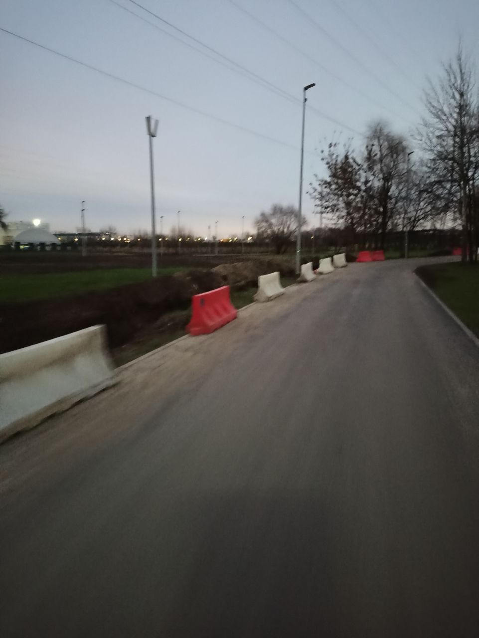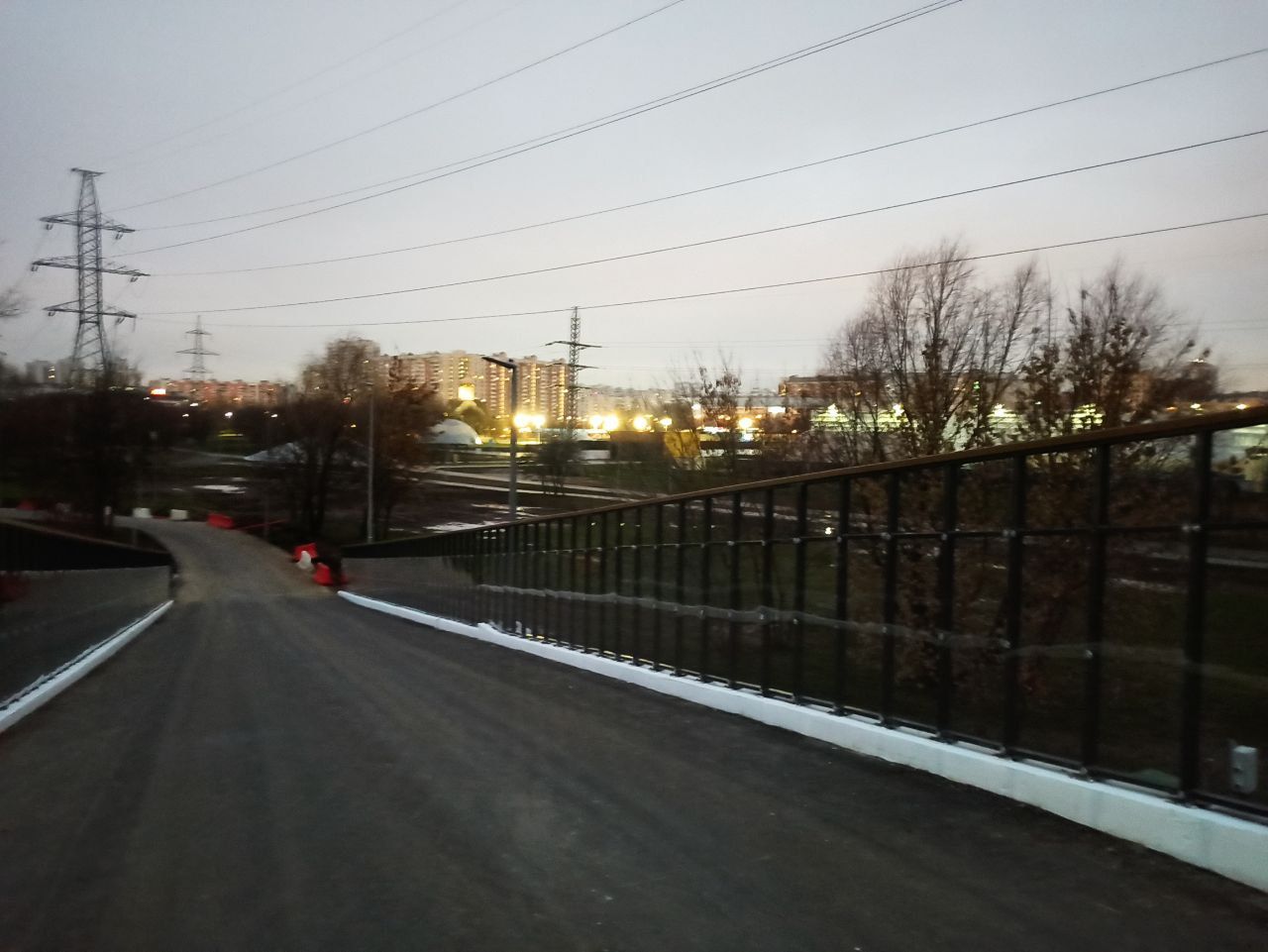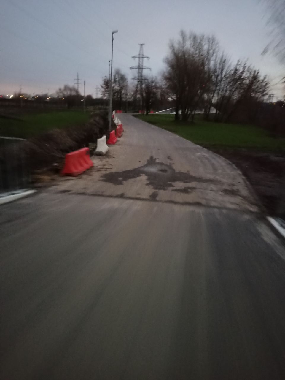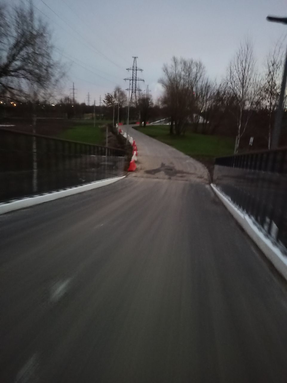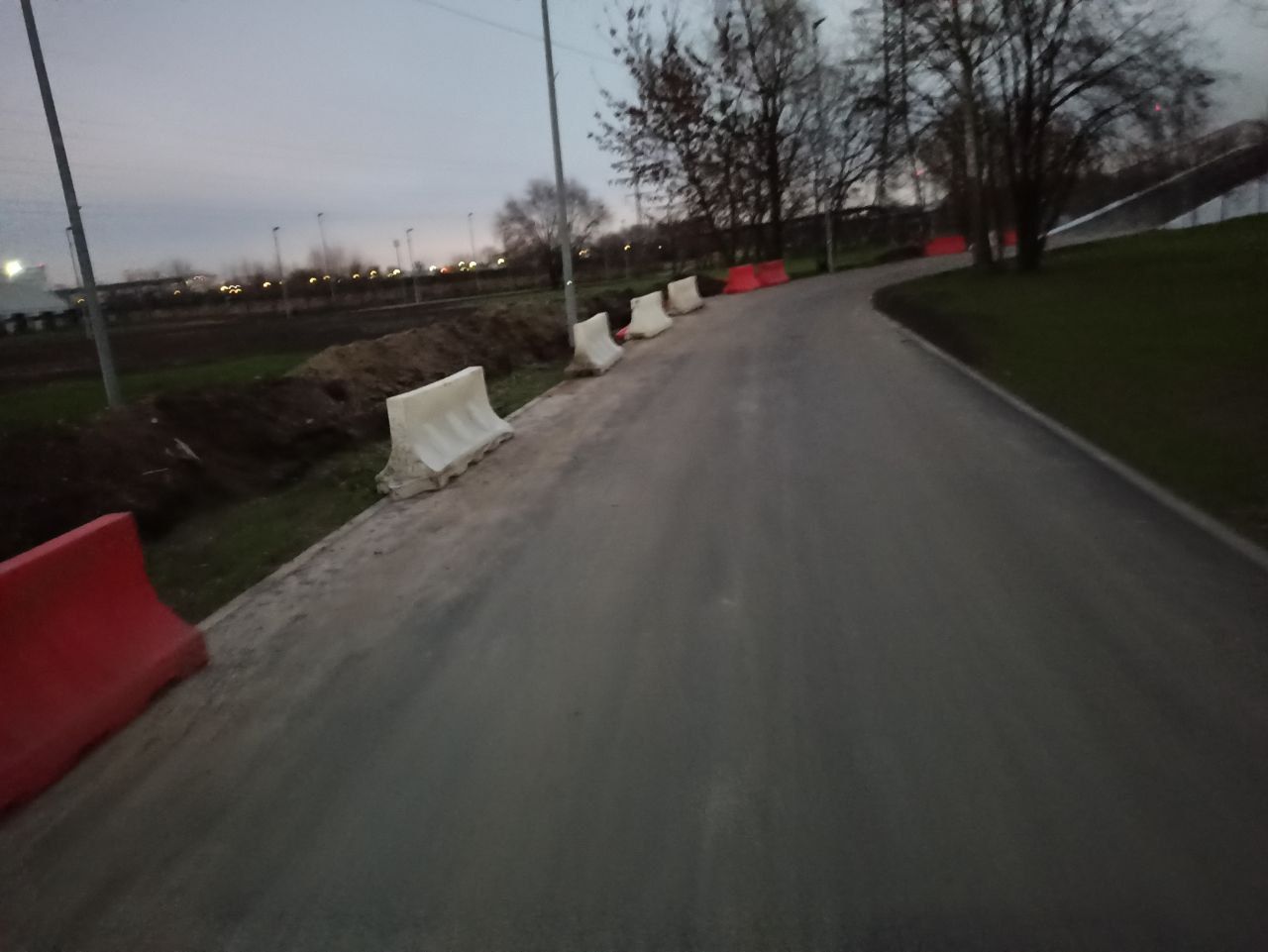 Шикарный мелкозернистый асфальт! Теперь можно на супер жестких колесах. На основной трассе добавились горки, чтобы не пересекаться с пешеходами. 1.11 рабочие продолжали на горках делать ограждение.
