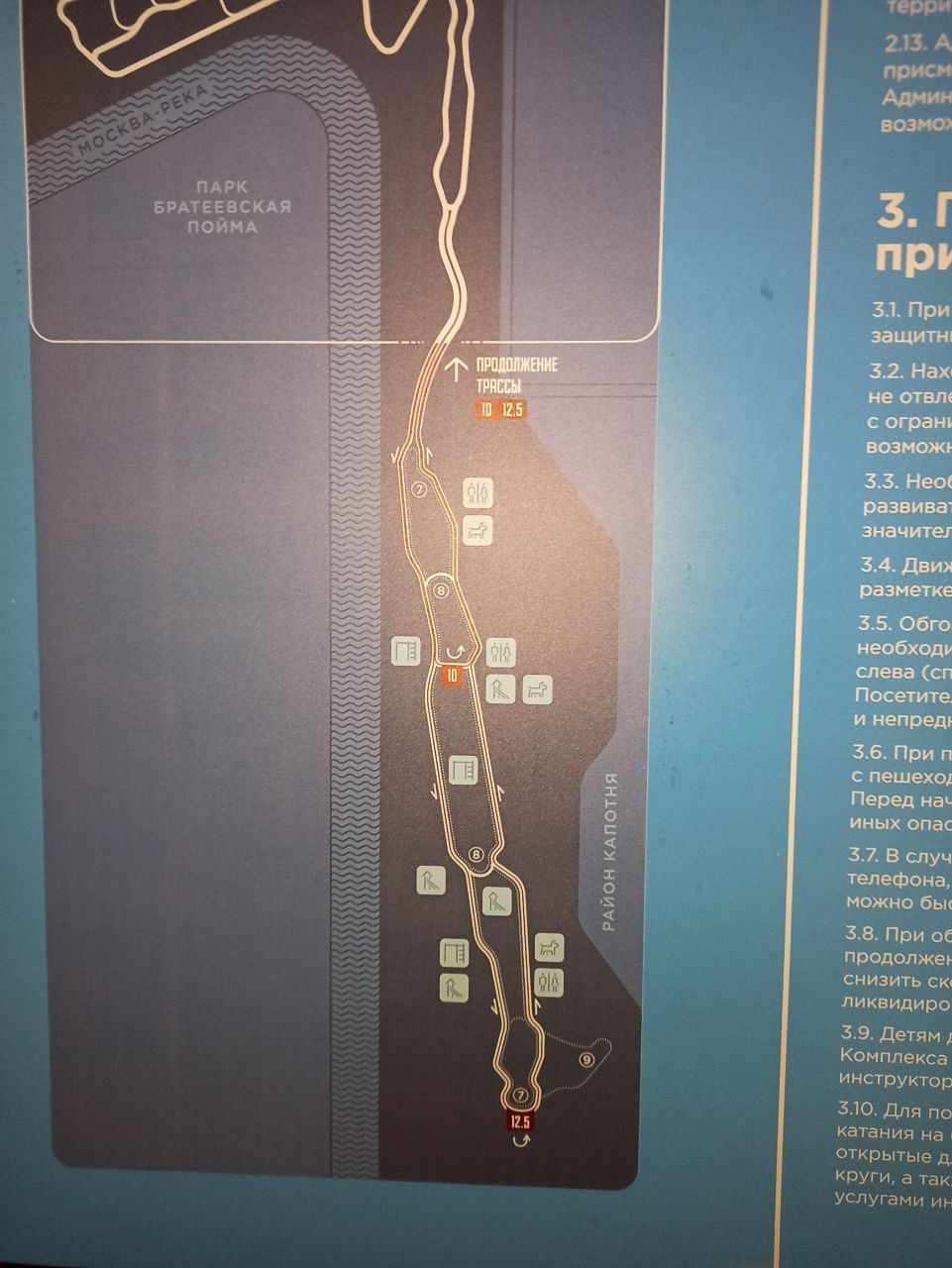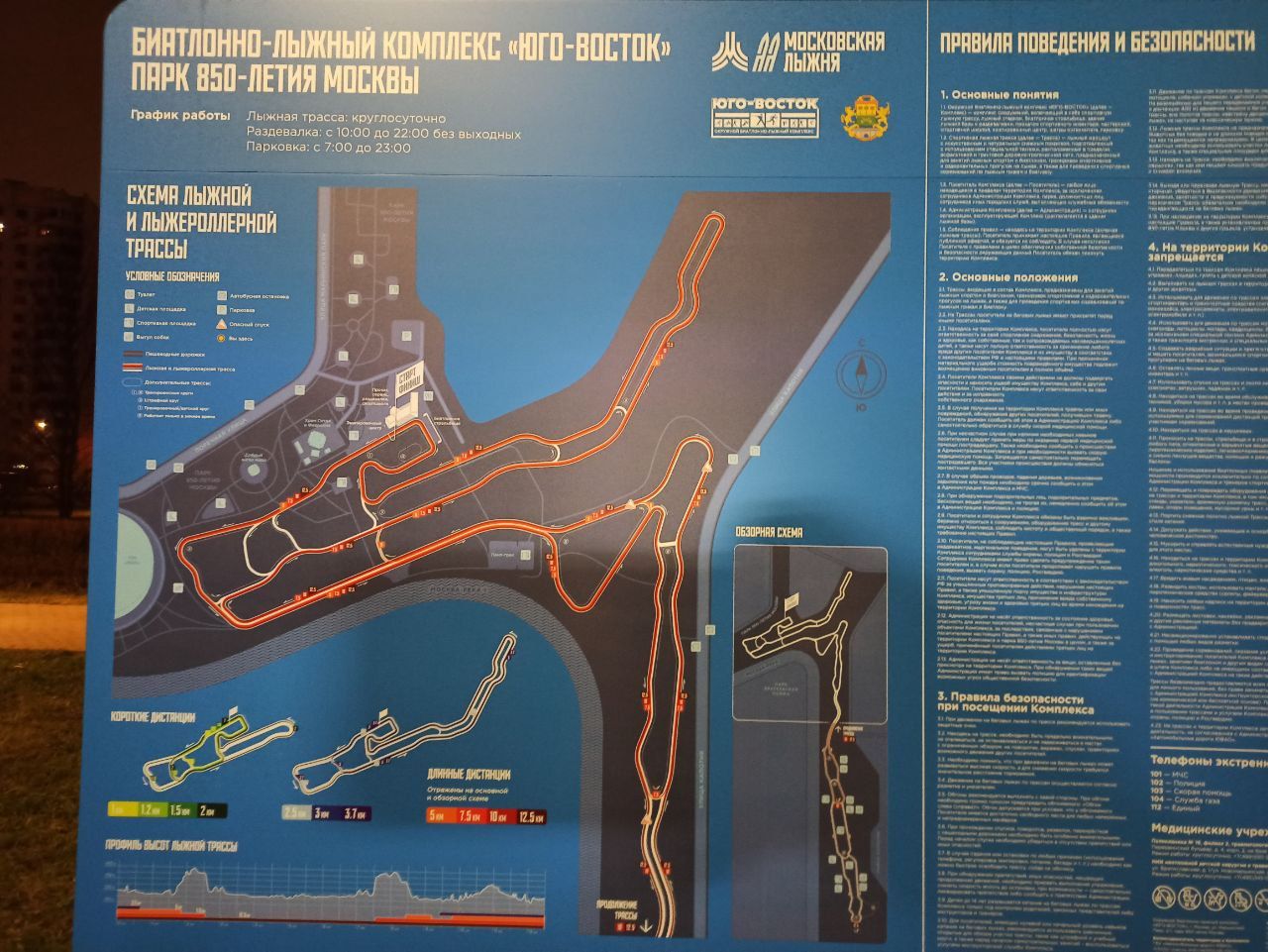 Кусок от памп-трека до спуска к Капотне опасный из-за перекрестка. Стрелки там противоречивые. У лыжной базы установлен указатель против часовой стрелки, что вводит в ступор тех, кто катался тут раньше.