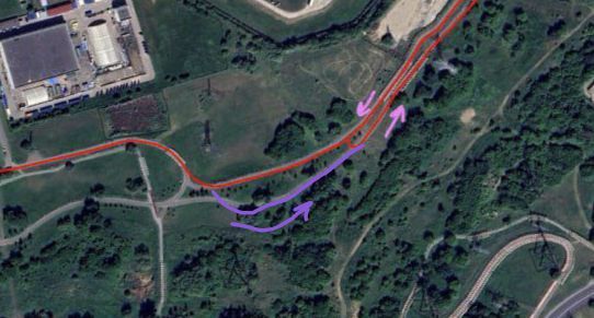 К комментарию ниже добавлю фото. Красным на схеме отметил, где участок круга с движением в обе стороны (синим начерчено, где сейчас лежит снег).