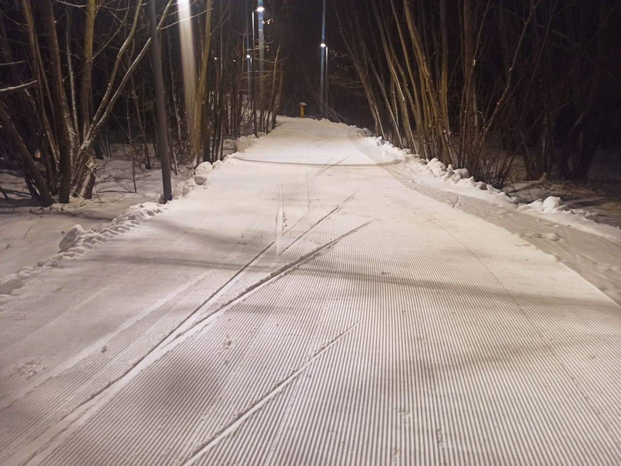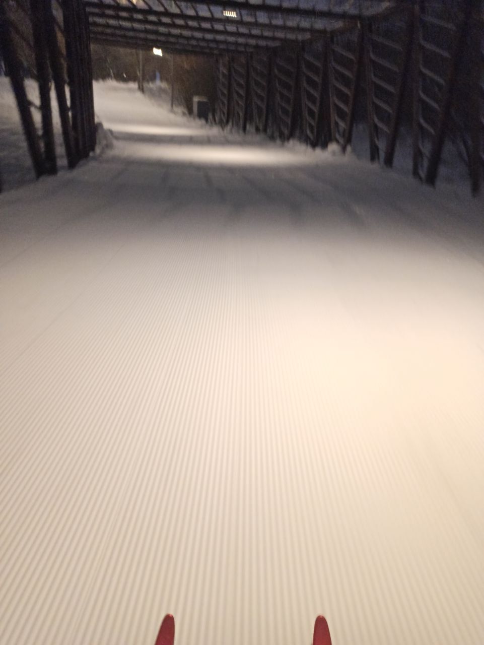 За ночь трассу хорошо присыпало пухляком, но к 10 часам уже хорошо укатали лыжами, катит отлично.