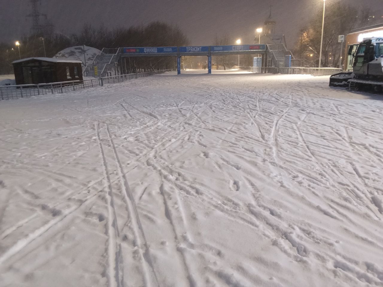 Трасса работает круглосуточно, ночью работает освещение до утра. Кататься рано утром можно не ранее чем через 2 часа после работы ратрака!
