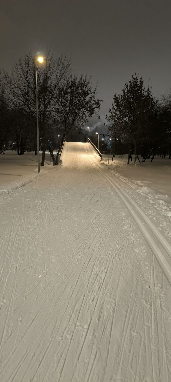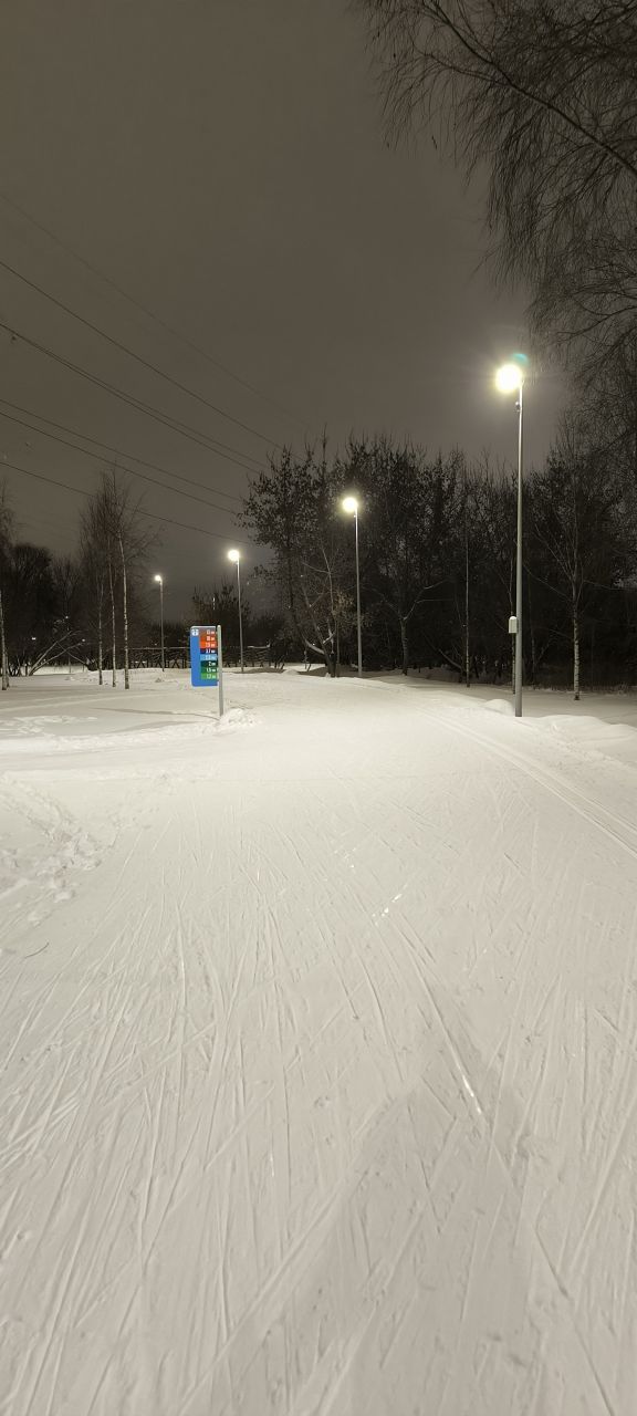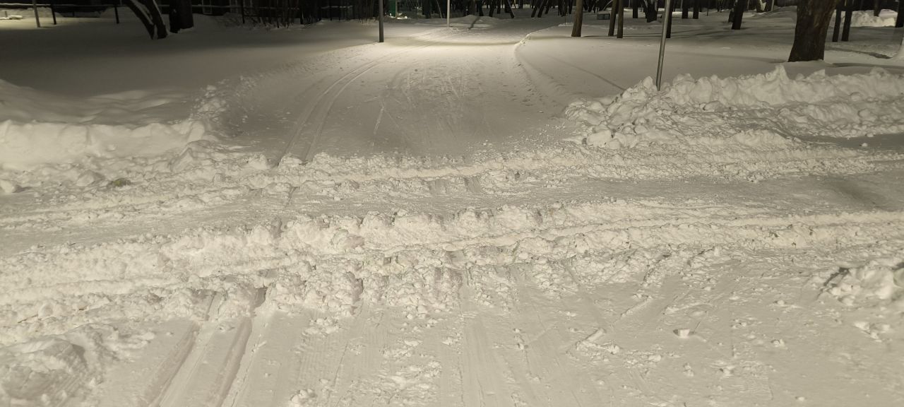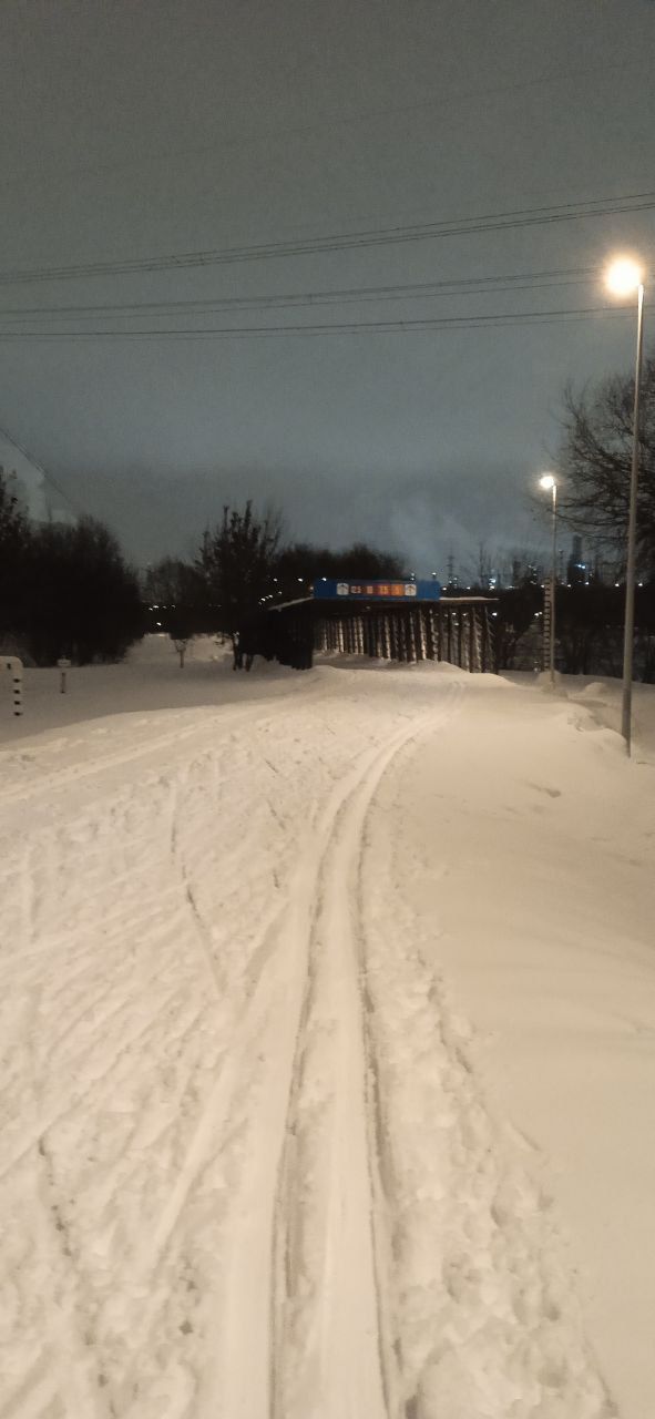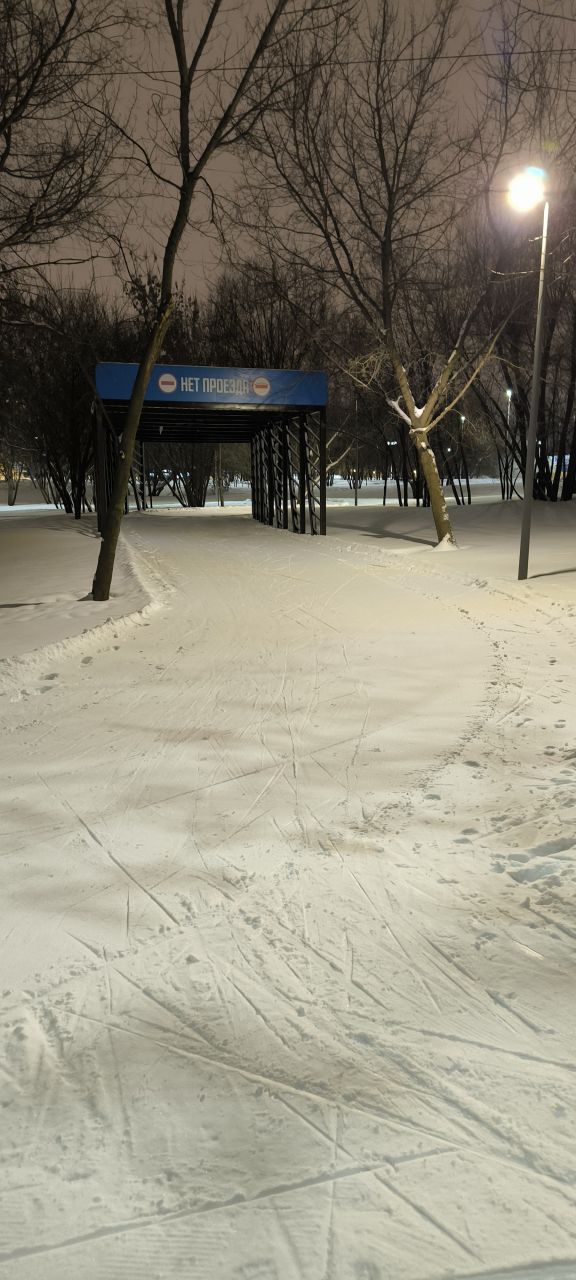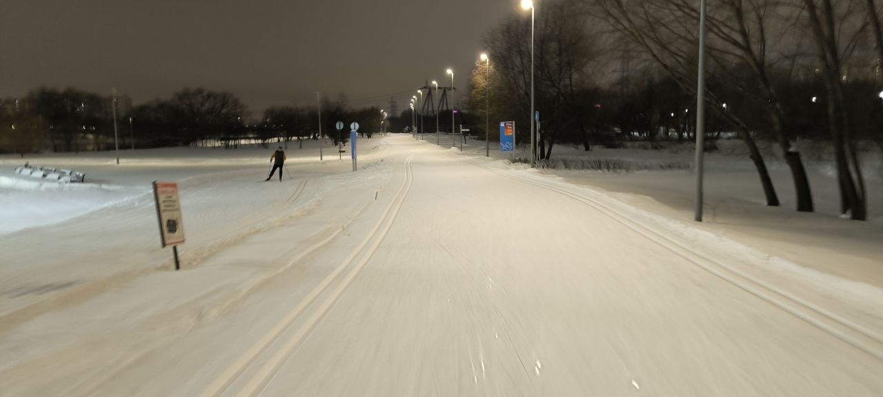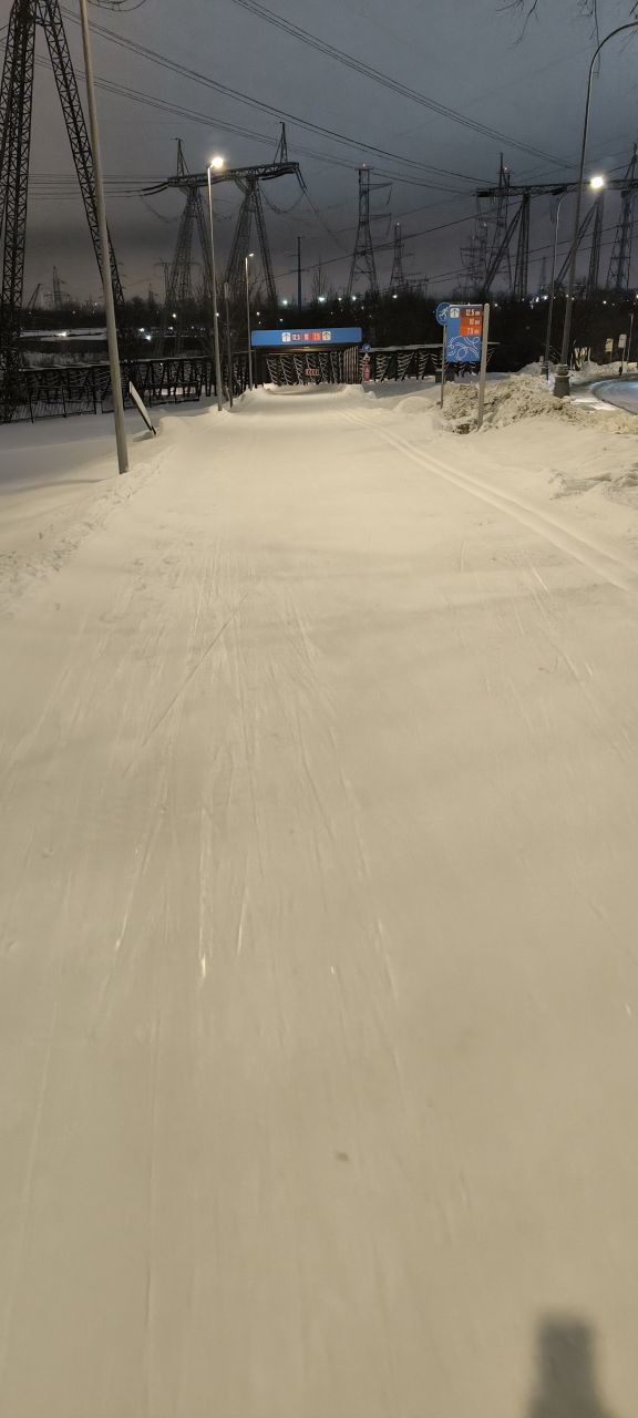 Проехал полный круг 12.5км в 22:00+ Трасса жёсткая, плотная, вместо реверса вдоль набережной у Мари теперь два отдельных проезда с лыжней с двух сторон на каждом. При возвращении с набережной на 3.7км у Мари ветки на уровне глаз. Часть сам убрал. В Капотне очень даже неплохо, чуть затоптано, местами следы трактора при пересечении с пешеходной дорожкой, и 100м след от техники МЧС рядом с их базой, но все эти места проезжаются даблом. В целом, отличное состояние на 7.5км и хорошее на 5км в Капотне.