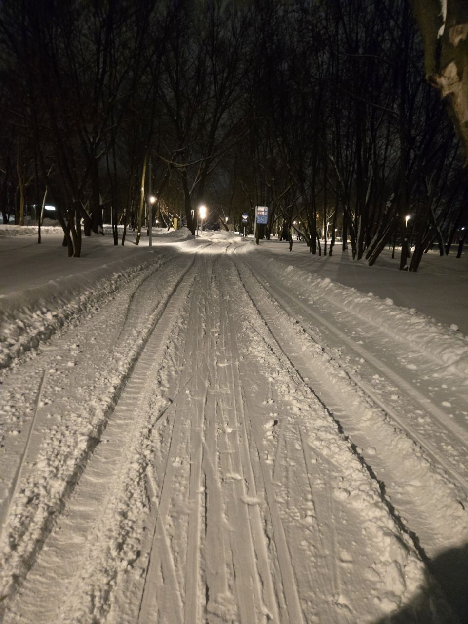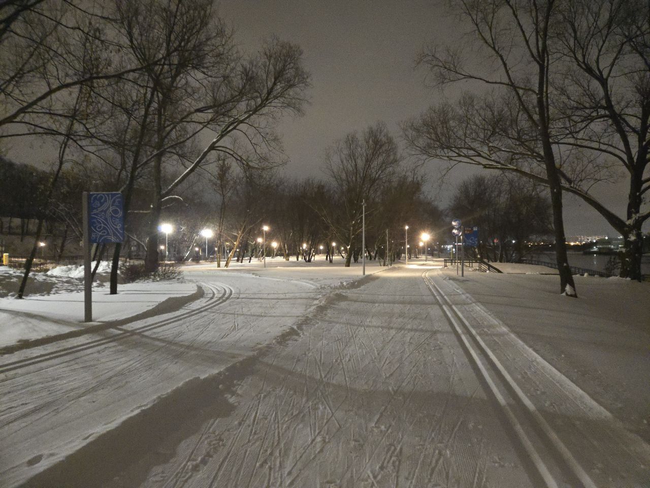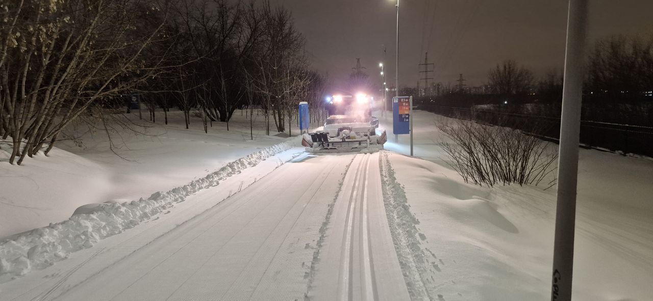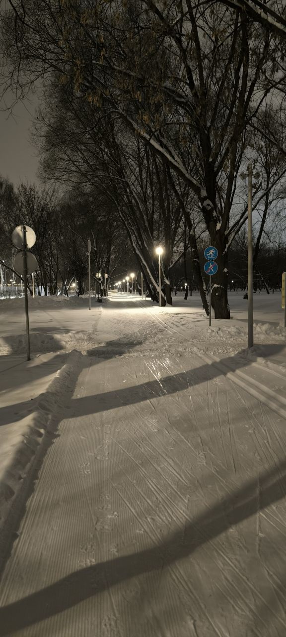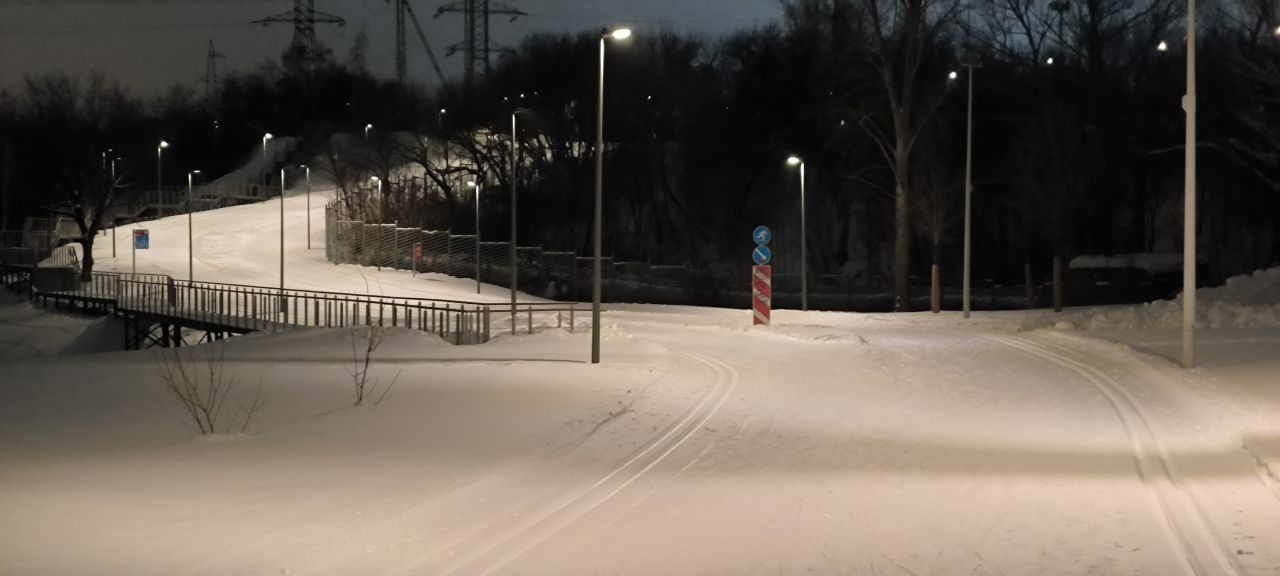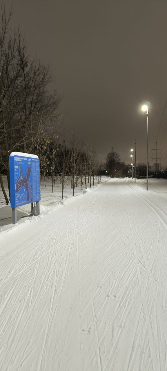 Проехал полный круг 12.5км в 22:00+ Трасса жёсткая, плотная, вместо реверса вдоль набережной у Мари теперь два отдельных проезда с лыжней с двух сторон на каждом. При возвращении с набережной на 3.7км у Мари ветки на уровне глаз. Часть сам убрал. В Капотне очень даже неплохо, чуть затоптано, местами следы трактора при пересечении с пешеходной дорожкой, и 100м след от техники МЧС рядом с их базой, но все эти места проезжаются даблом. В целом, отличное состояние на 7.5км и хорошее на 5км в Капотне.