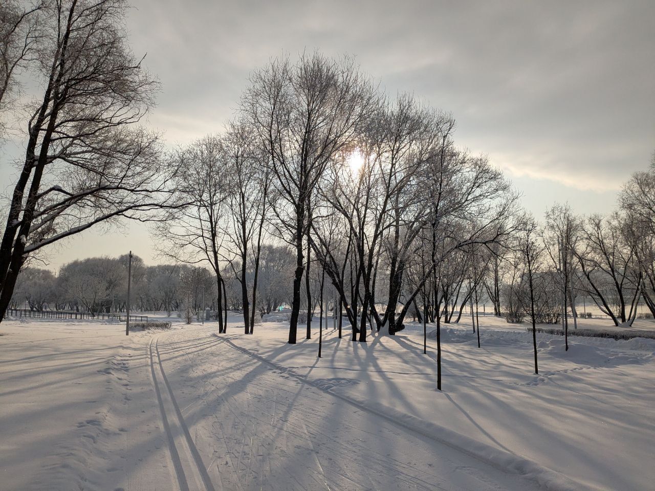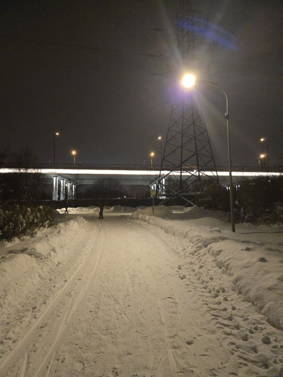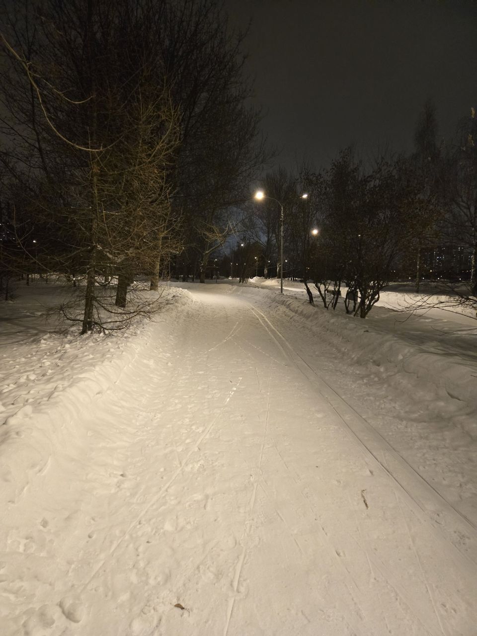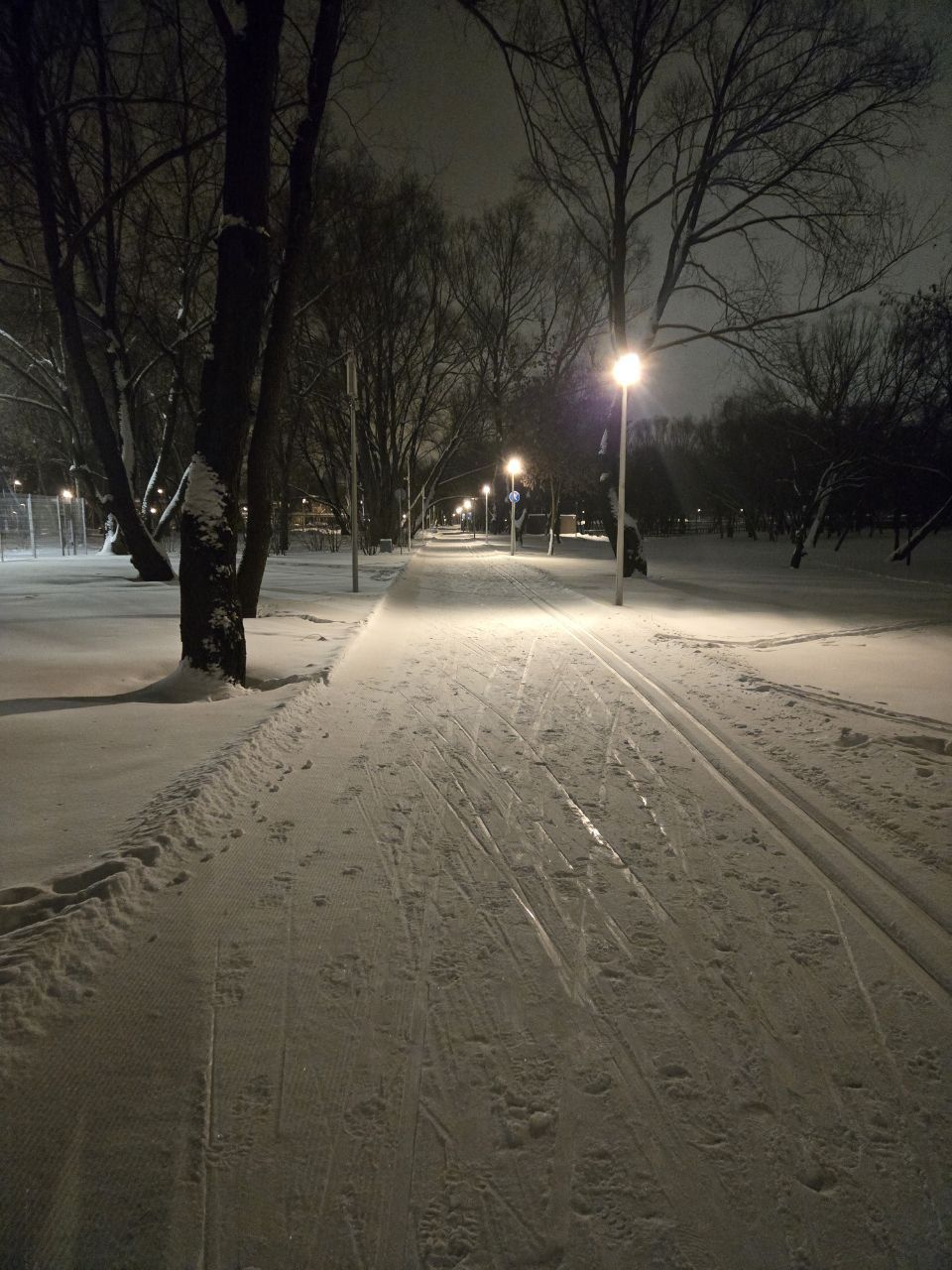 Проехал полный круг 12.5км в 22:00+ Трасса жёсткая, плотная, вместо реверса вдоль набережной у Мари теперь два отдельных проезда с лыжней с двух сторон на каждом. При возвращении с набережной на 3.7км у Мари ветки на уровне глаз. Часть сам убрал. В Капотне очень даже неплохо, чуть затоптано, местами следы трактора при пересечении с пешеходной дорожкой, и 100м след от техники МЧС рядом с их базой, но все эти места проезжаются даблом. В целом, отличное состояние на 7.5км и хорошее на 5км в Капотне.