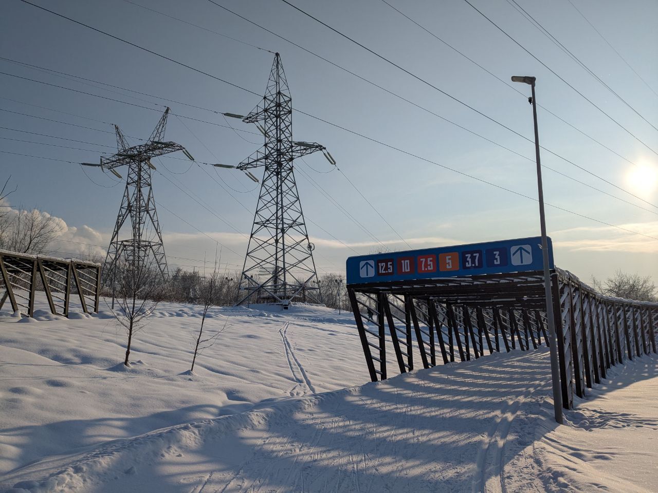 Жесть, какая трасса. Бетон, присыпанный снегом (конёк). И ведь прочитал об этом ниже, но не придал значения. Я был просто как корова на льду. Но спортивные ребята летают. Видимо подготовлена для соревнований была, а для для скуфов с отрицательно хорошей техникой (типа меня). В общем, если вы не спортсмен с техникой - сюда не надо (коньком). Лыжни отличные, сама трасса интересная: горки, повороты, спуски, ЛЭП, повороты - не соскучишься.