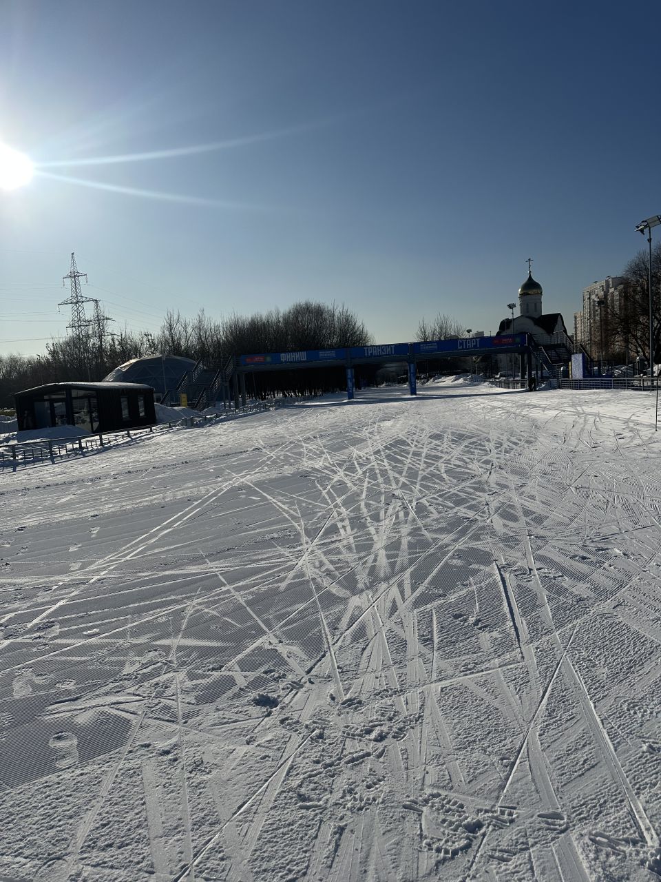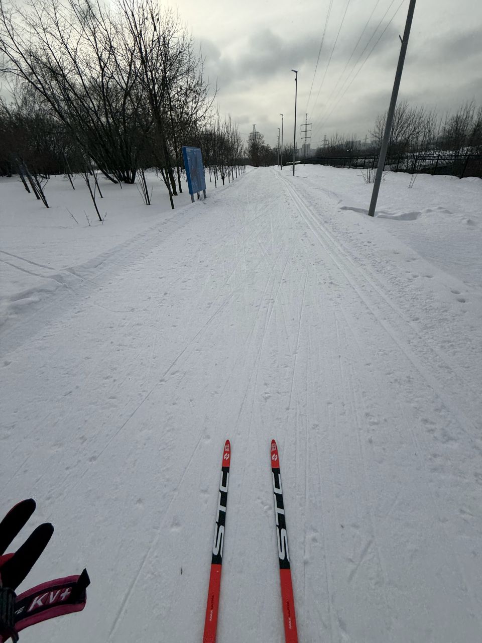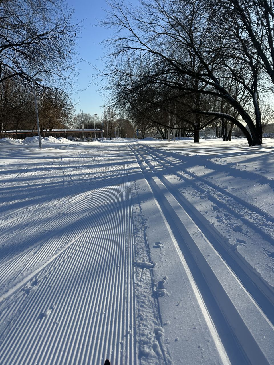 Сама трасса полностью готовилась, классика и конёк, почти идеальное качество - плотно, снежно, быстро на солнце (сейчас чуть подтупливают лыжи в тени) 9/10. Есть неровный участок с бугром на подъеме из Марьино в Капотню.