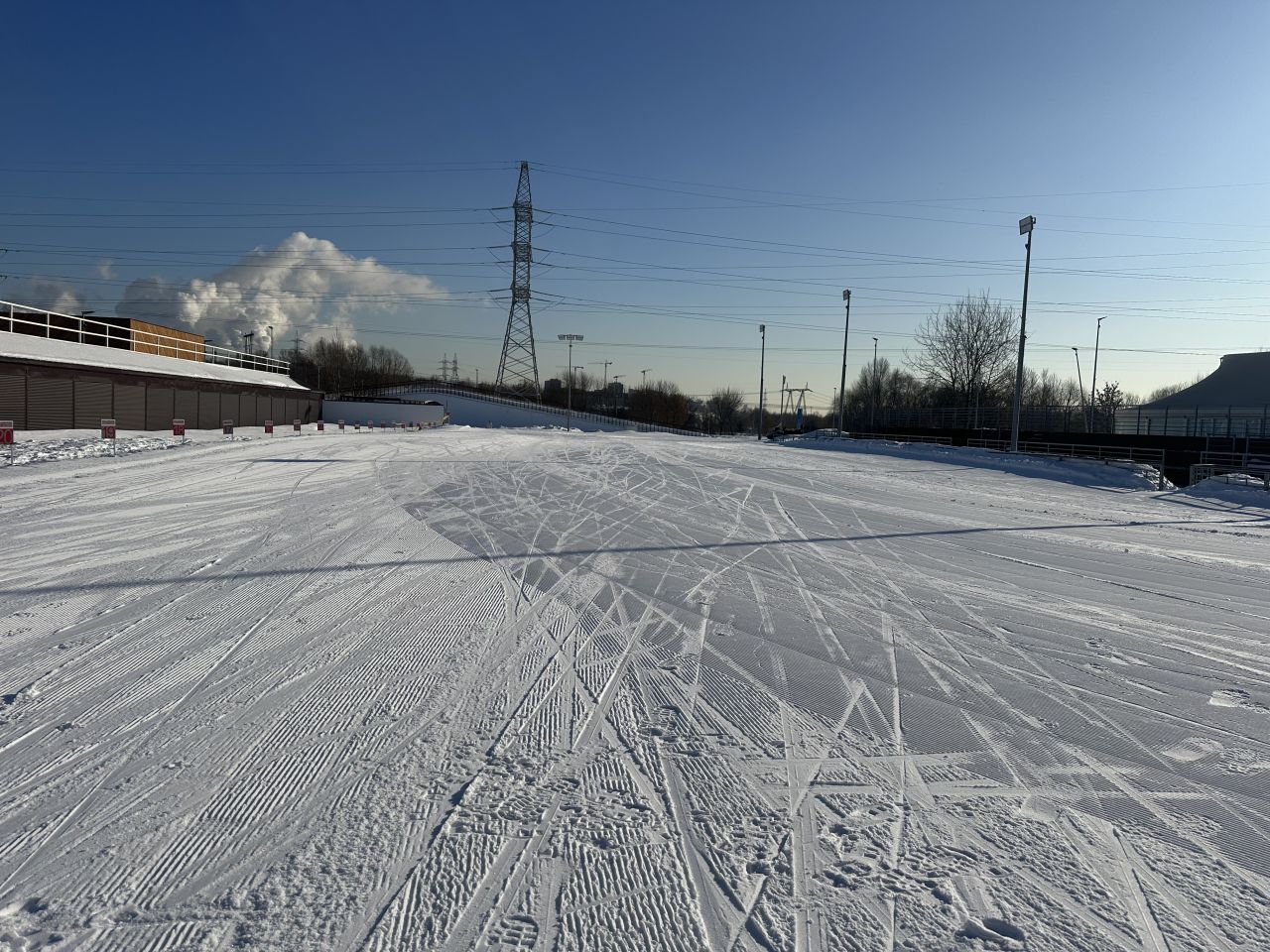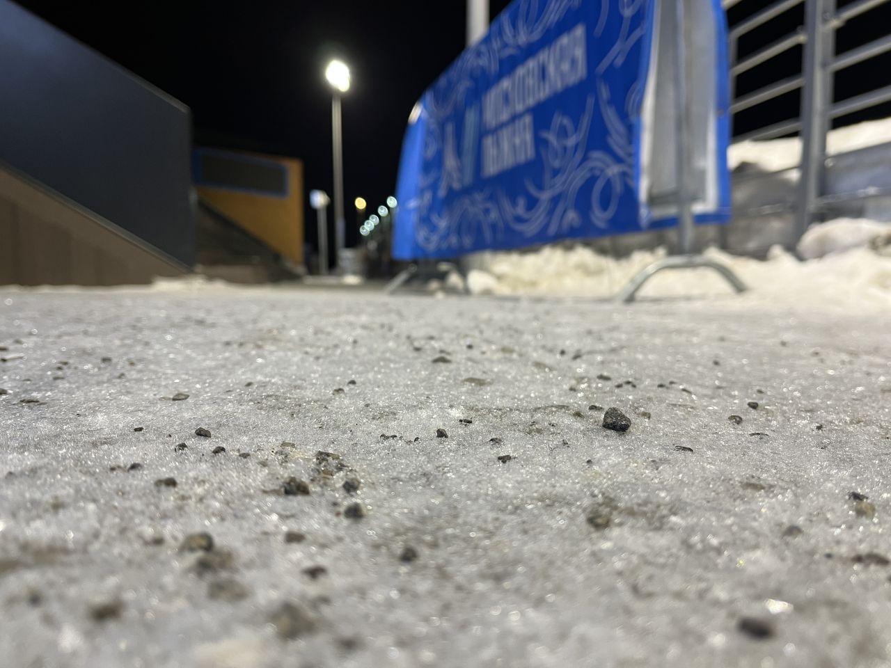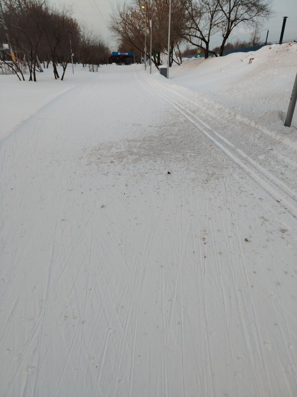 Катал с 12 до 15, короткий круг готовили к соревнованиям, там жёстко, но сверху мягкий фирн, остальная часть - бетон. У завода замершая грязноватая часть, остальная супер чисто.