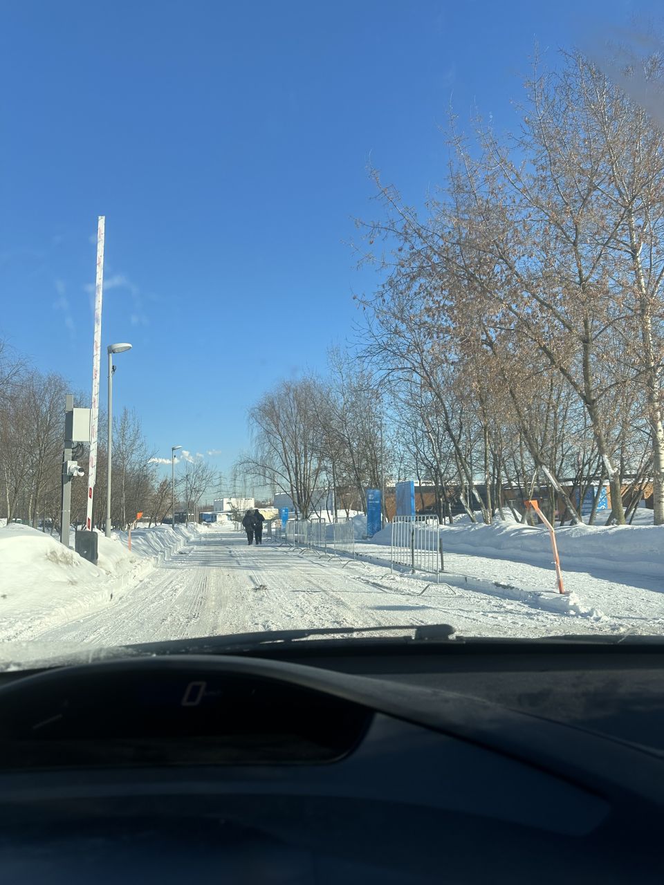 Готовимся к платной парковке; шлагбаум уже стоит.