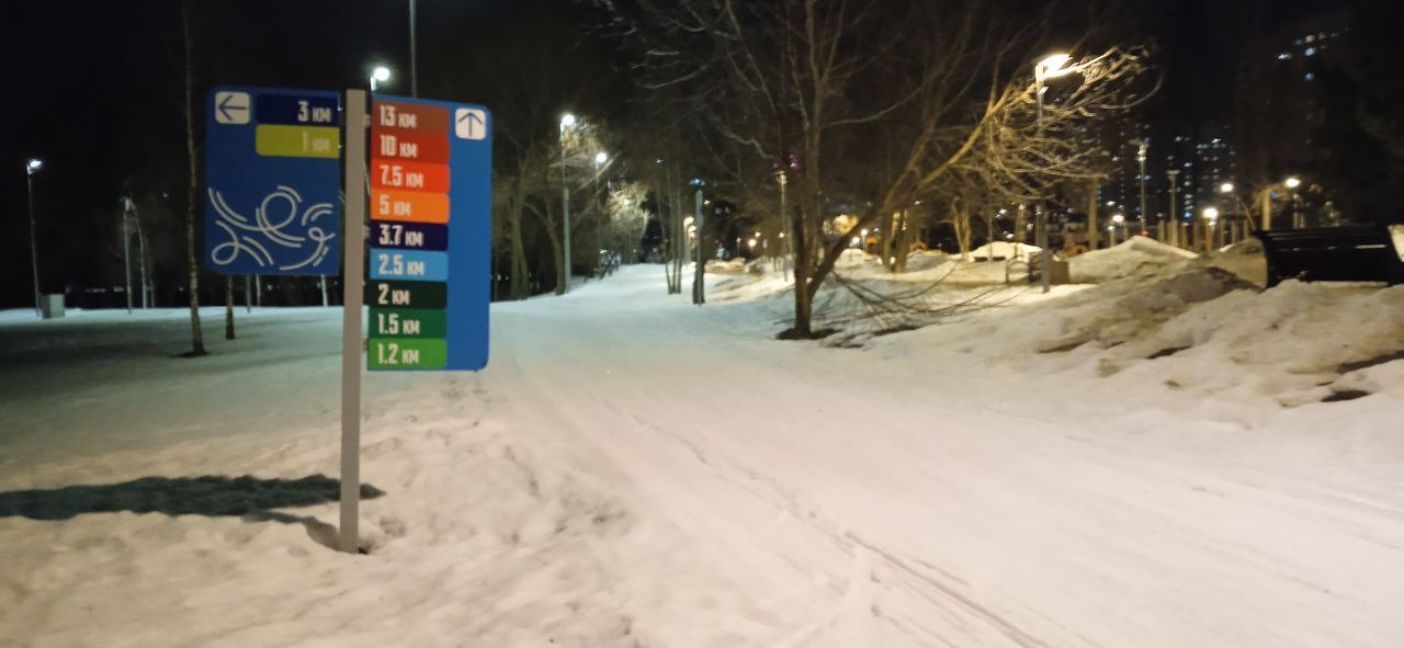 Круг 7.5км вполне неплох, кроме дальней петли возле съезда в Капотню - там вдоль автомобильной дороги снег в перемешку с песком, но пробегаемо.