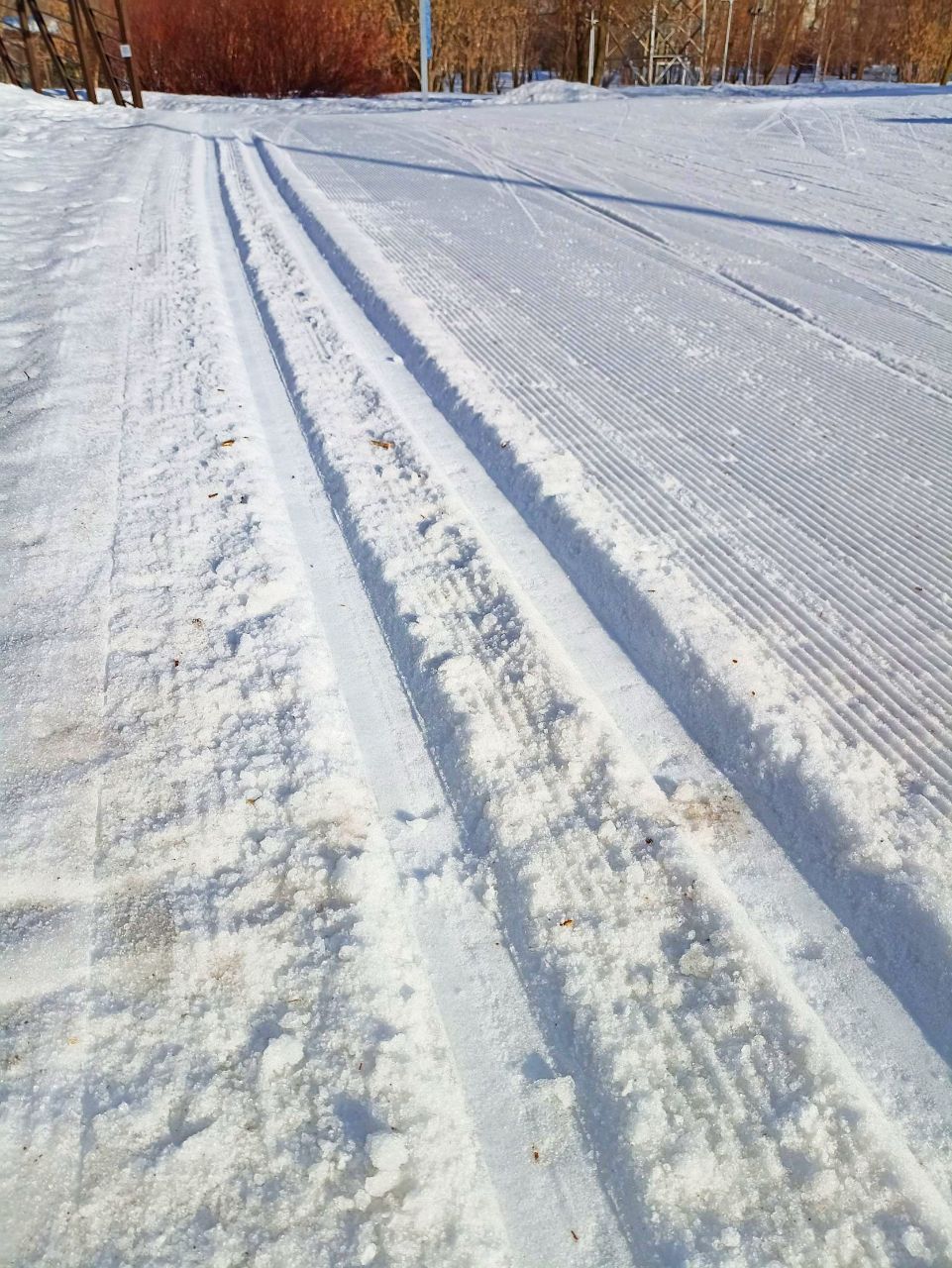В Капотне совсем не понравилось, на спуске местами виднеется асфальт стало узко, в парке на переездах очень много песка и мало снега, также туда не заходил ратрак, трасса была так себе(