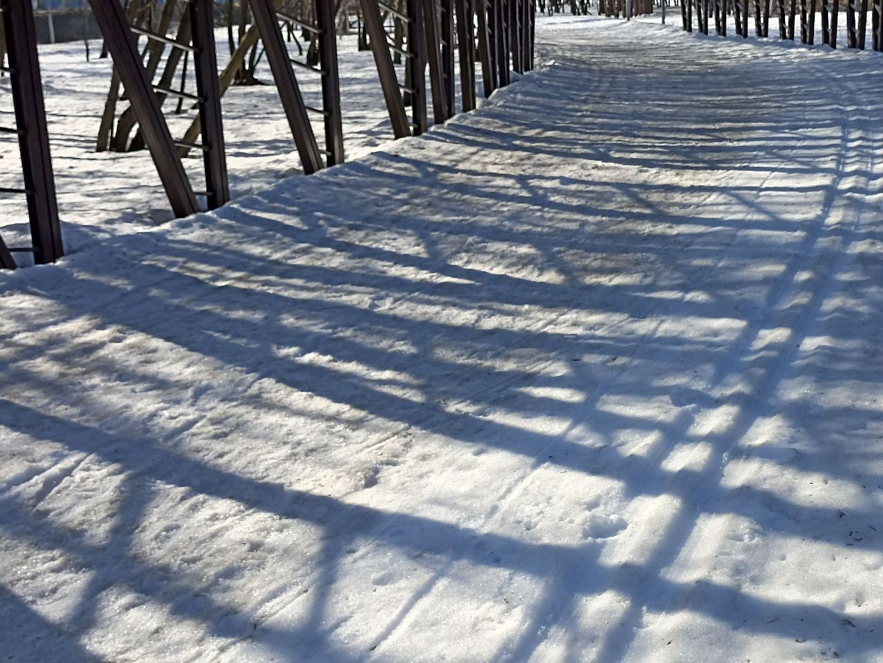 В тени снег пожёстче, на солнце помягче.