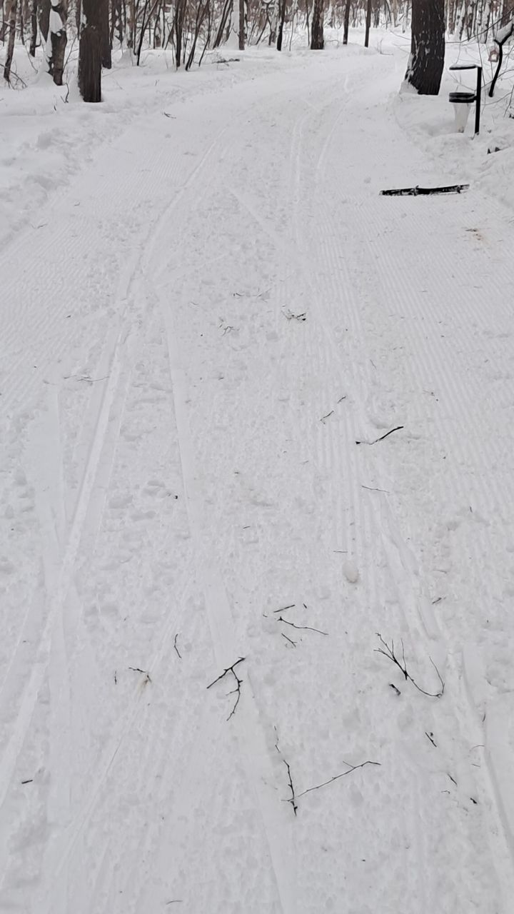 Пу-пу-пу.... Катал с 19.30 до 21.00. Ну как катал, отрабатывал объём. Всем у кого есть возможность сходить в зал или на другую лыжню съездить- это будет хороший вариант!! Веток-тьма! Замёрзшие следы от всего: снегоходов, пешеходов, велосиПЕДОВ, лыж, палок. Если катаем, то без наушников, чтоб услышать ломающуюся над головой ветку.