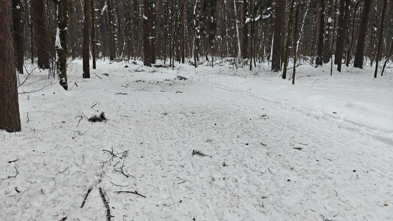 Скольжение в целом тяжёлое, ветки и шишки действительно засыпало